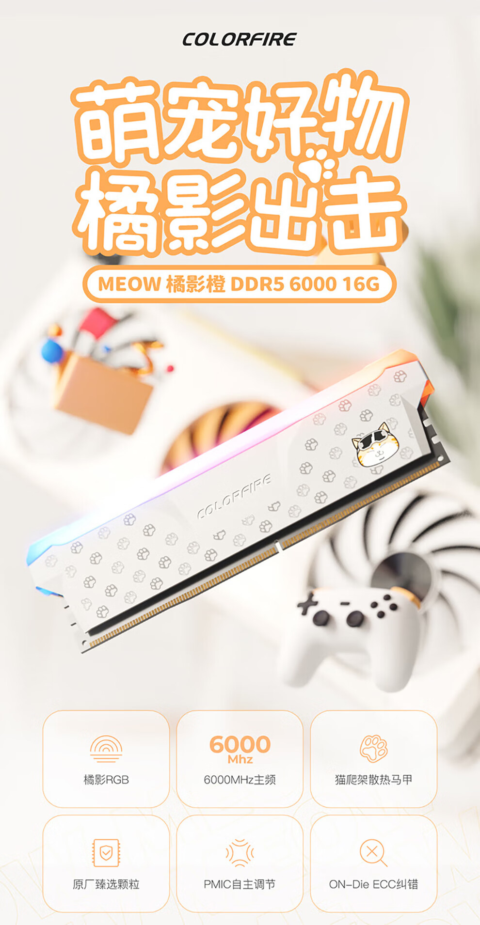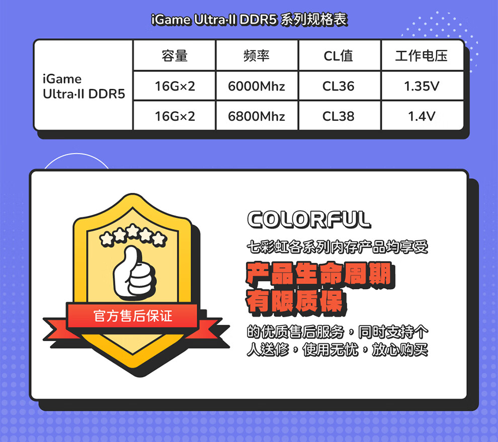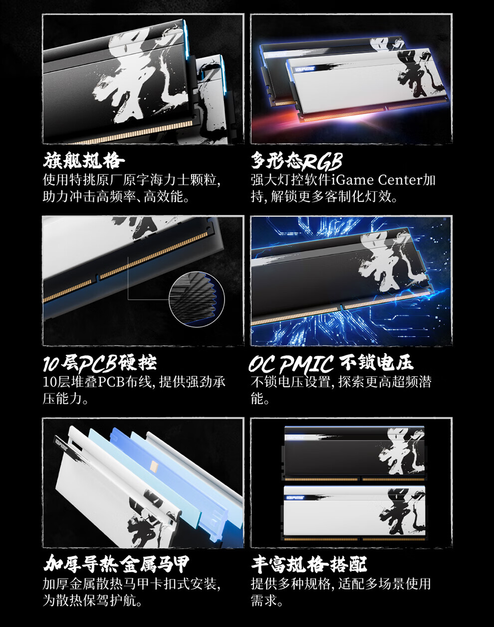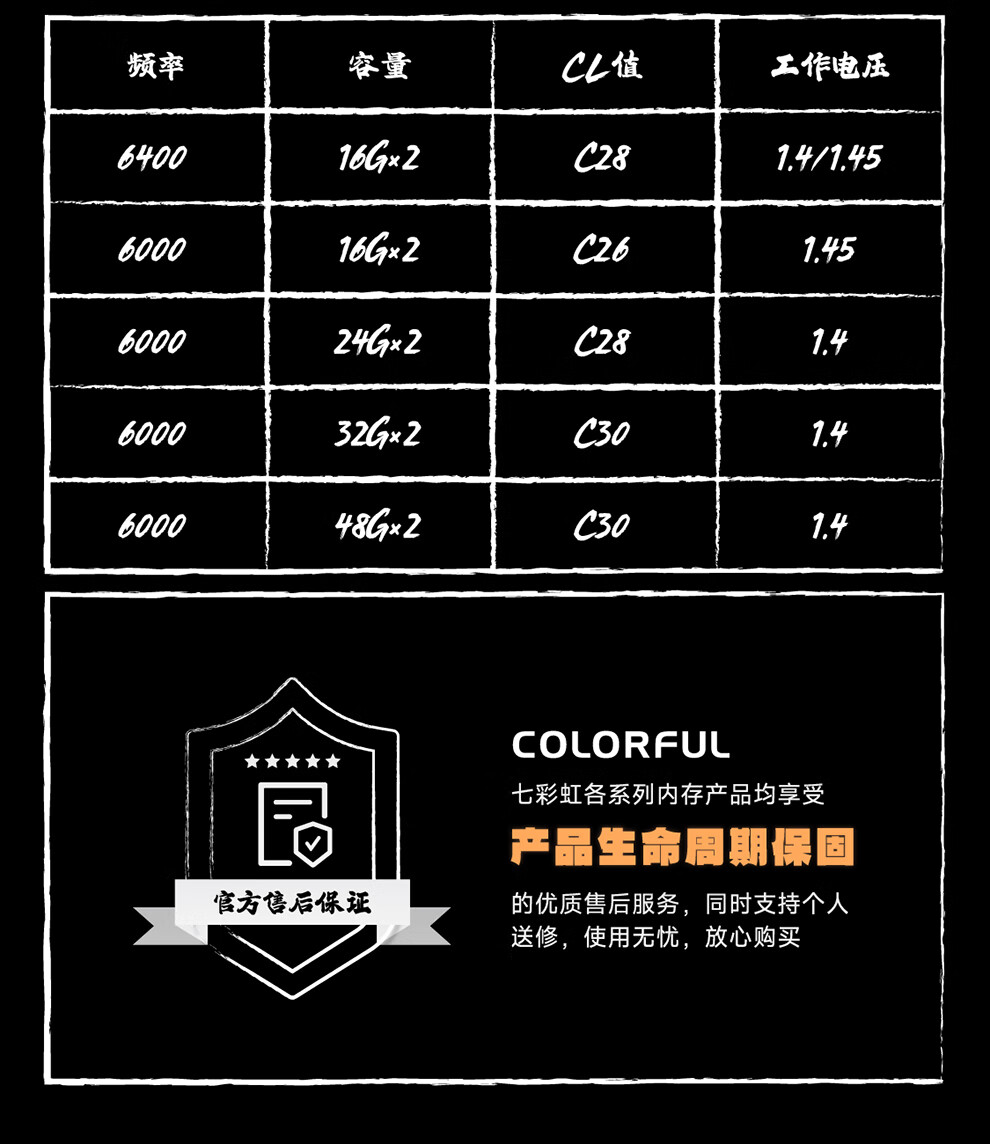 七彩虹(Colorful)DDR5 6000 6800 8000 16G/32G台式机内存 高速电竞游戏马甲条 战斧·夜影黑6000 16Gx2 C38