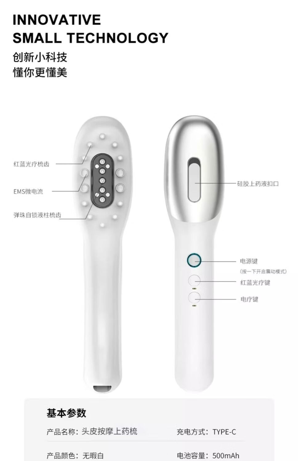 头皮上药器按摩梳电动激光生发梳滚珠涂抹器精油生发液导入健发梳 旗舰升级 黑科技育发梳+送育发液