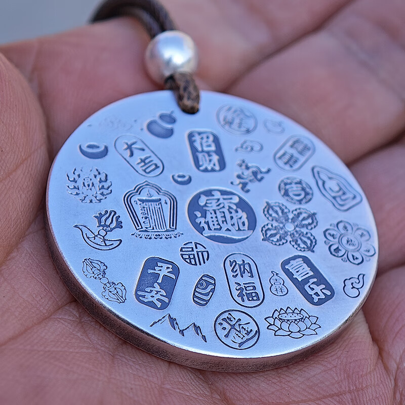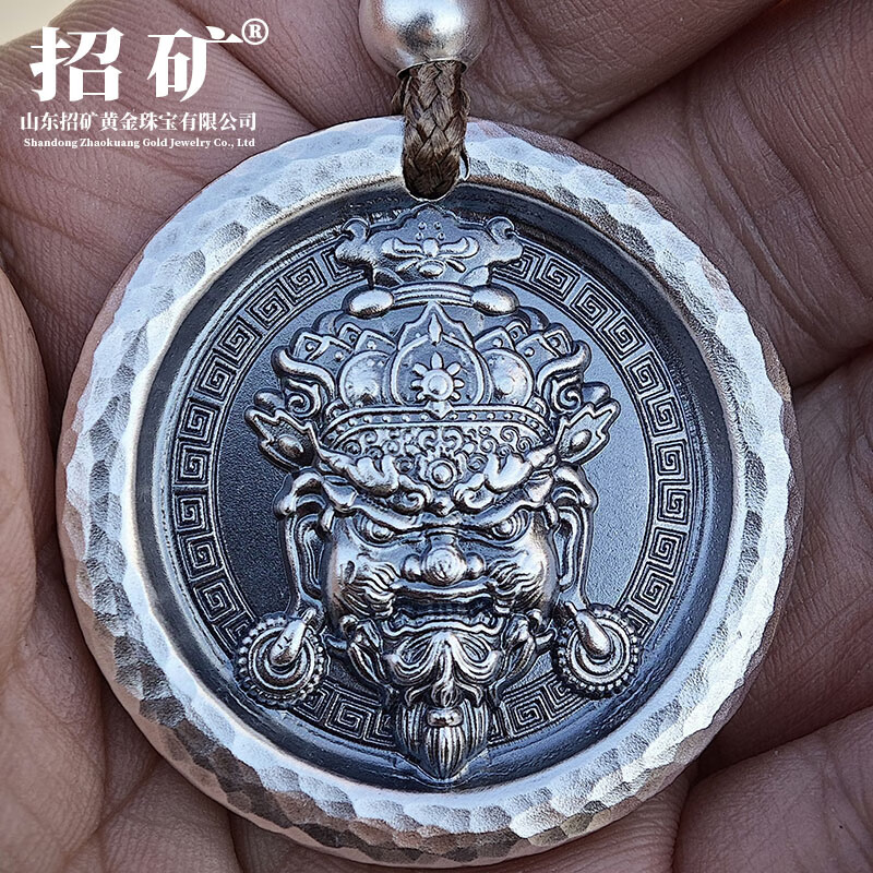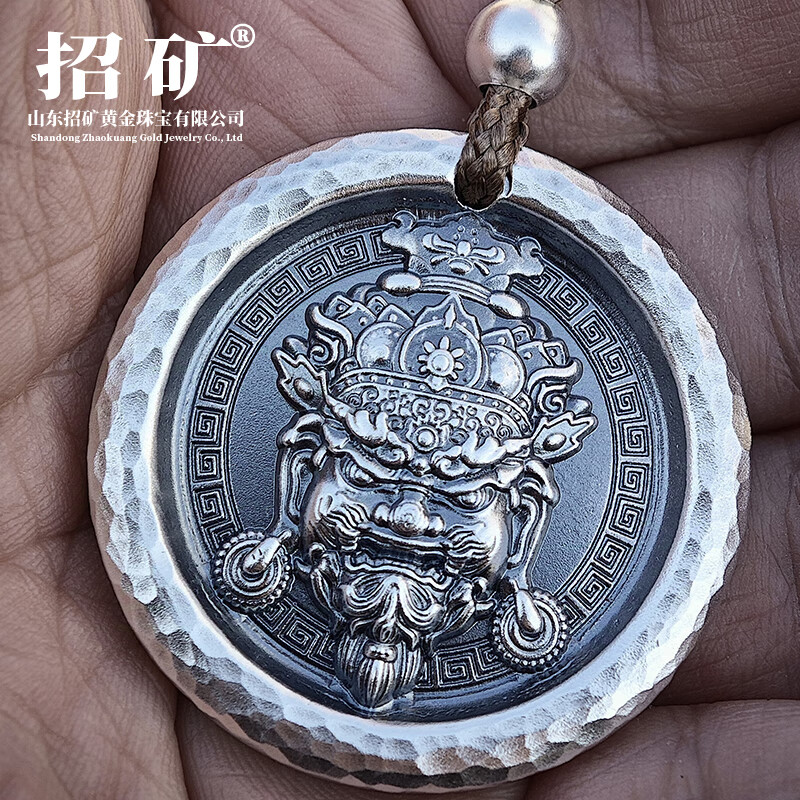 招矿足银9999实心吉言白财神银吊坠银饰品锤纹银挂件挂饰 【吉言白财神】银吊坠 一件约48克(足银9999材质)