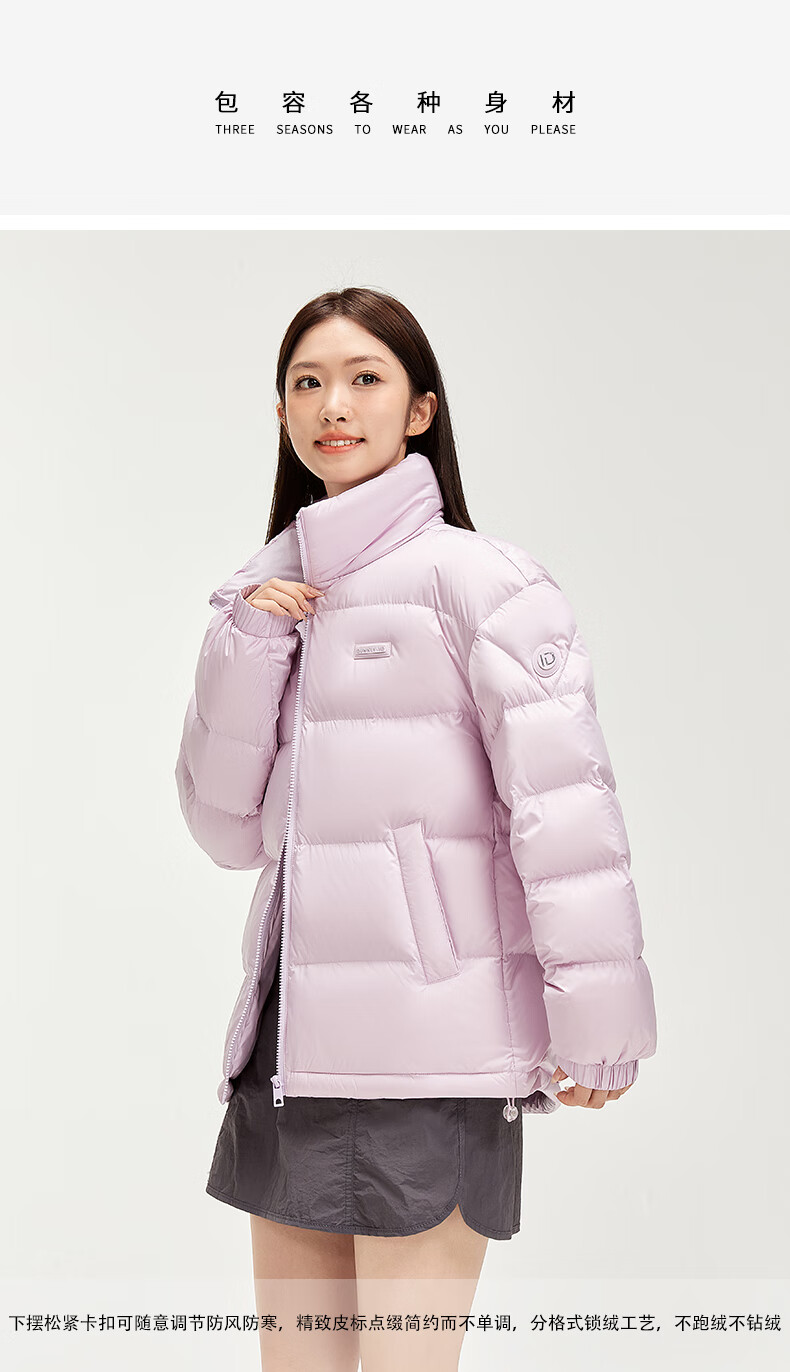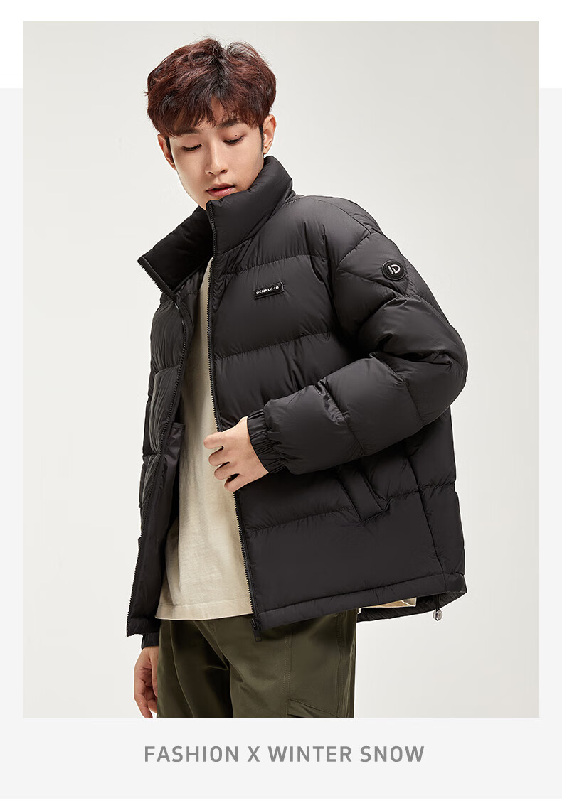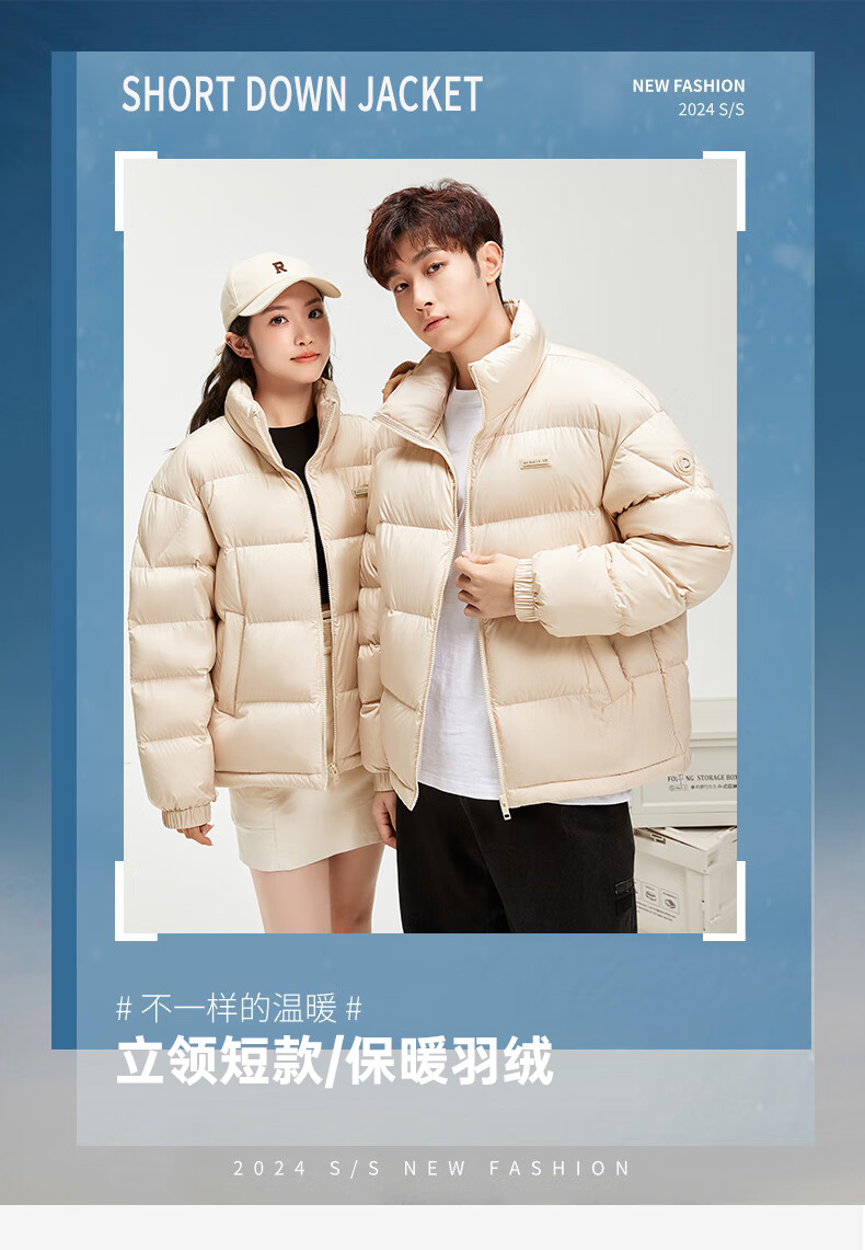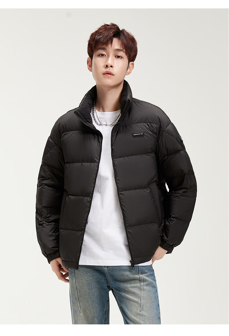 鸭鸭陈哲远同款羽绒服短2024冬情侣保暖外套简约立领潮流休闲时尚 青光黑色 S