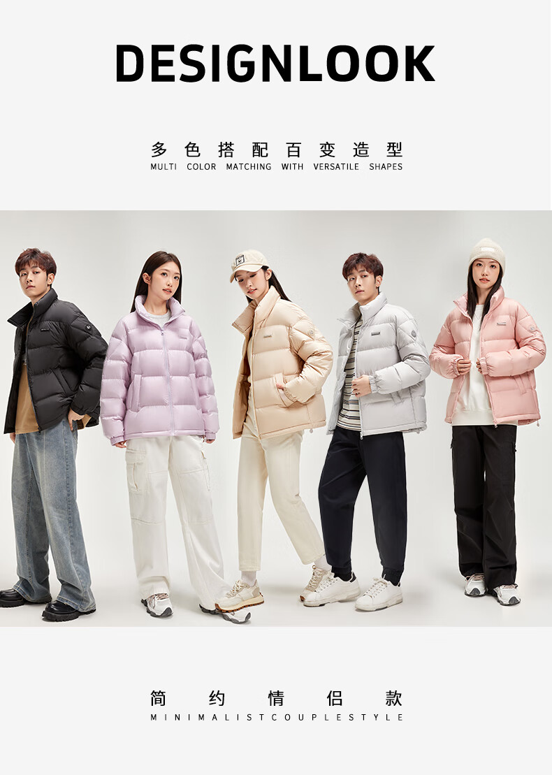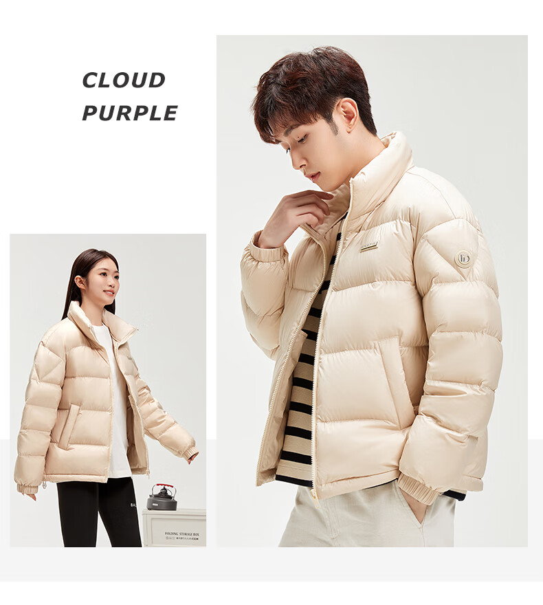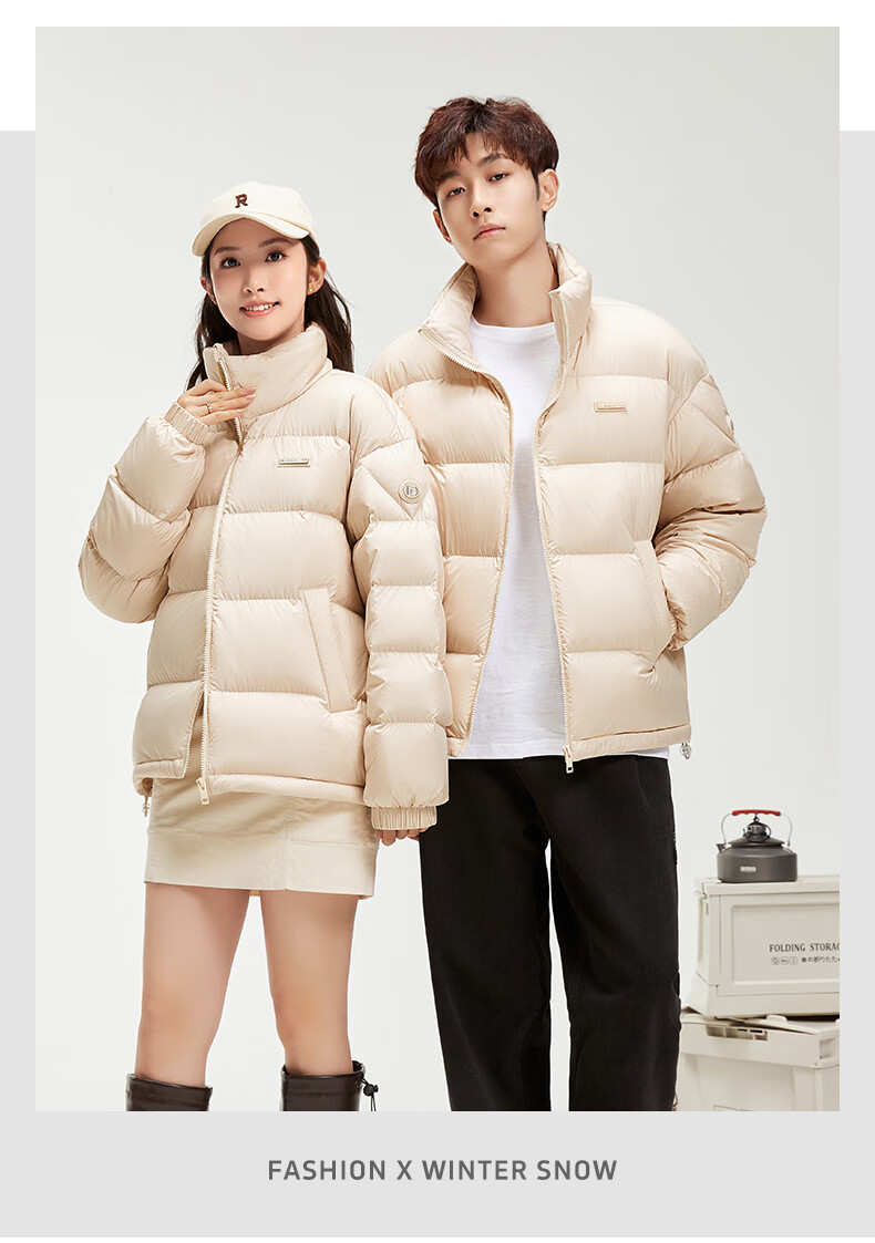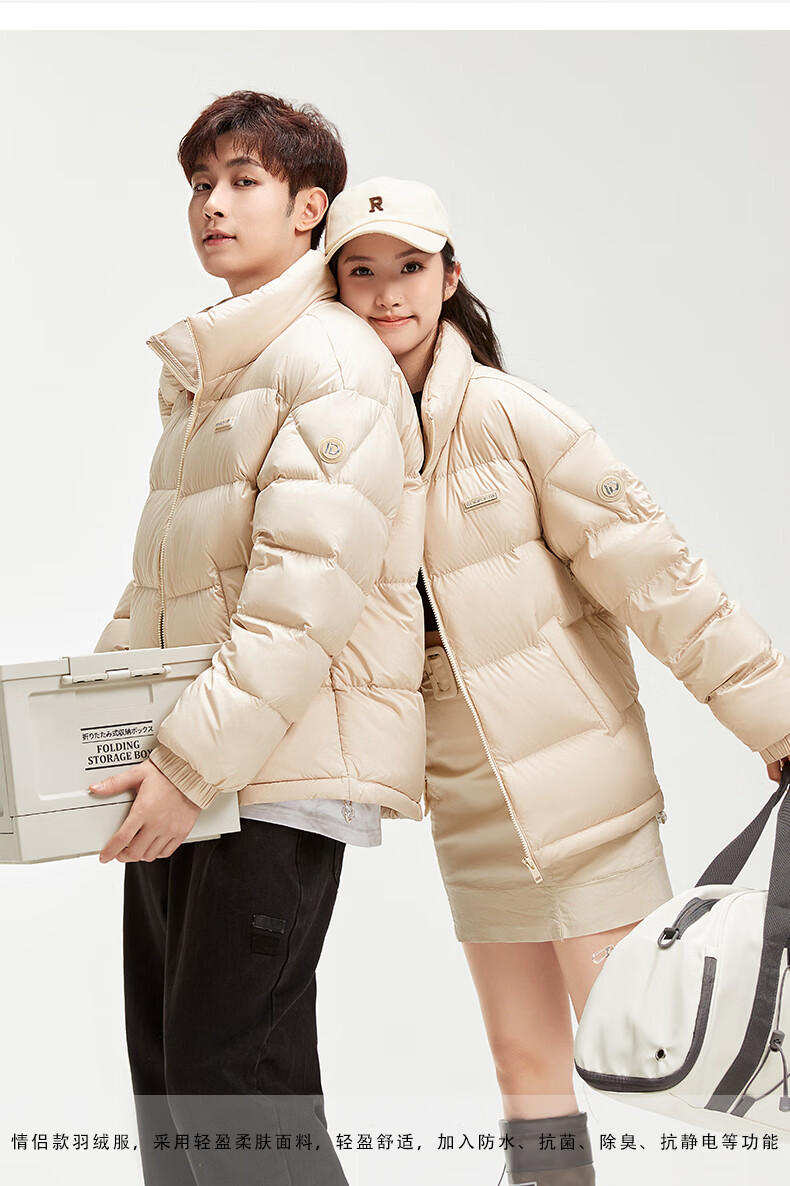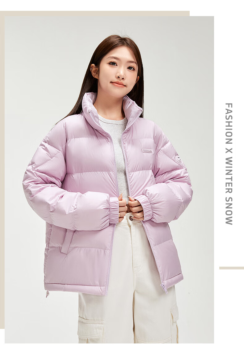鸭鸭陈哲远同款羽绒服短2024冬情侣保暖外套简约立领潮流休闲时尚 青光黑色 S