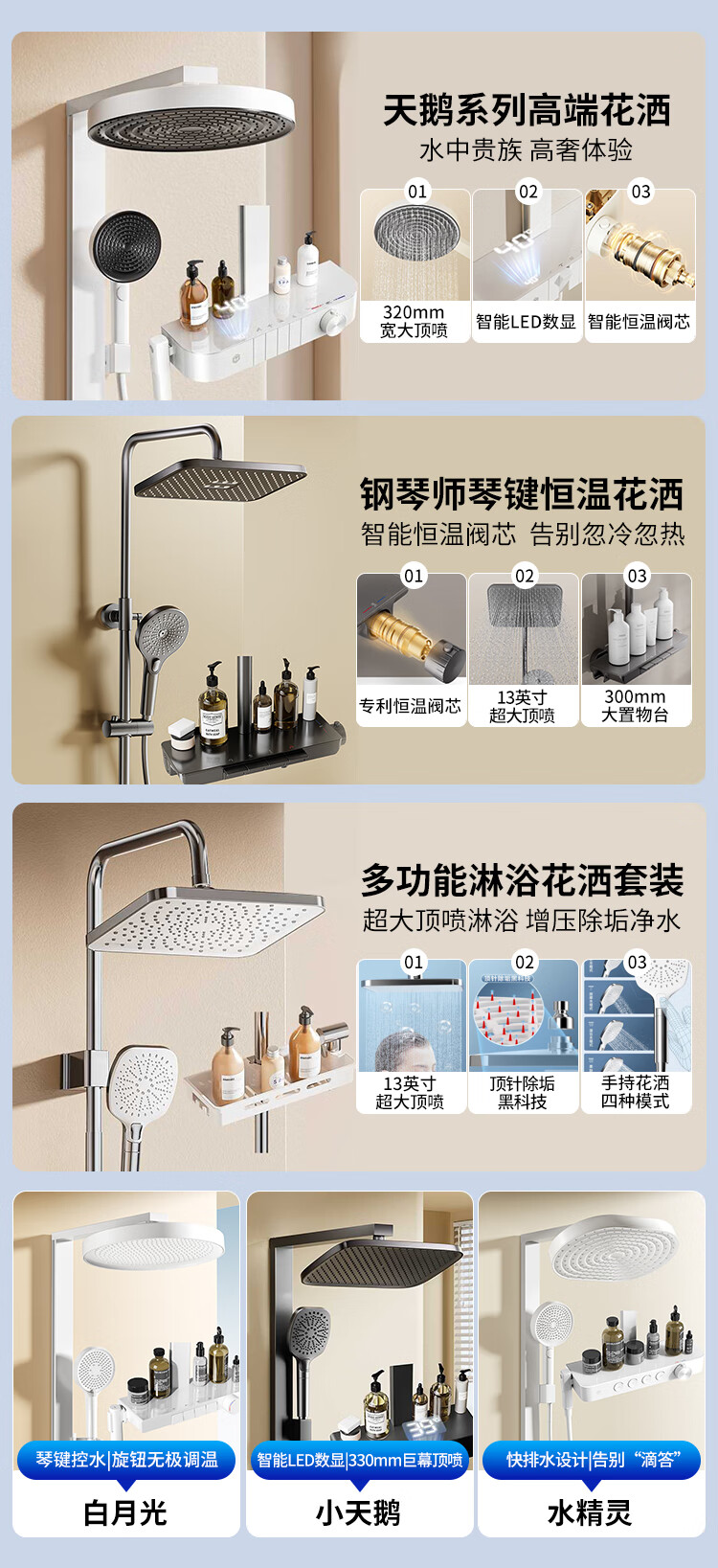 京东京造 多功能淋浴花洒套装一体全铜大顶喷淋浴器手持增压