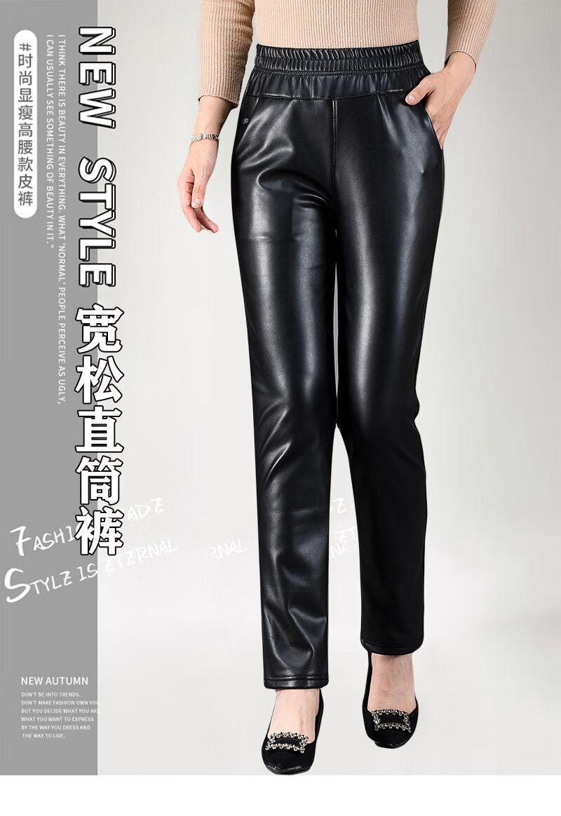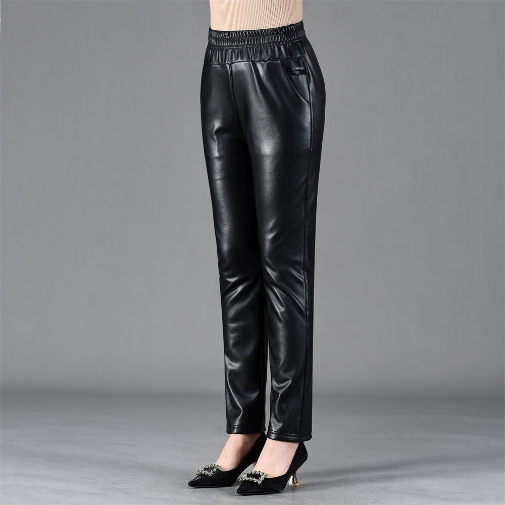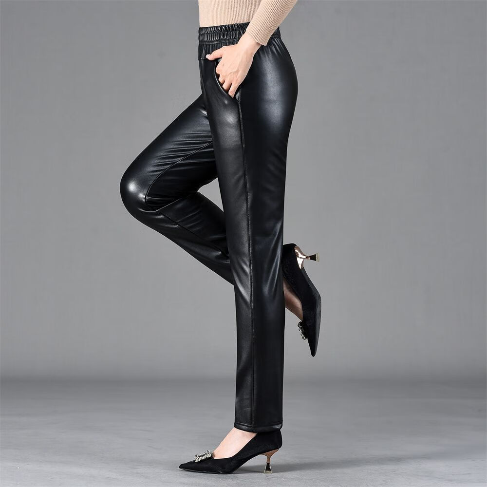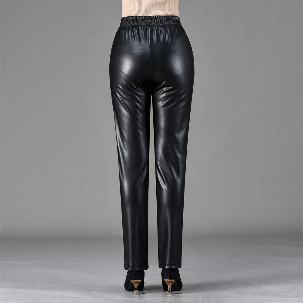 皮裤女2025新款秋冬加绒加厚外穿皮裤防风骑车直筒裤妈妈保暖裤子 黑色(单裤)不加绒 XL 推荐90-110斤