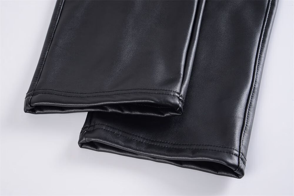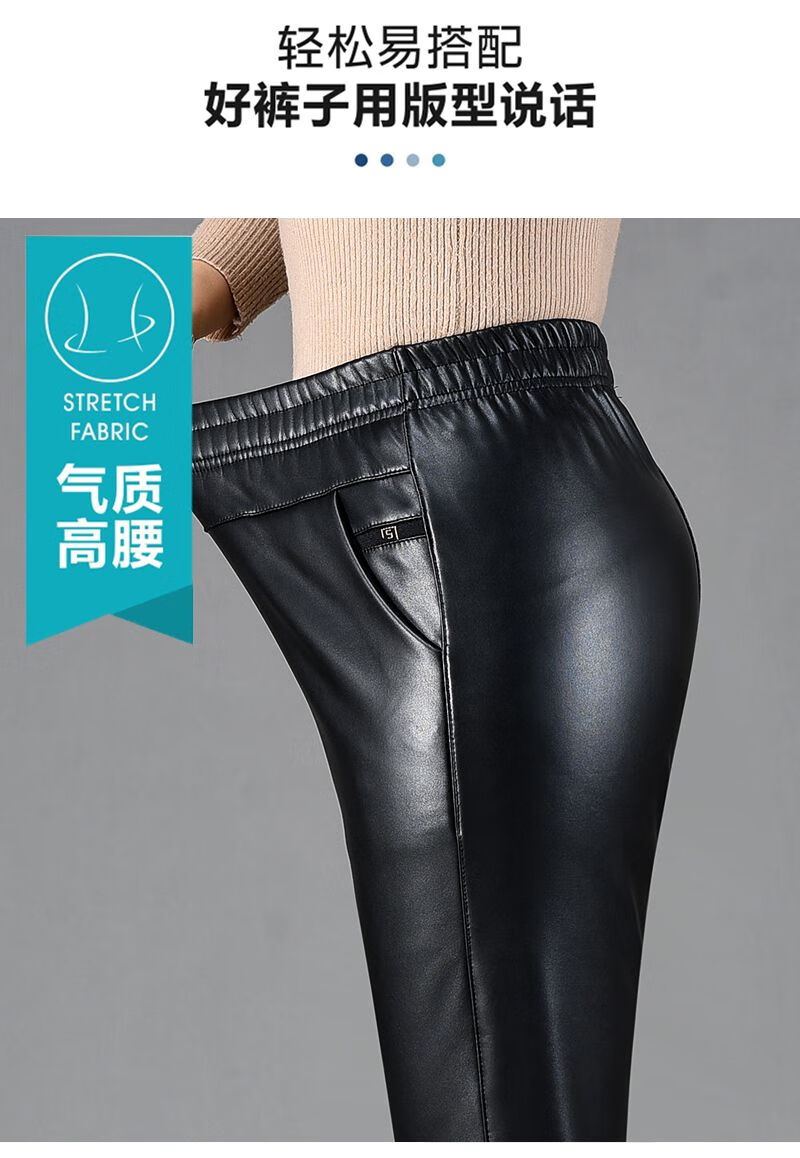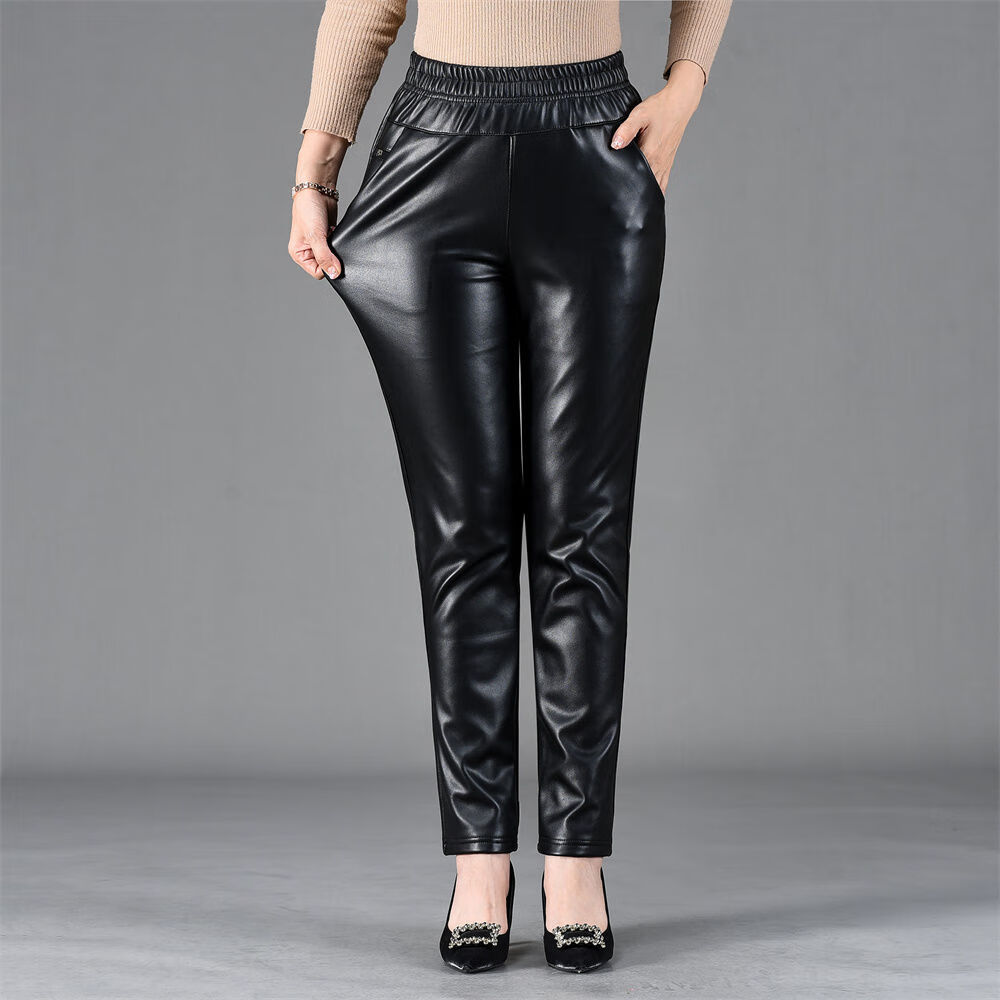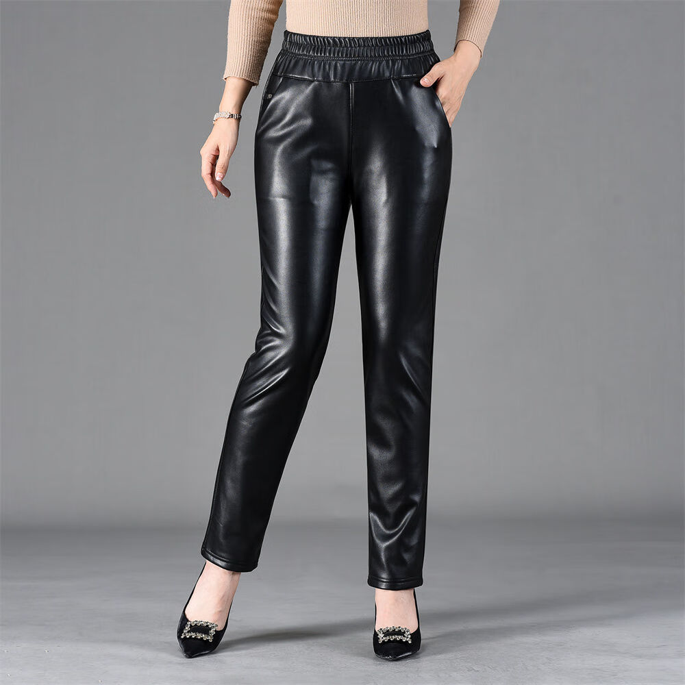 皮裤女2025新款秋冬加绒加厚外穿皮裤防风骑车直筒裤妈妈保暖裤子 黑色(单裤)不加绒 XL 推荐90-110斤