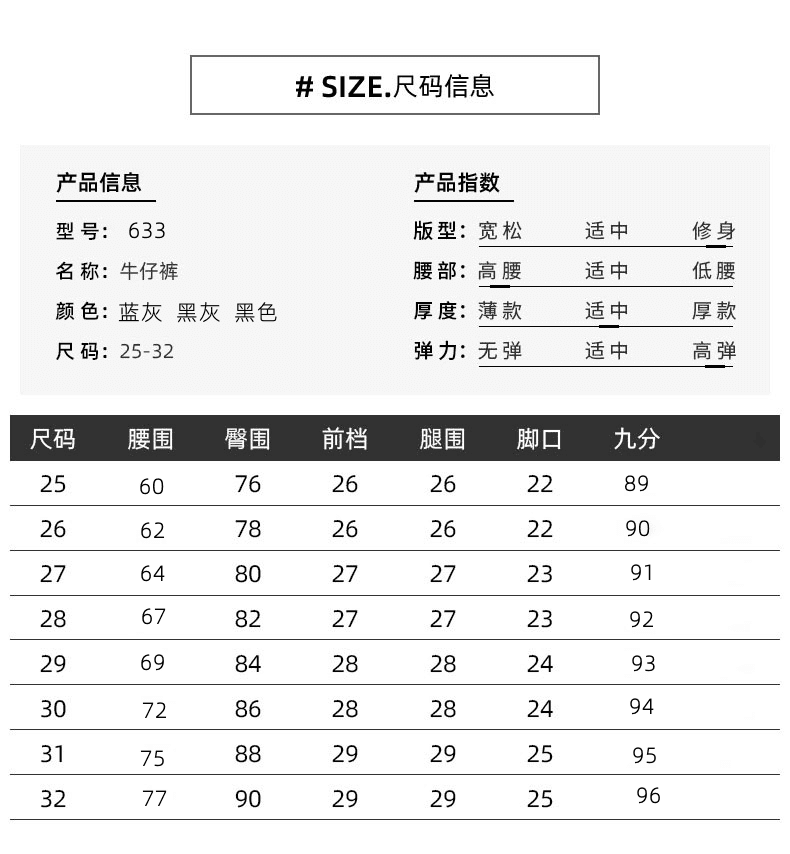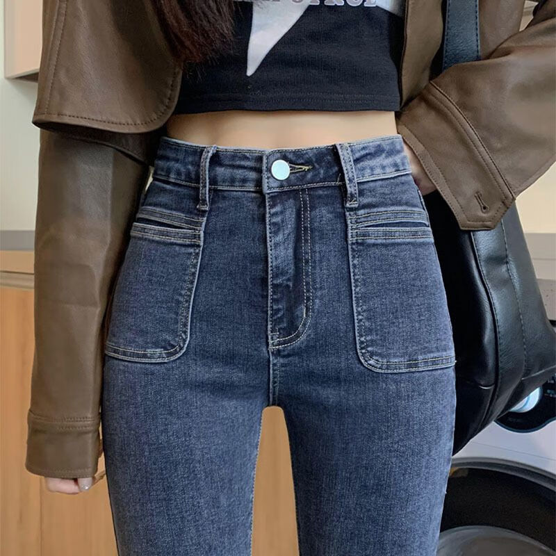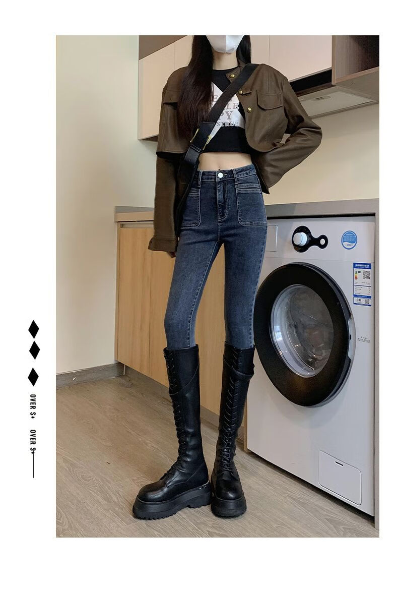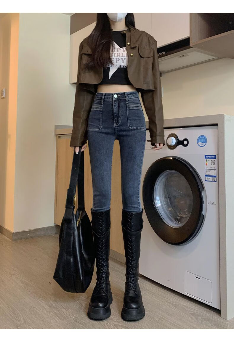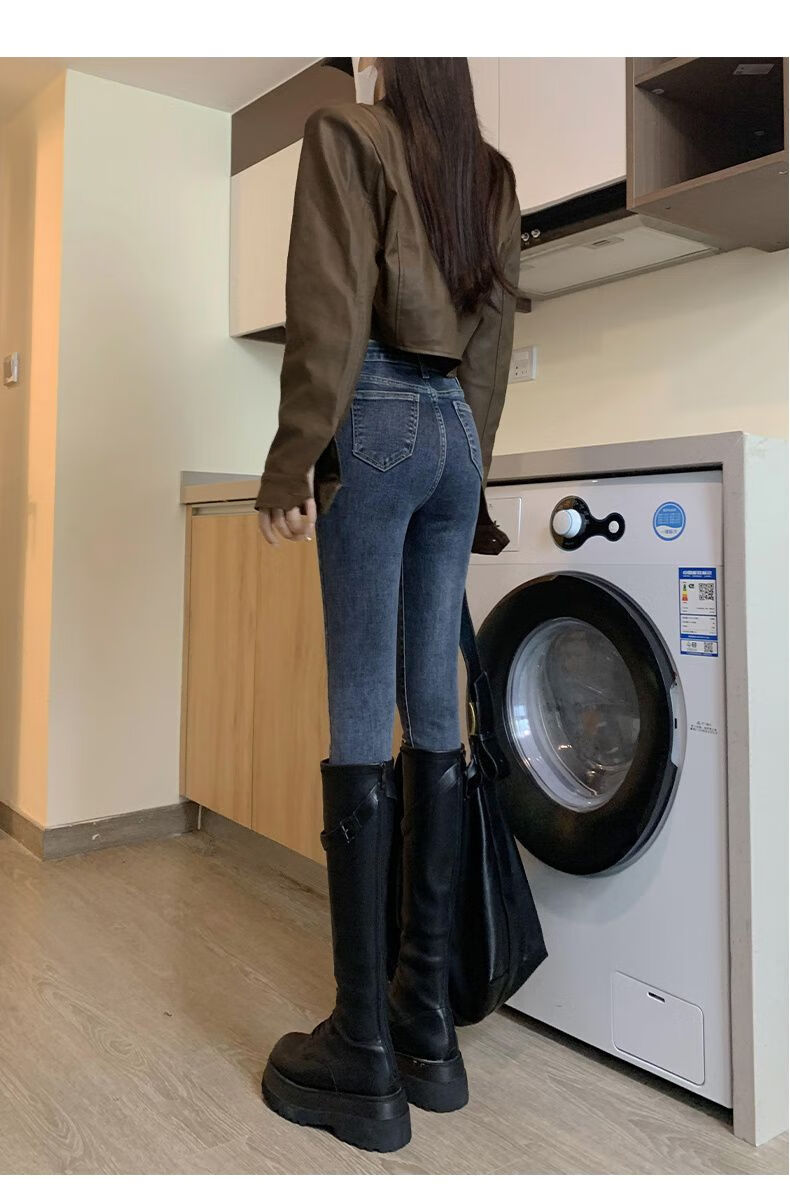 花花公子(PLAYBOY)显身材感小脚裤2025新款高腰牛仔裤女紧身修身显瘦铅笔裤潮流 【腰带】+633蓝灰 单裤 25