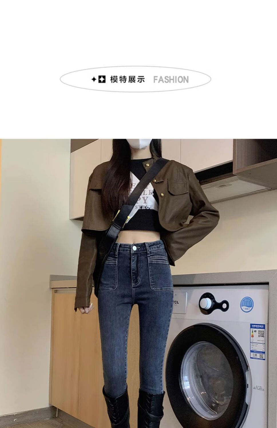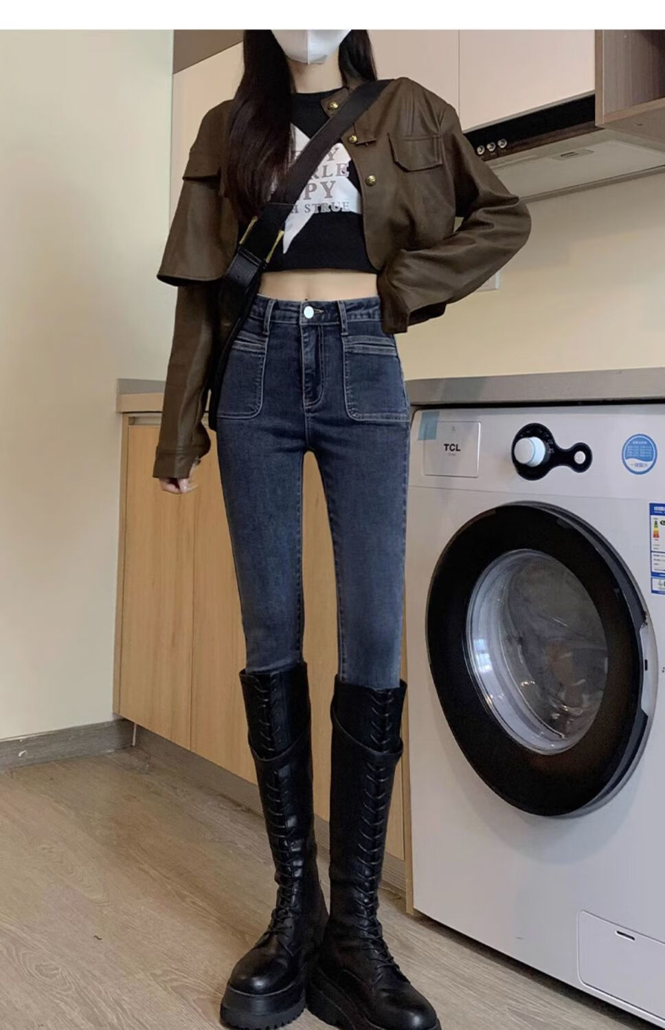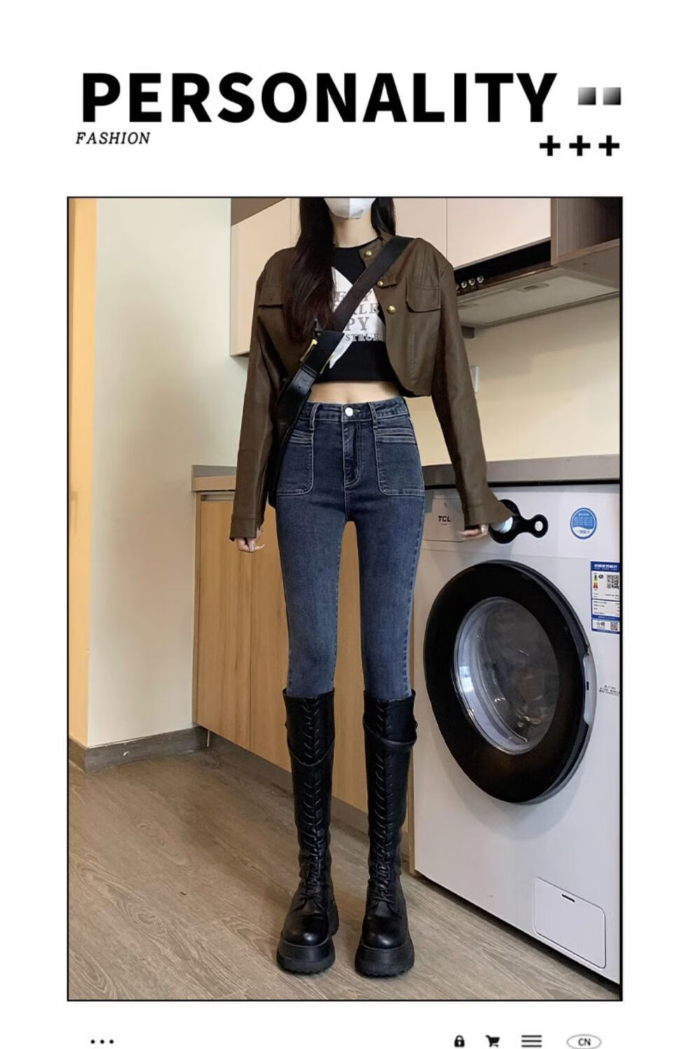 花花公子(PLAYBOY)显身材感小脚裤2025新款高腰牛仔裤女紧身修身显瘦铅笔裤潮流 【腰带】+633蓝灰 单裤 25