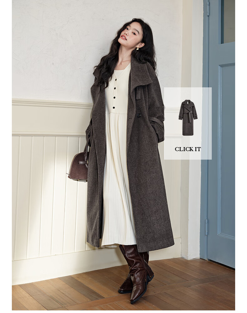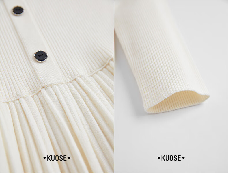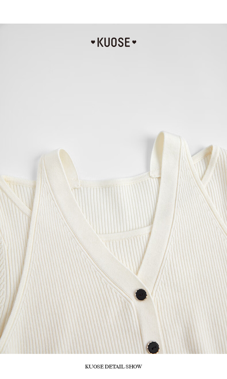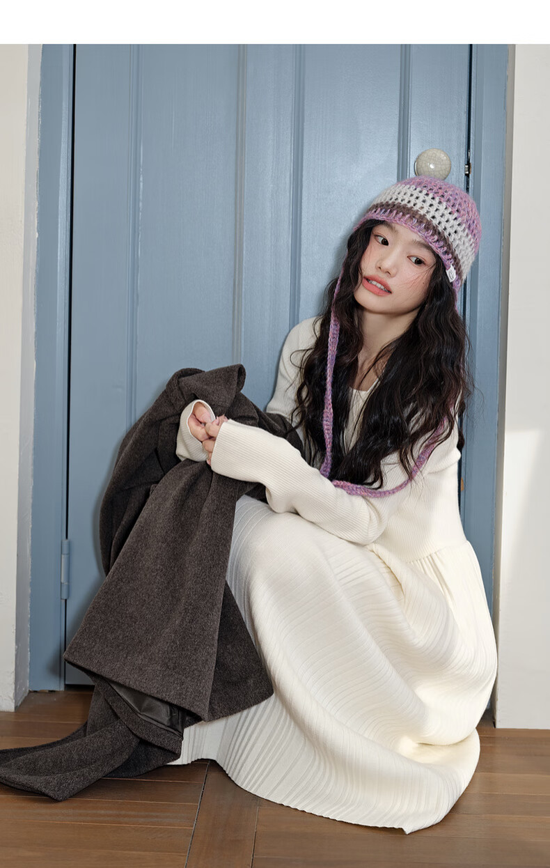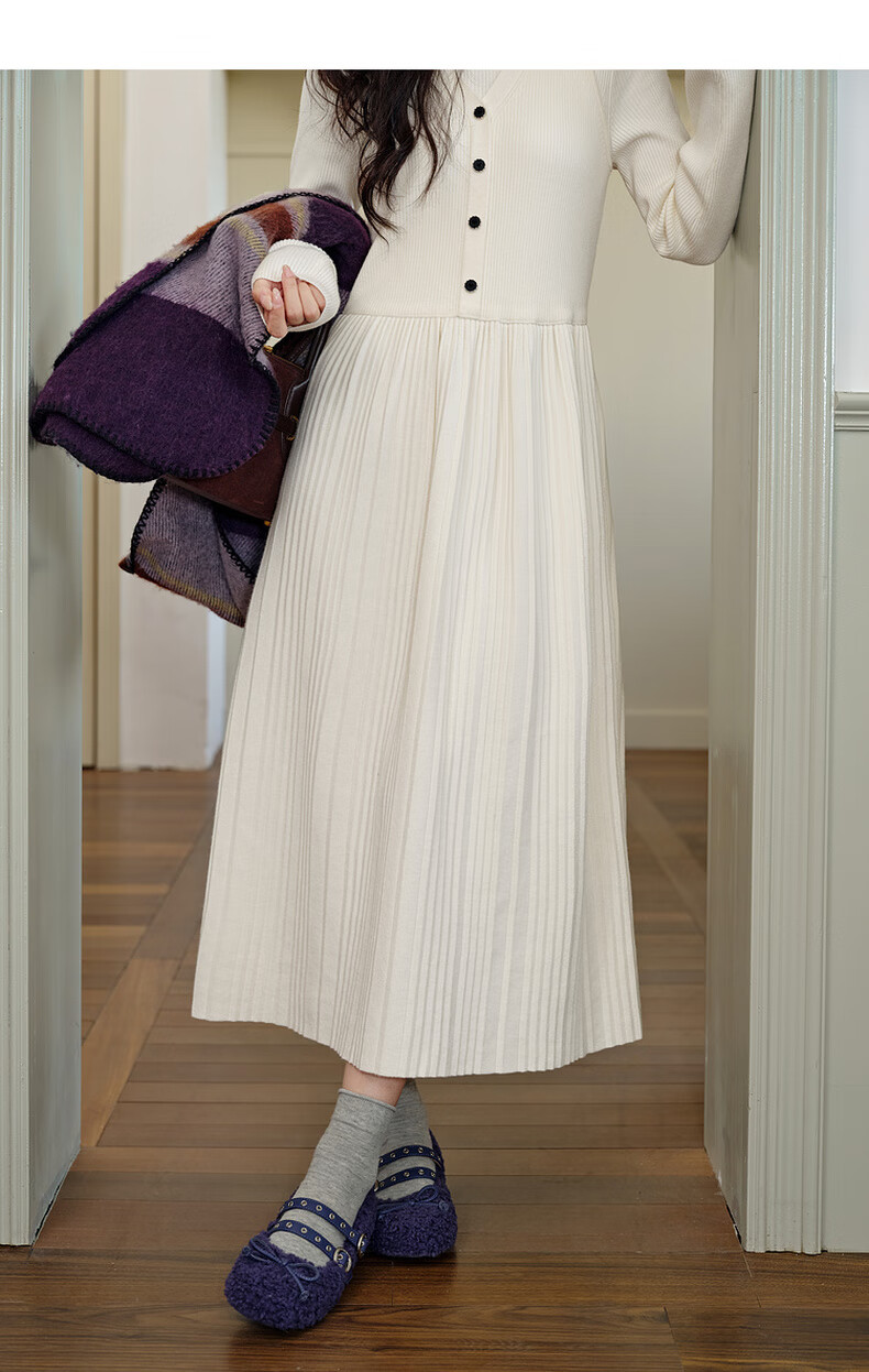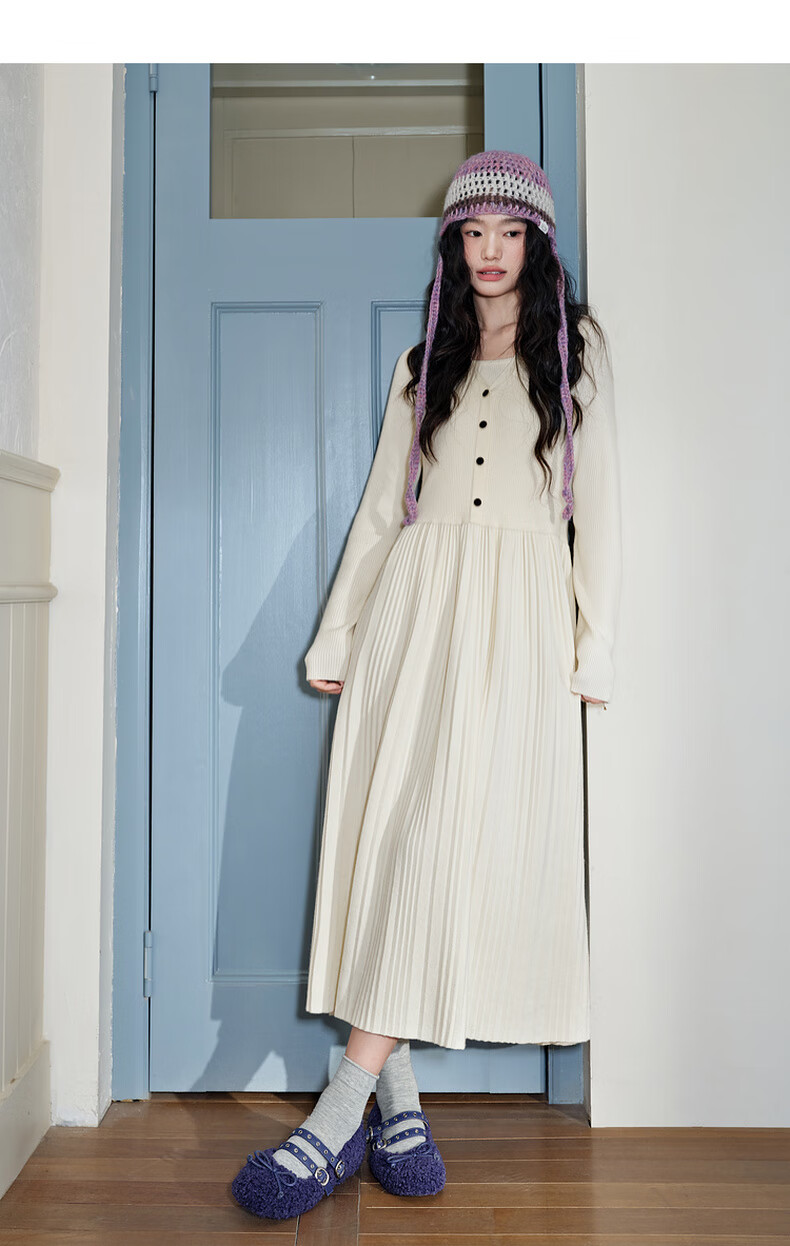 阔色气质挂脖假两件长袖连衣裙内搭裙25秋冬季新款女毛衣裙长裙子 杏色 S