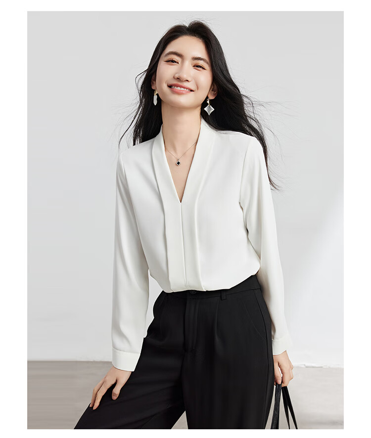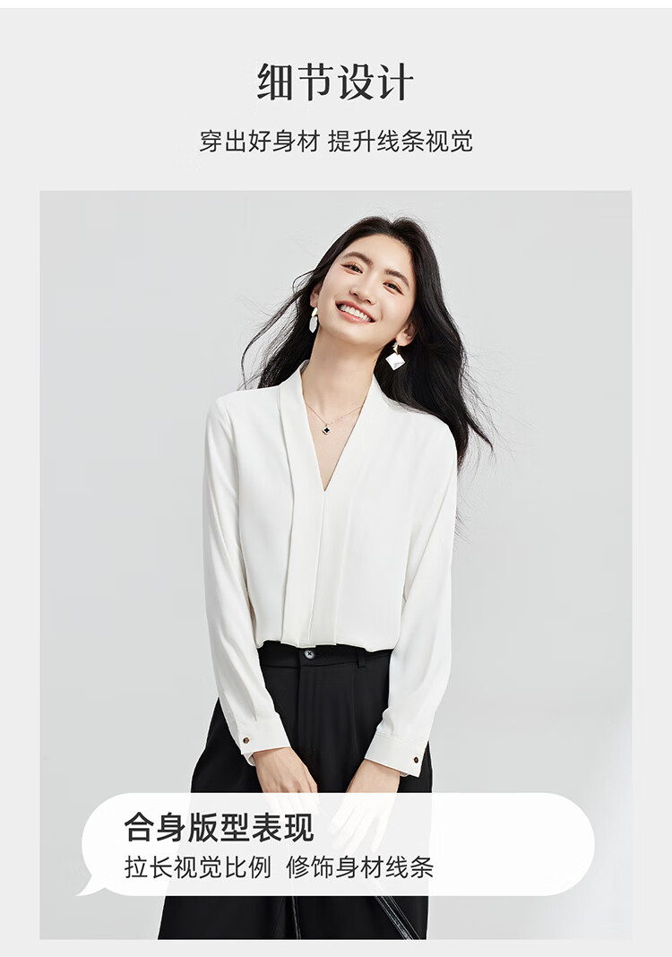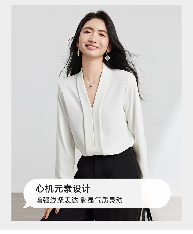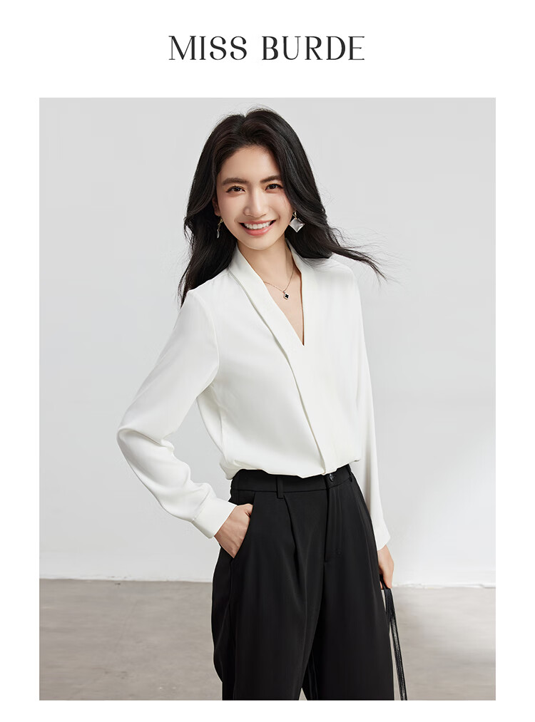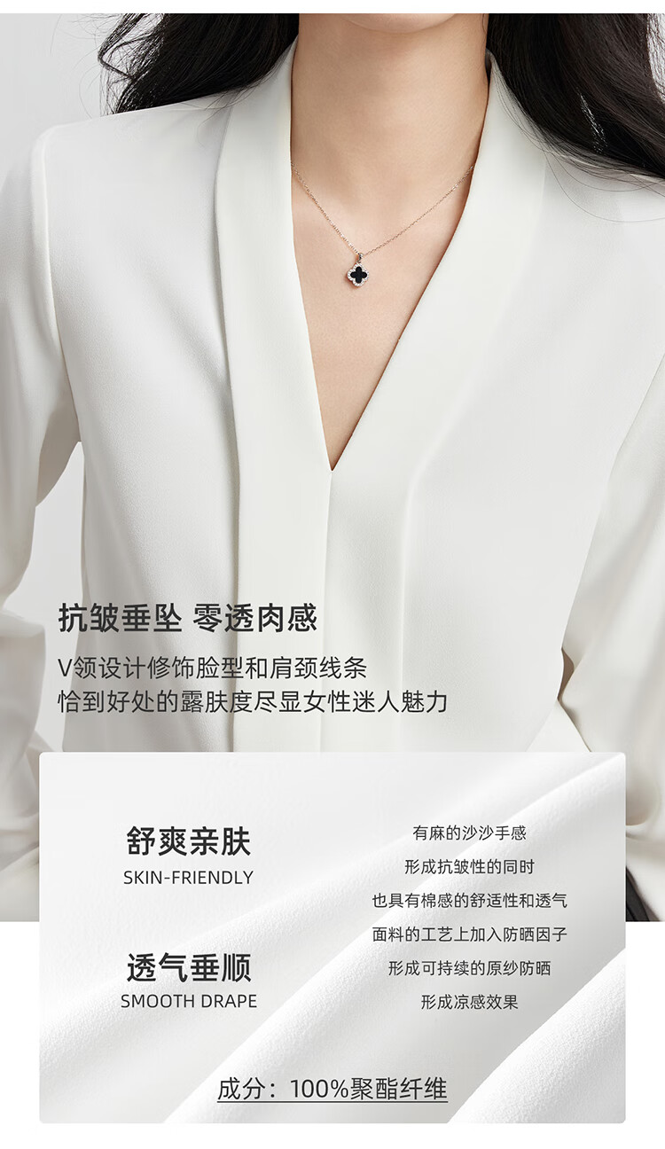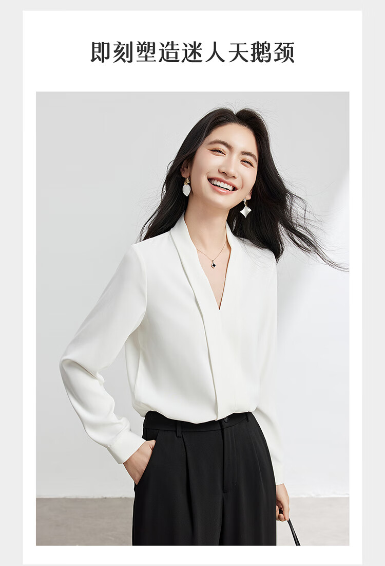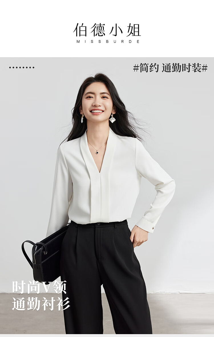 伯德小姐白色衬衫v领职业装女西装内搭上衣正装面试通勤日常上班雪纺衬衣