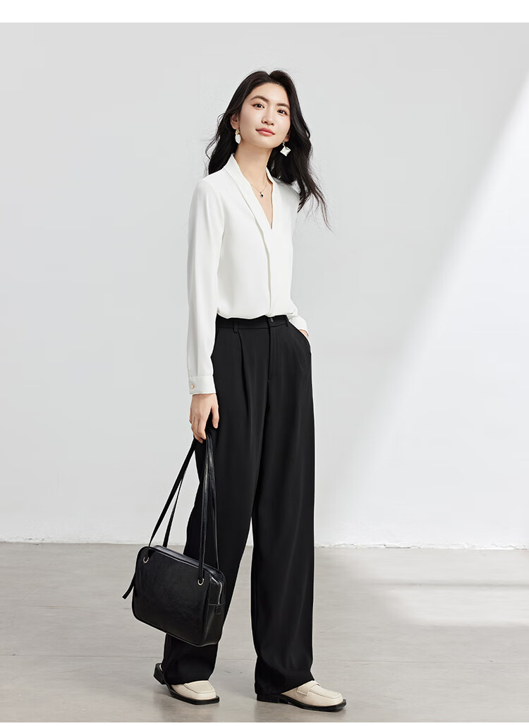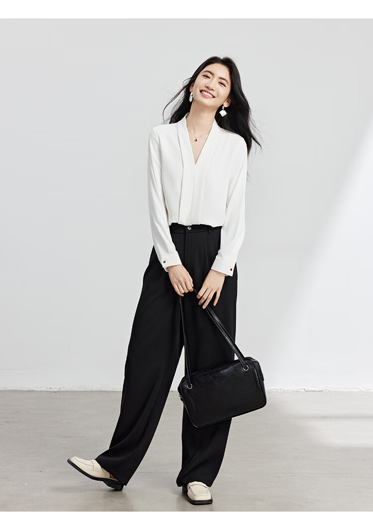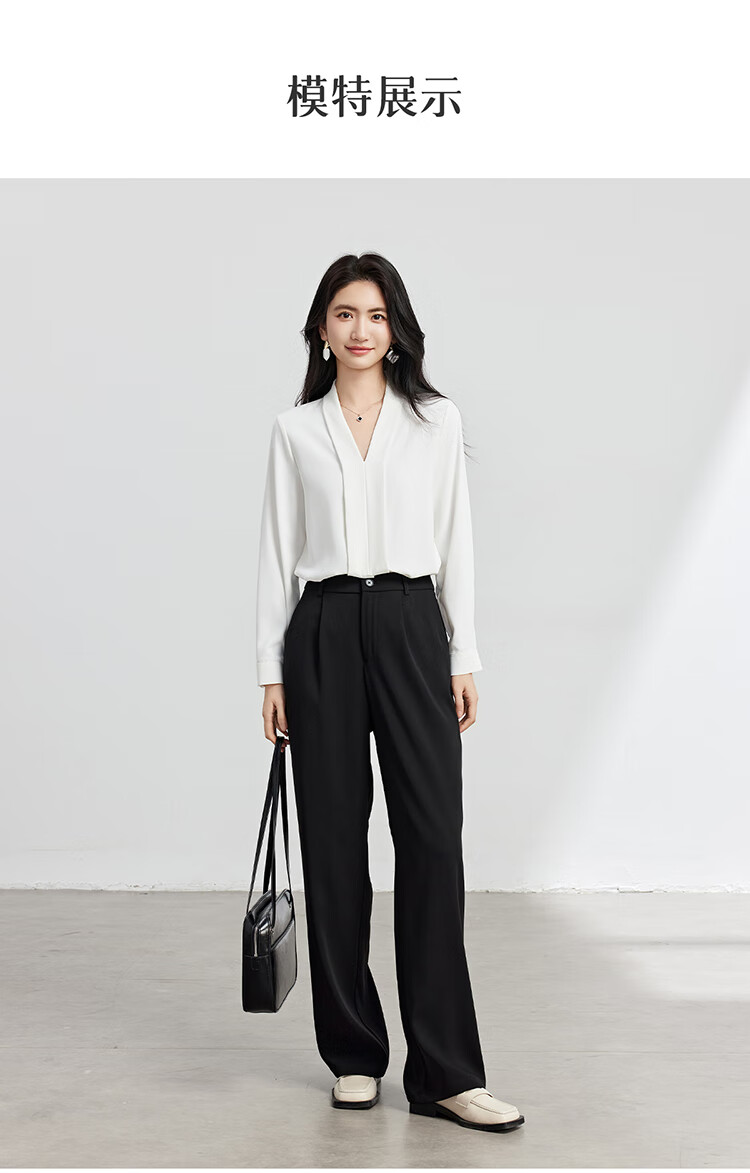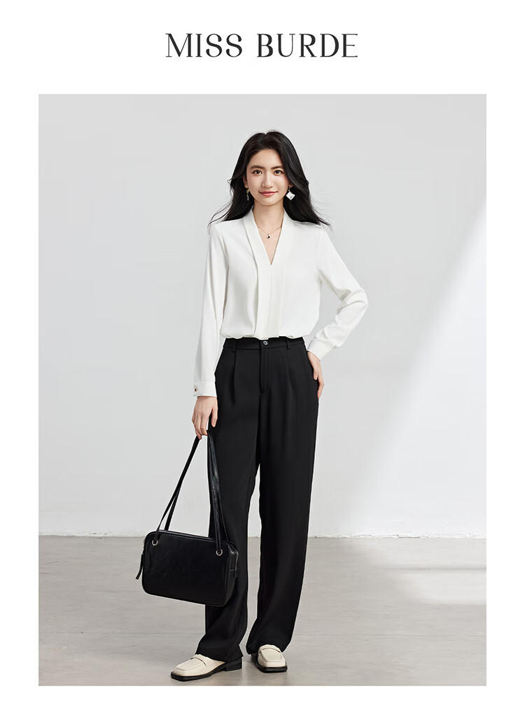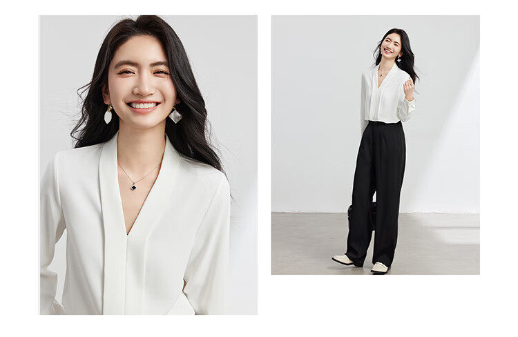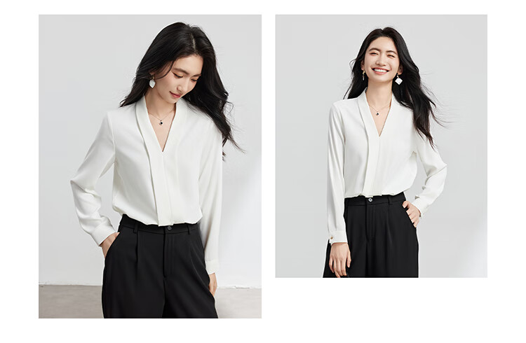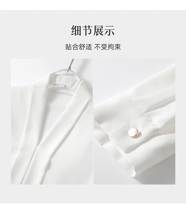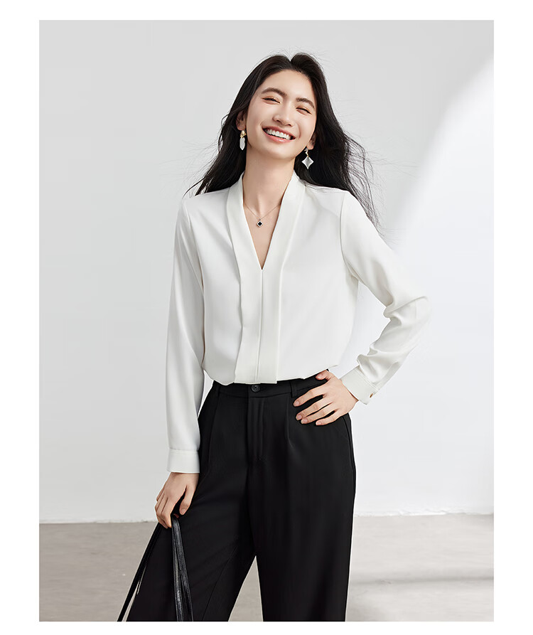 伯德小姐白色衬衫v领职业装女西装内搭上衣正装面试通勤日常上班雪纺衬衣