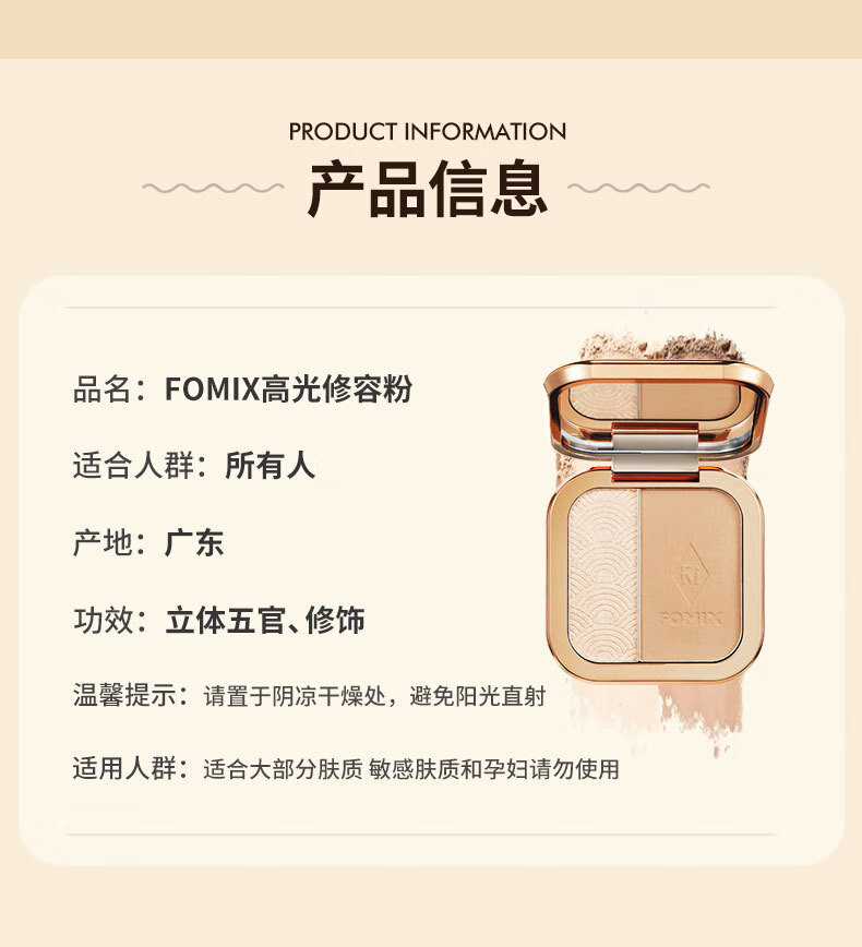 FOMIX双色高光修容一体盘提亮立体阴影侧影暗影鼻影修容粉 高光修容一体盘9g(送修容刷)