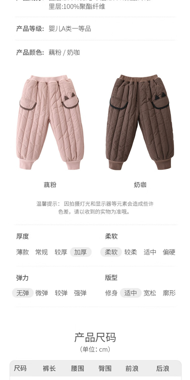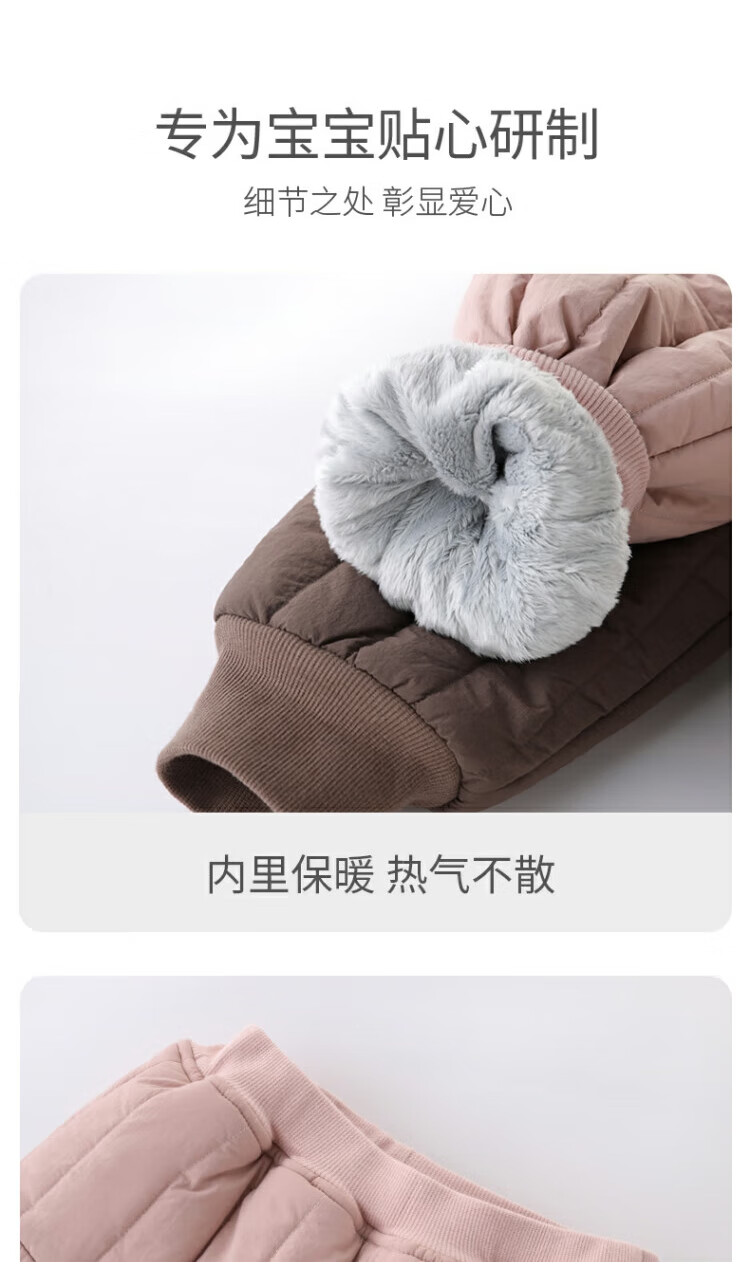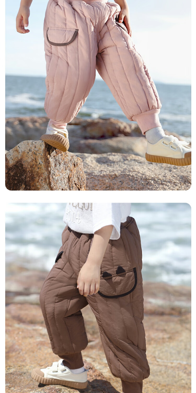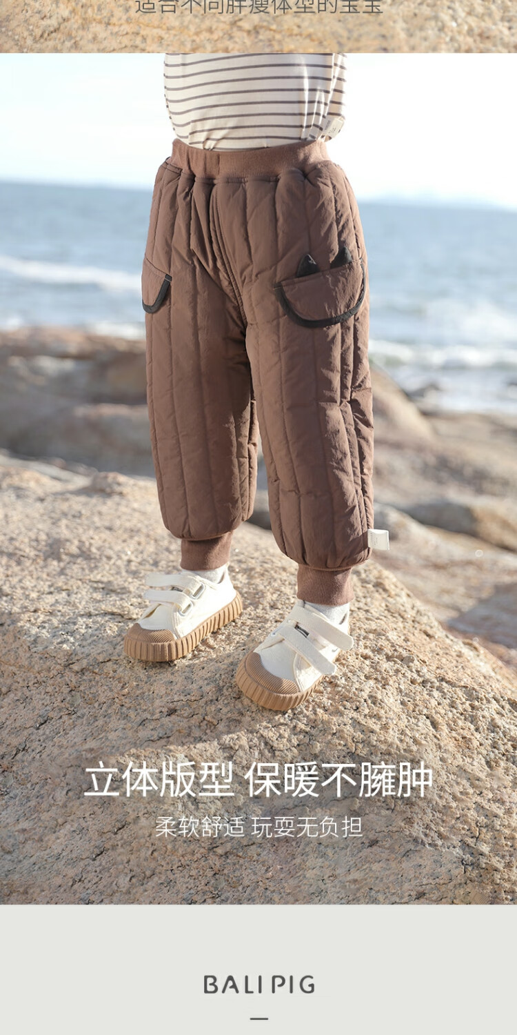 巴厘小猪儿童棉裤冬季加绒加厚长裤宝宝休闲裤男童夹棉保暖裤秋冬女童裤子 奶咖 100