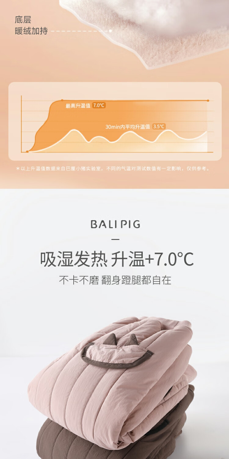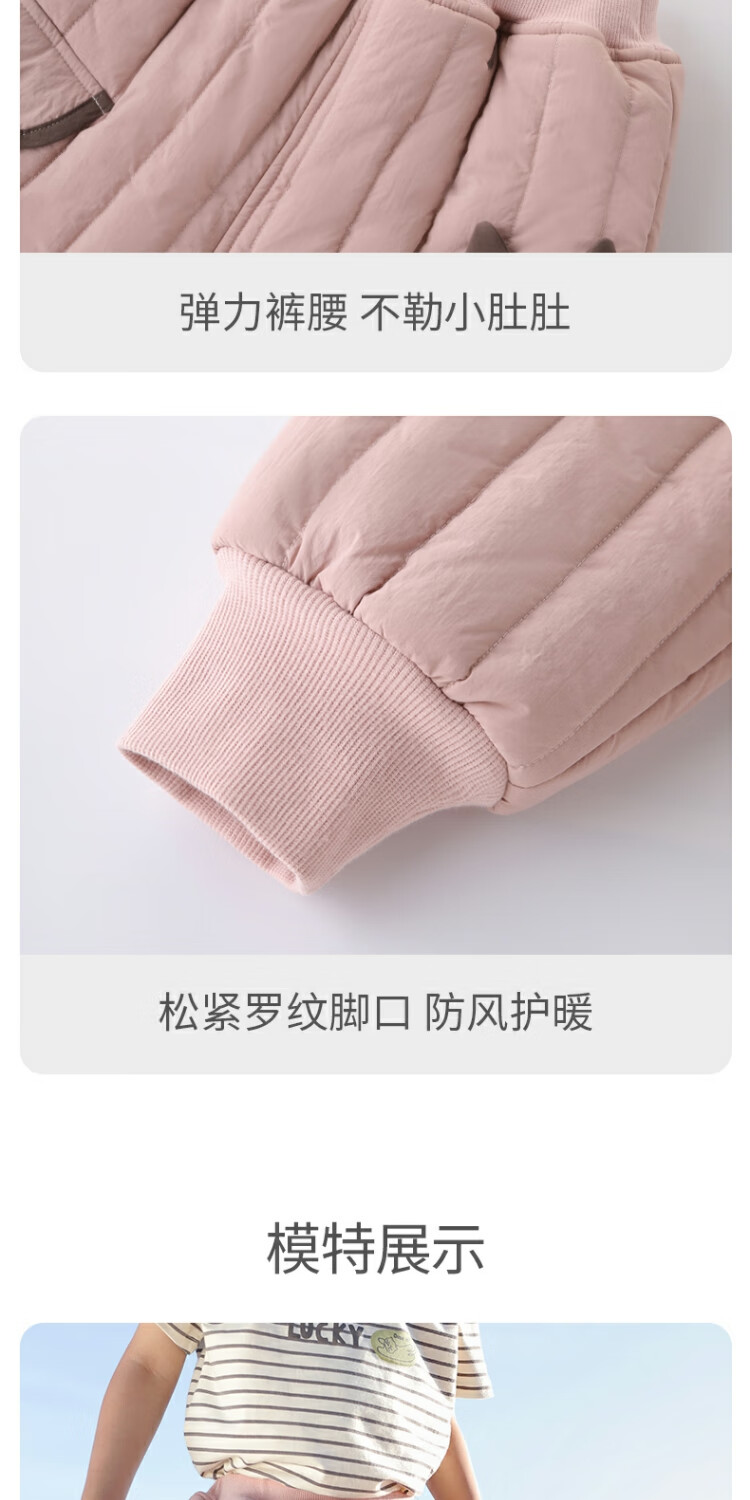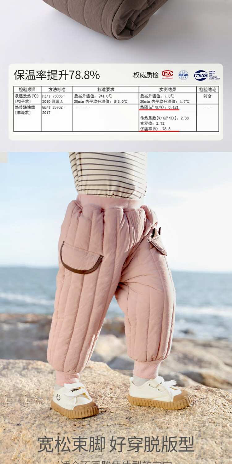 巴厘小猪儿童棉裤冬季加绒加厚长裤宝宝休闲裤男童夹棉保暖裤秋冬女童裤子 奶咖 100
