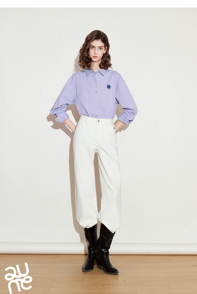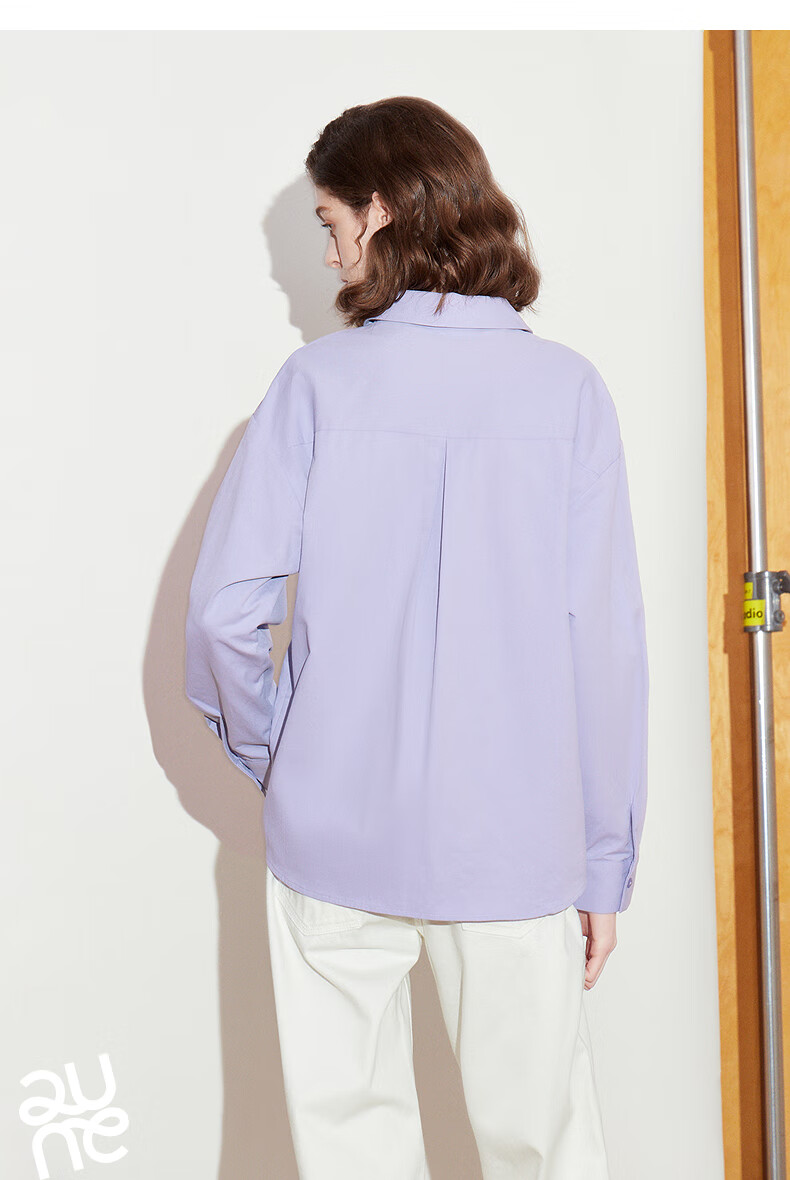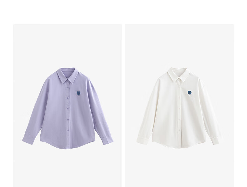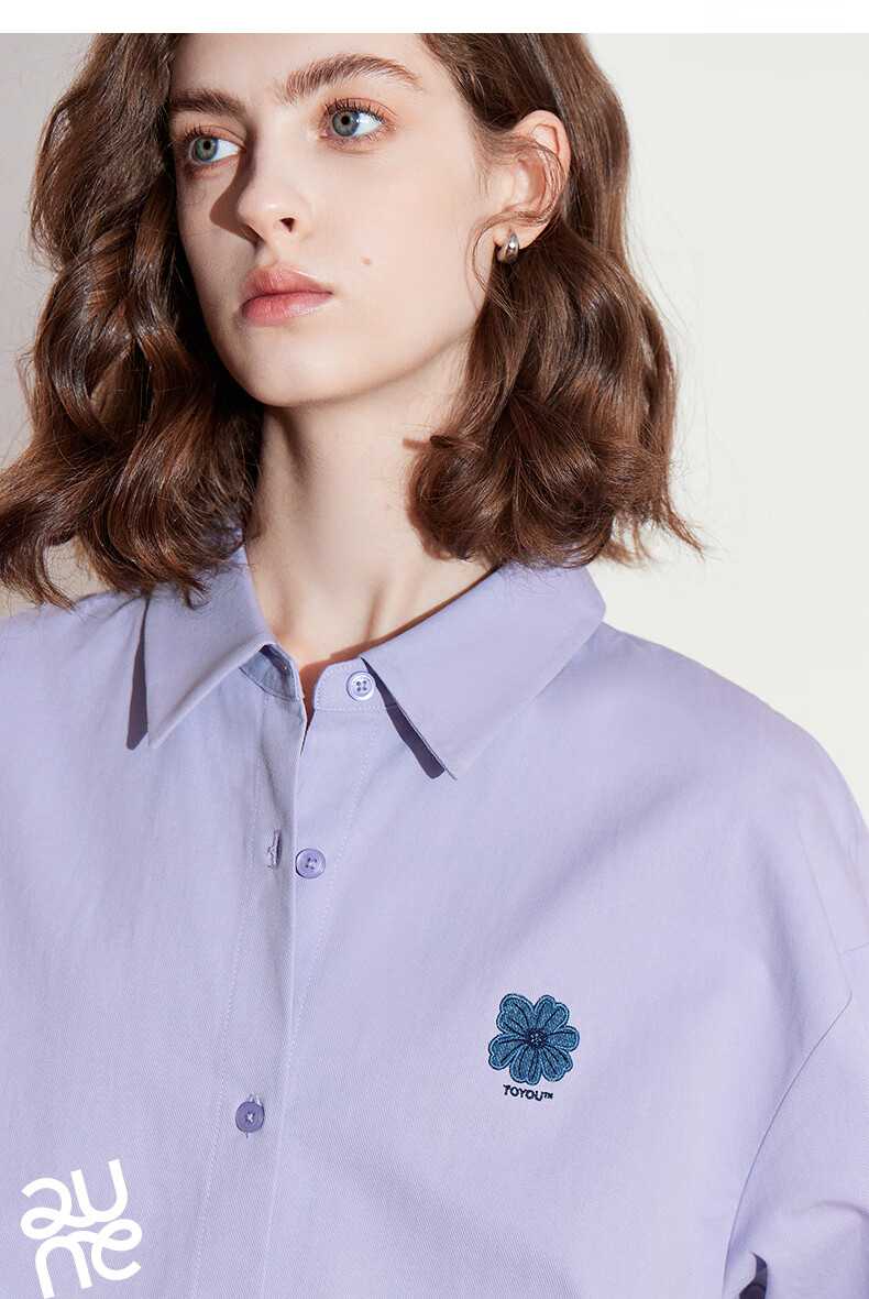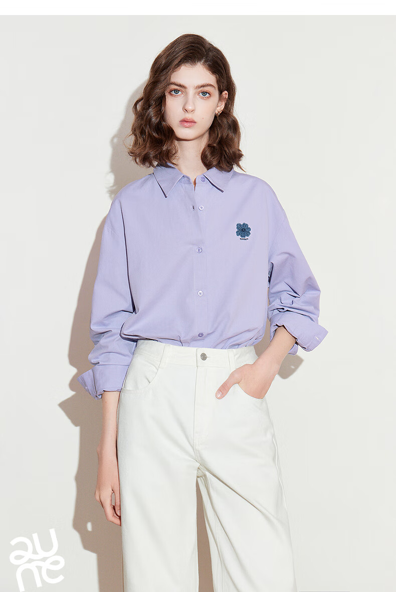 初语纯棉女士衬衫2025秋季新款绣花上衣休闲通勤百搭衬衣 浅紫色 XL