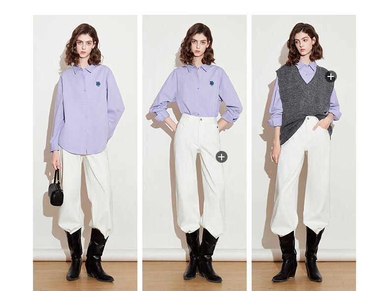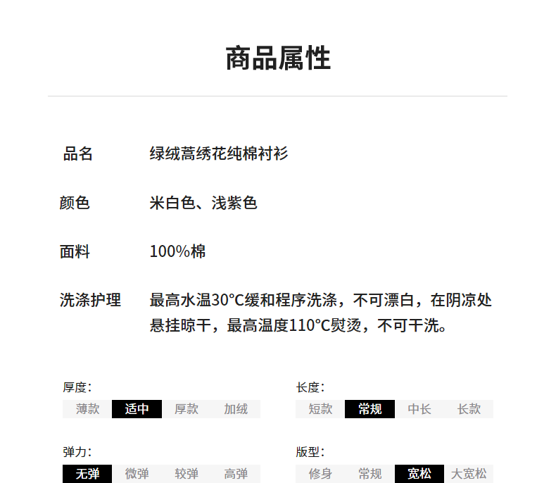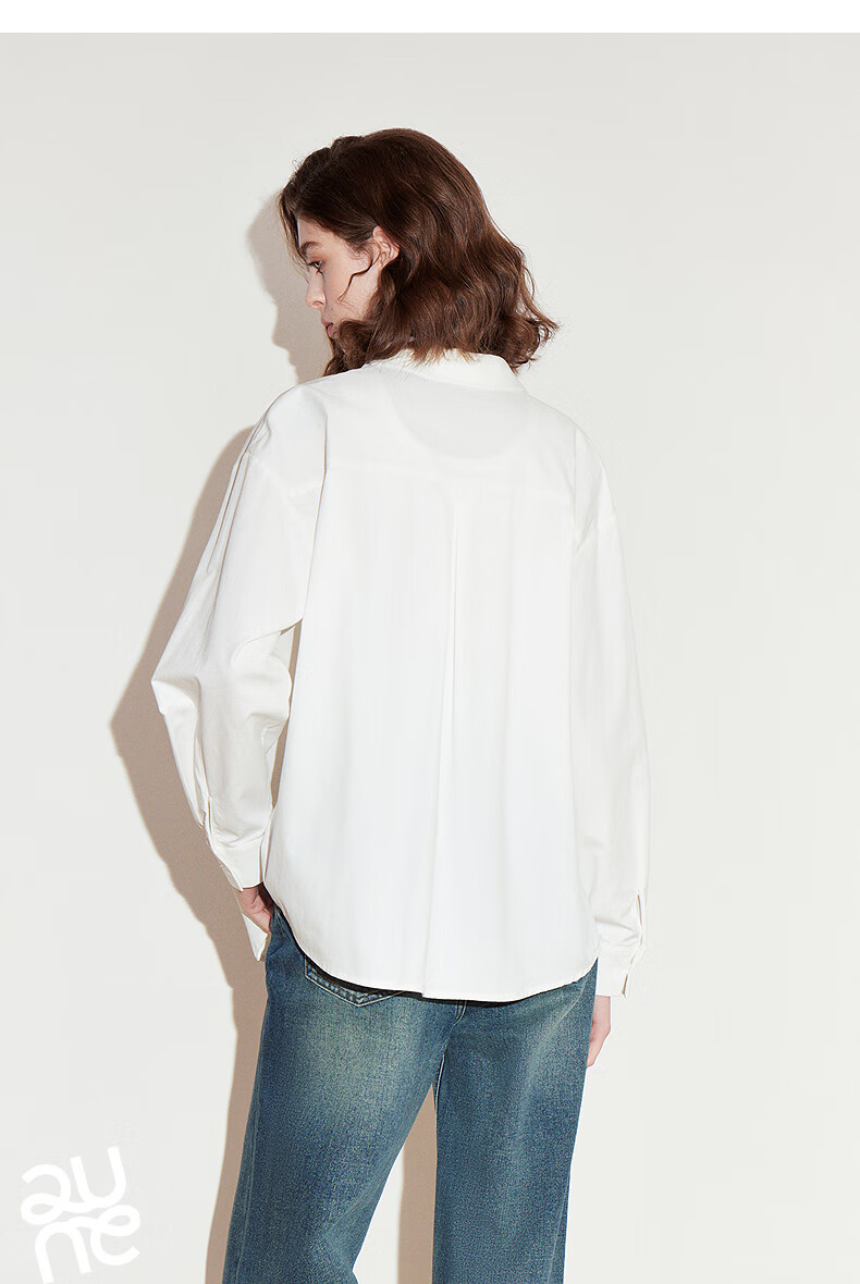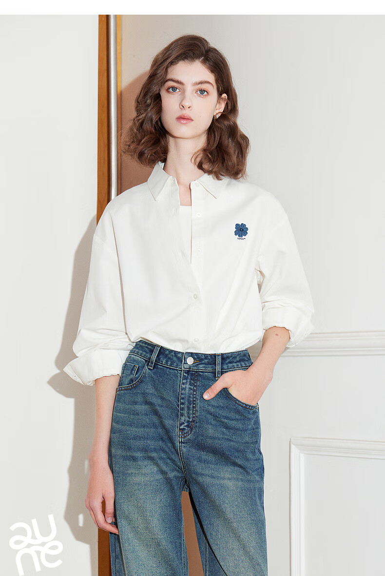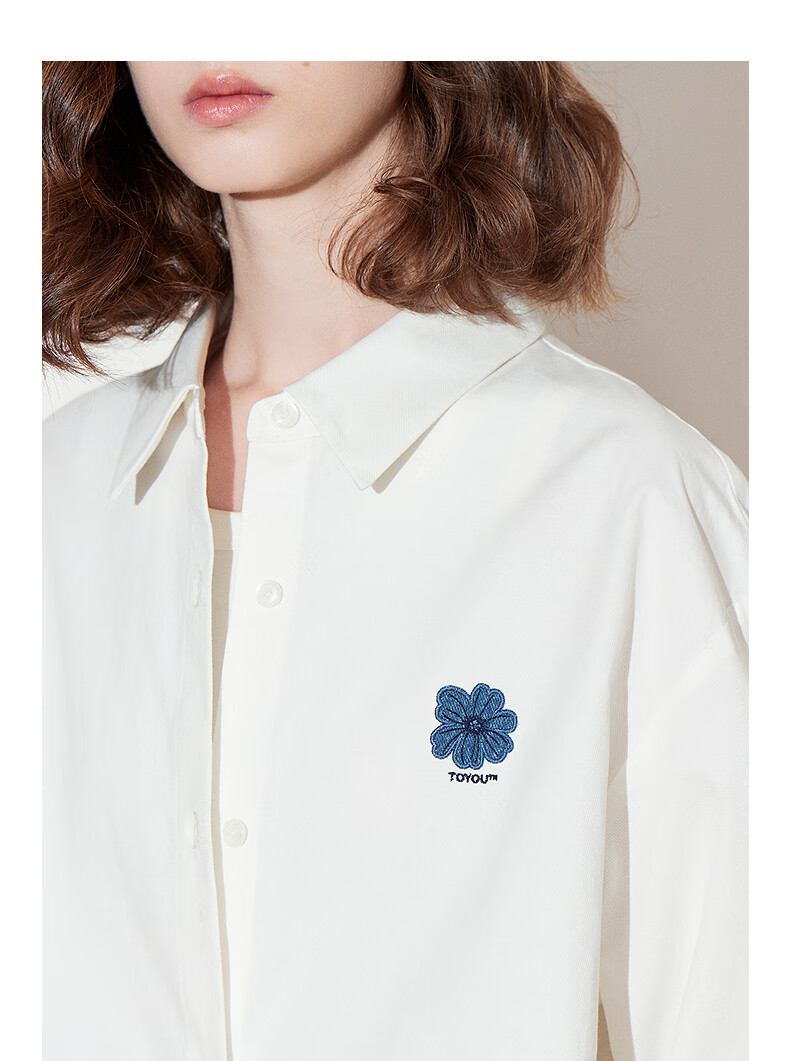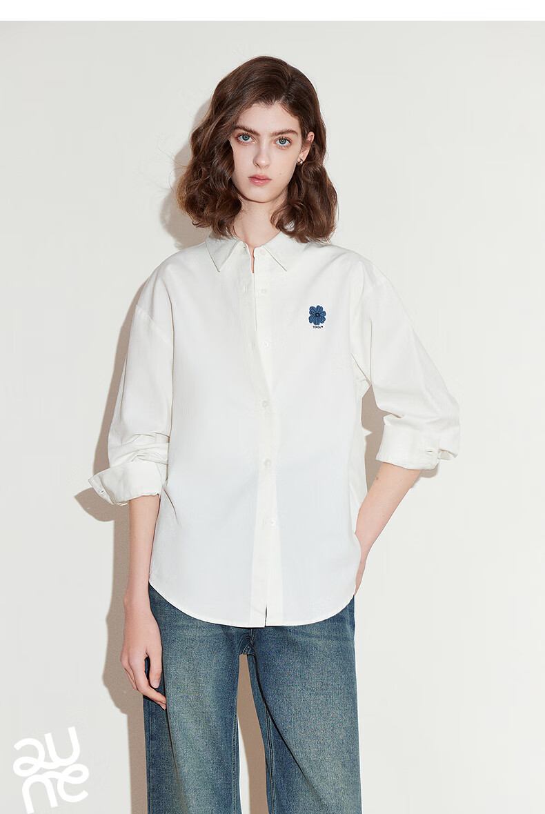 初语纯棉女士衬衫2025秋季新款绣花上衣休闲通勤百搭衬衣 浅紫色 XL