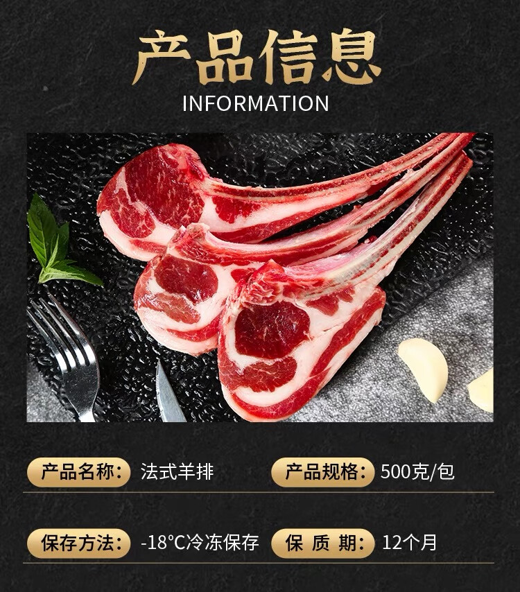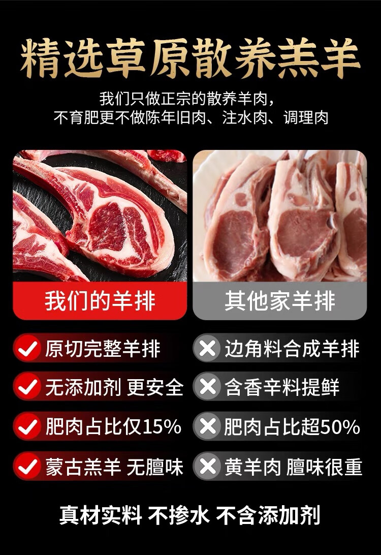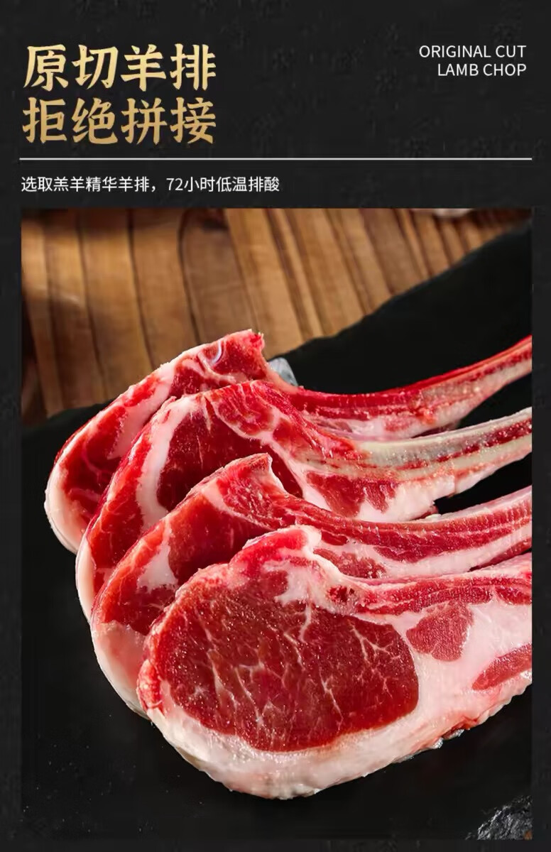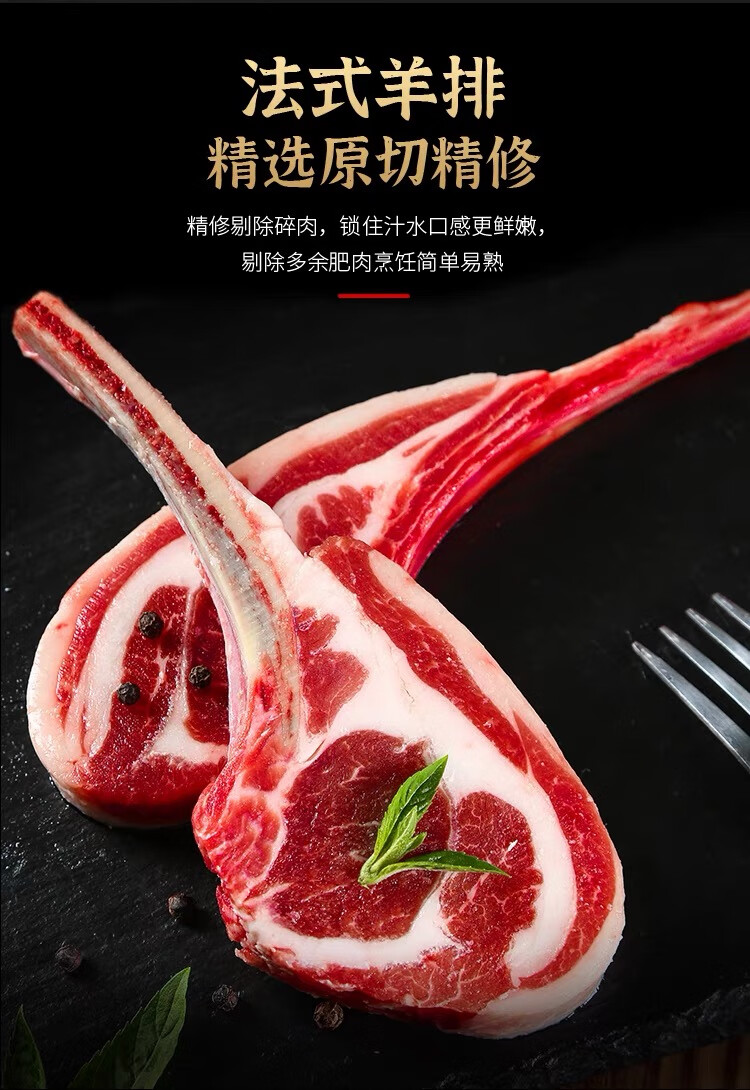 津尚鲜4斤原切法式羊排新鲜战斧羊肋排冷冻生羊肉烧烤烤肉食材商用批发 【2斤】原切法式羊排