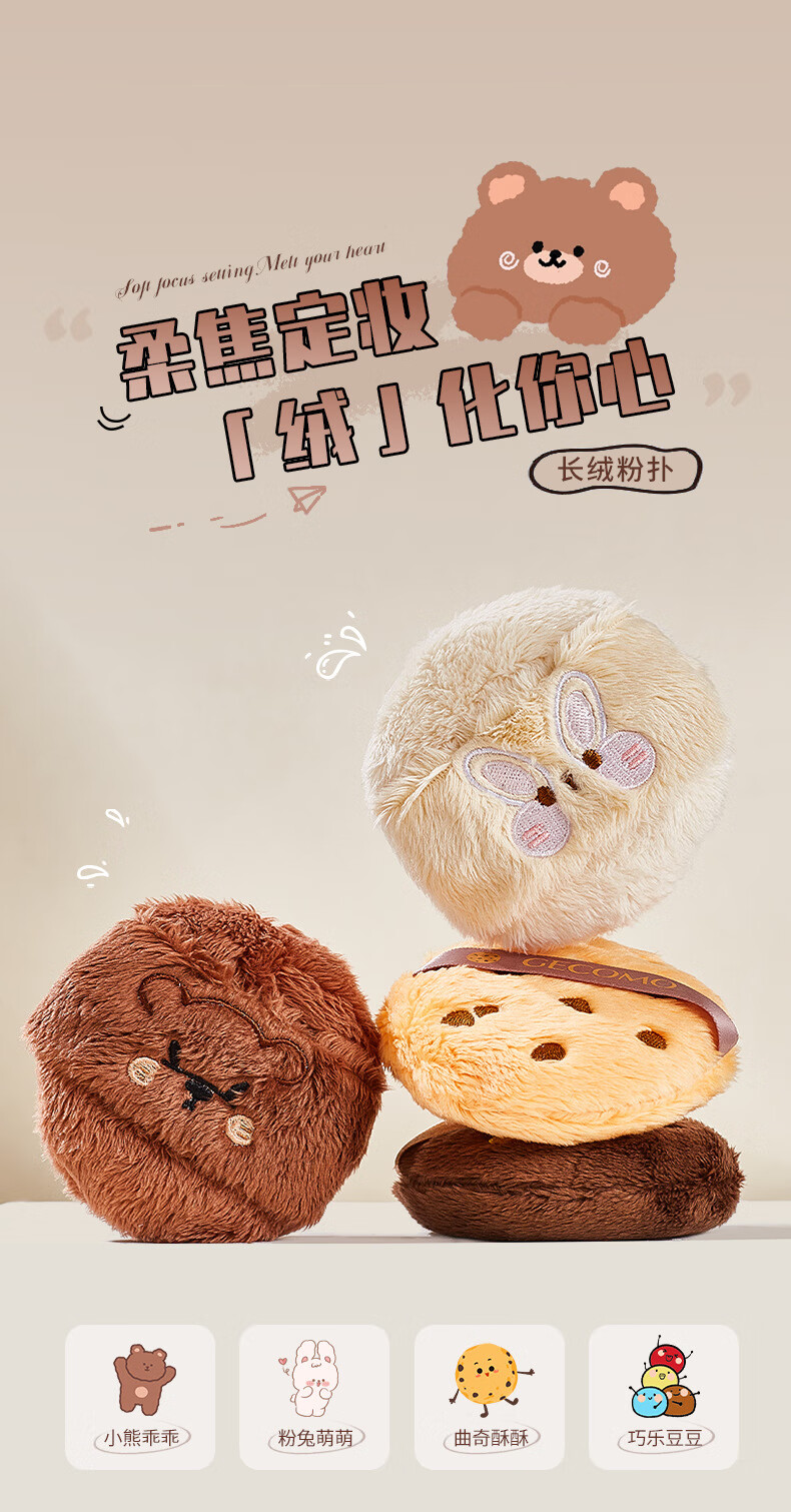 格小熊乖乖长绒粉扑散粉腮红定妆柔软植绒舒适亲肤厚实毛绒粉扑 毛绒粉扑(憨憨粉猪) 1枚