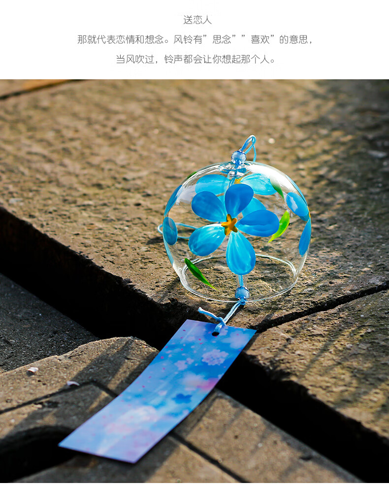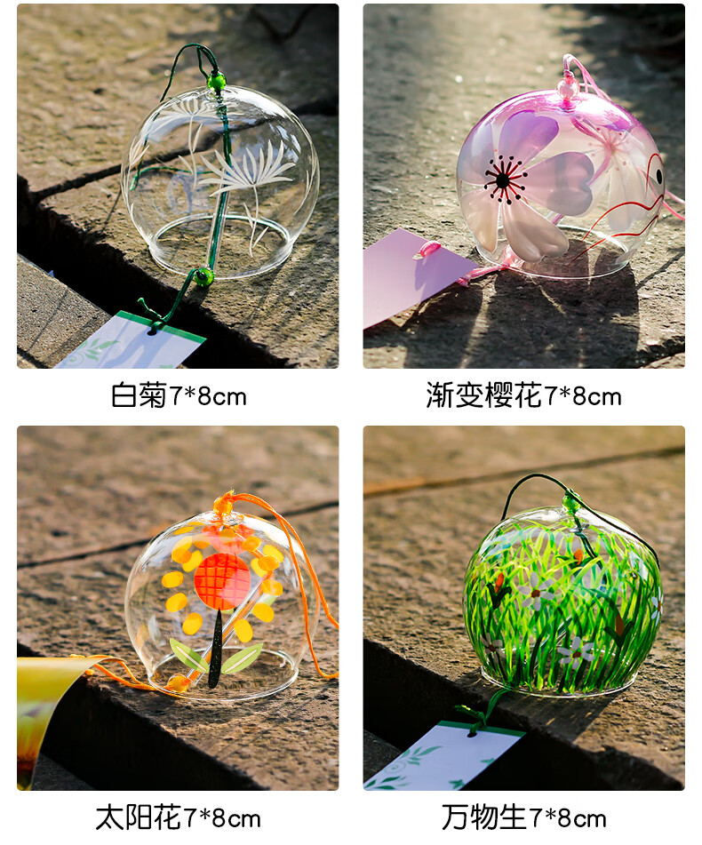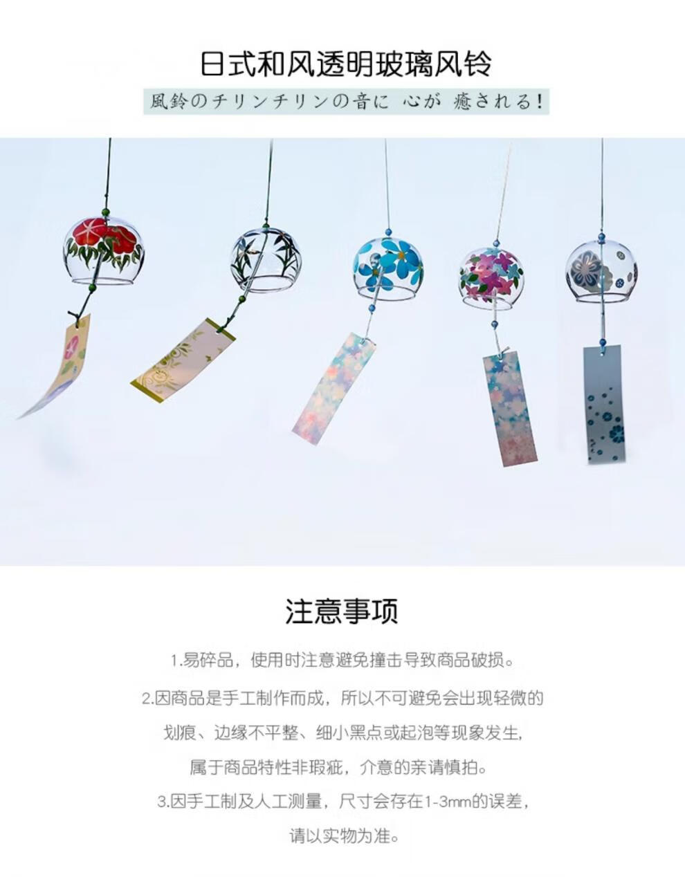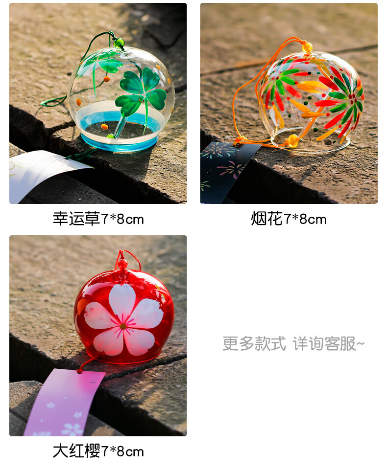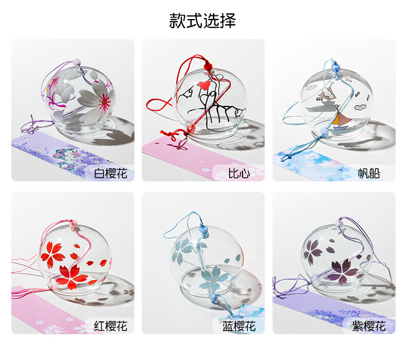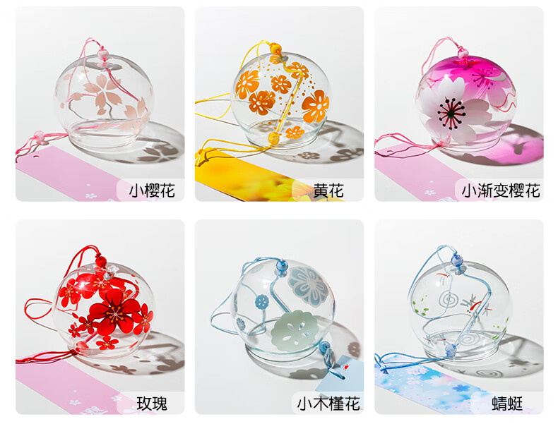 日式樱花风铃日式日本樱花风铃手工玻璃和风礼物挂件可爱小挂饰清 藕色定制竹木木牌