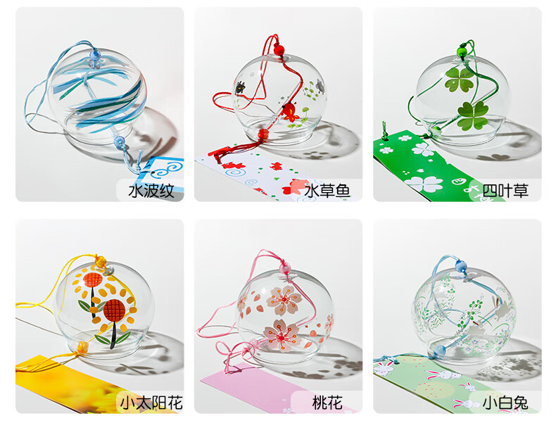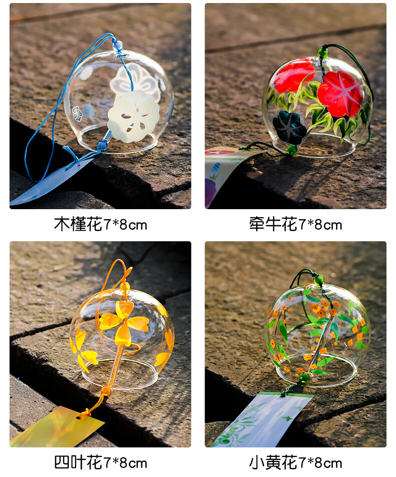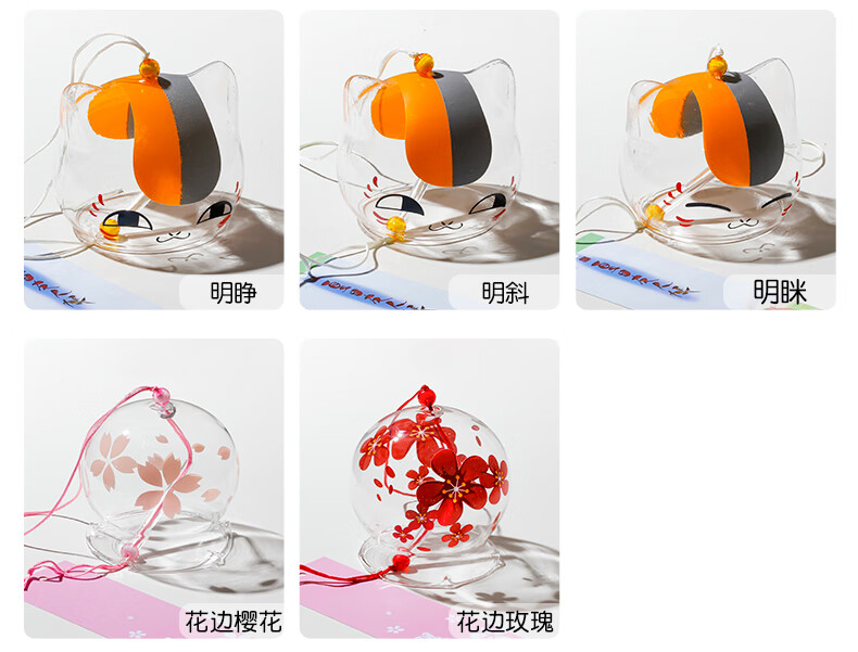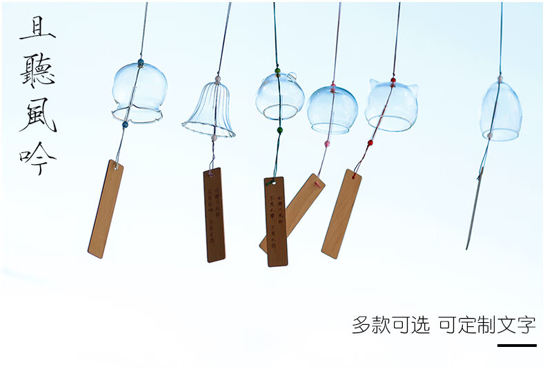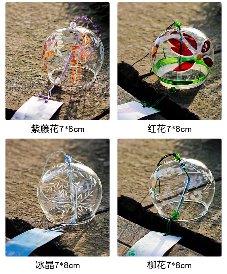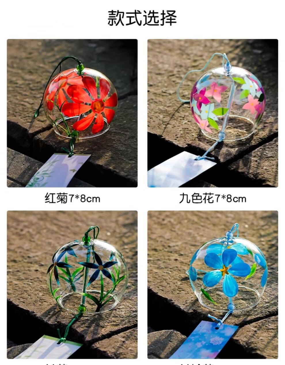 日式樱花风铃日式日本樱花风铃手工玻璃和风礼物挂件可爱小挂饰清 藕色定制竹木木牌