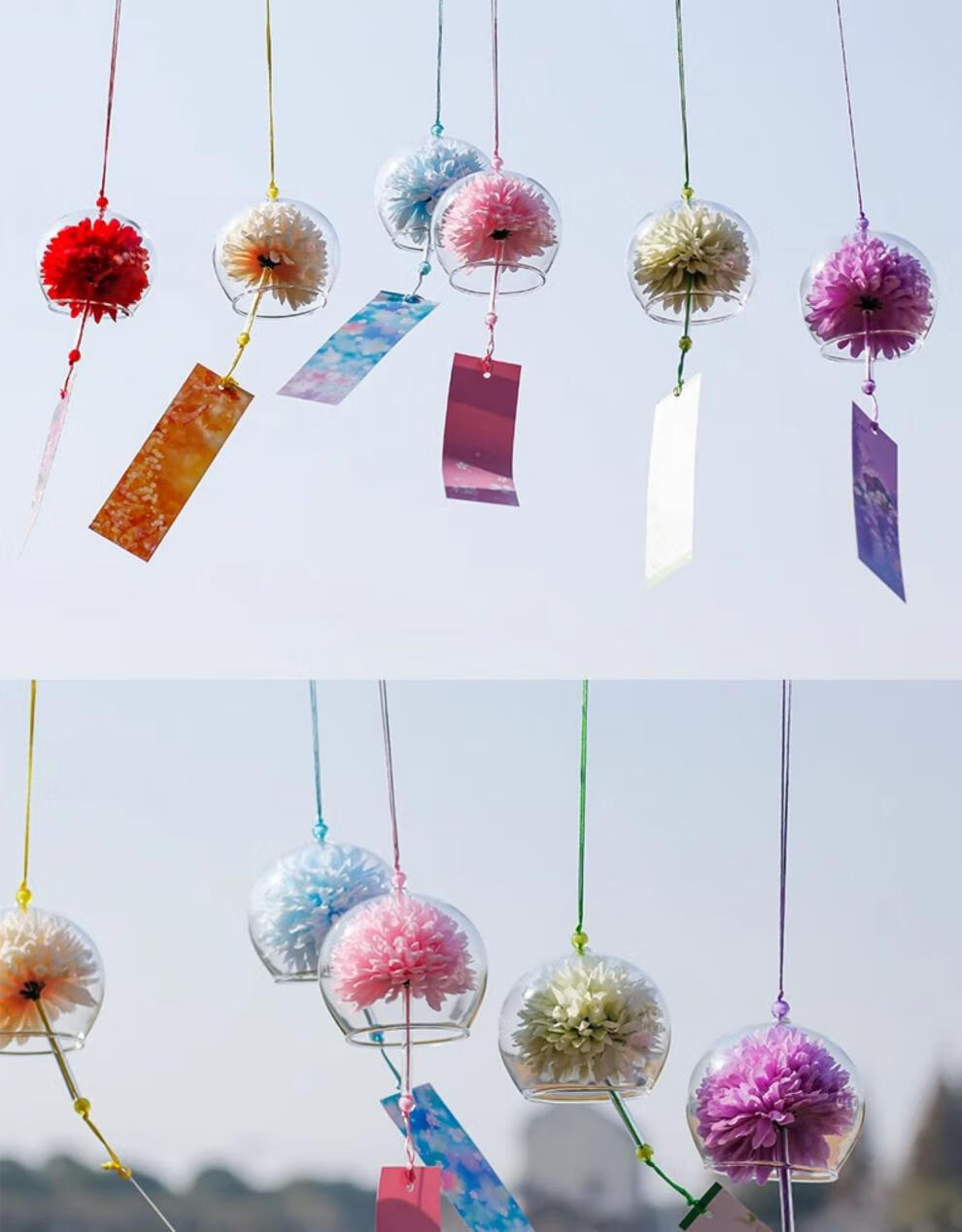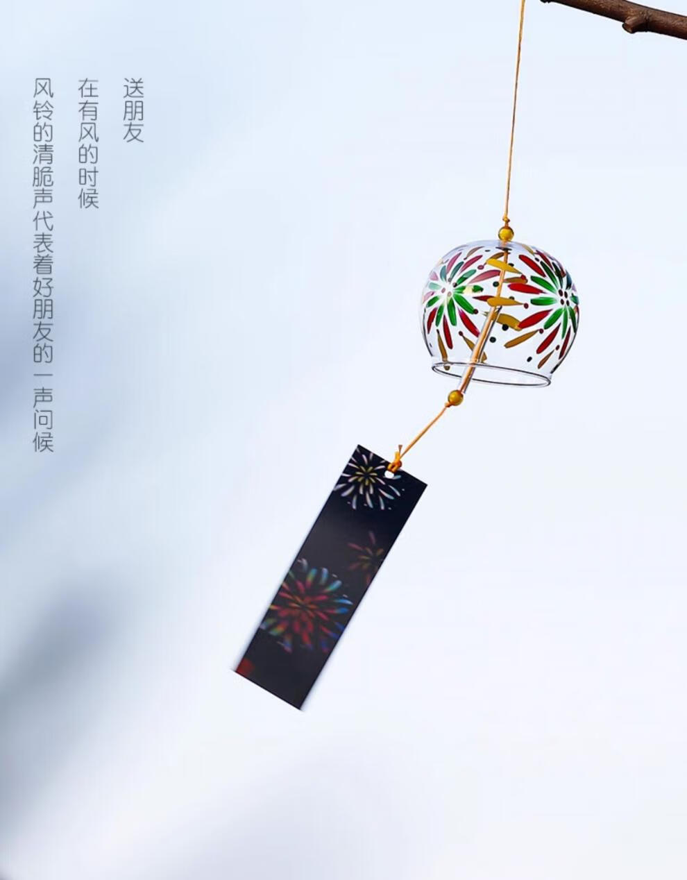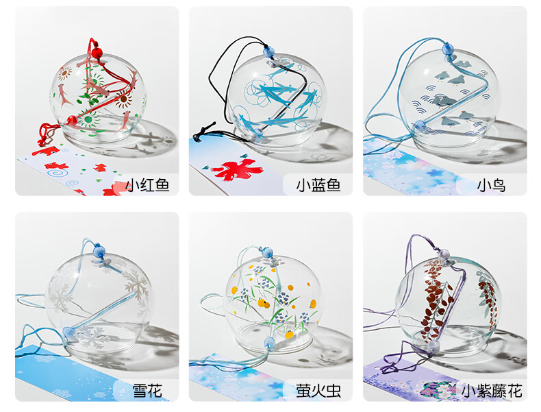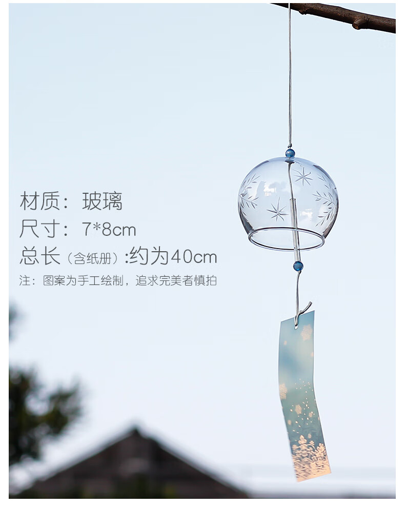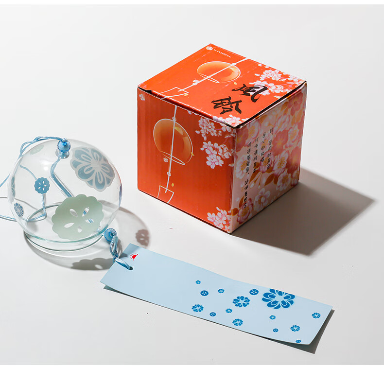 日式樱花风铃日式日本樱花风铃手工玻璃和风礼物挂件可爱小挂饰清 藕色定制竹木木牌