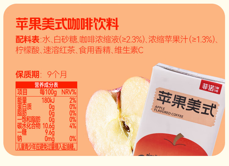 菲诺苹果美式咖啡 果咖 0脂真果汁 IIAC国际金奖 200g*24盒