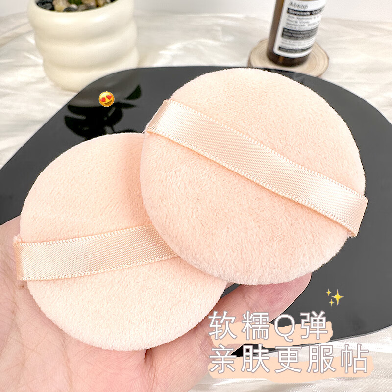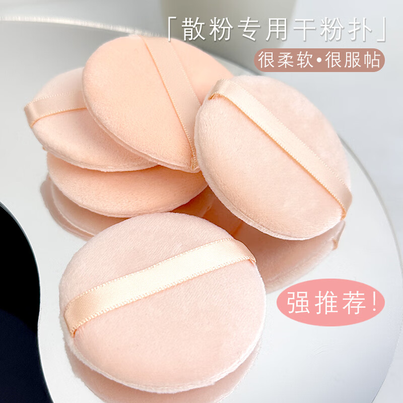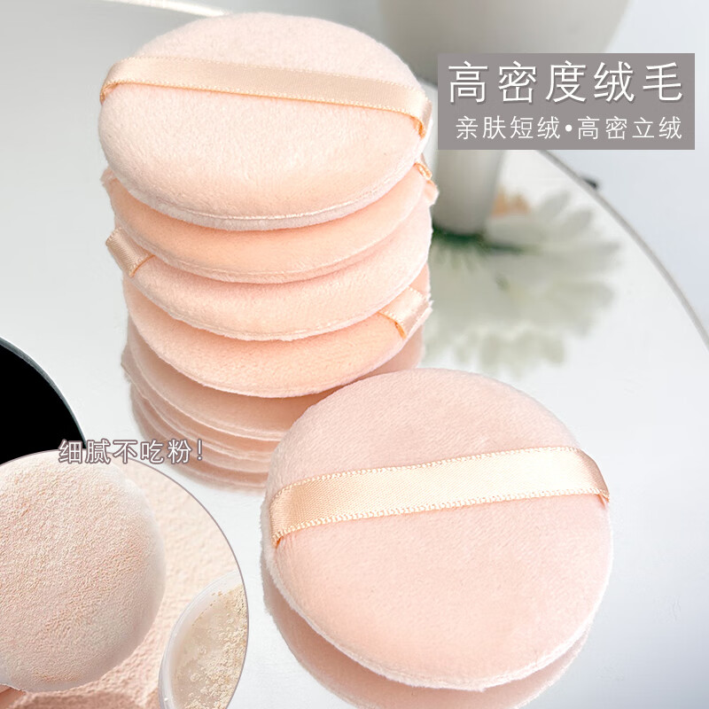 植绒粉扑干粉扑粉饼散粉定妆棉干用手钩亲肤柔软短绒化妆粉扑 大粉扑-3只装 3枚