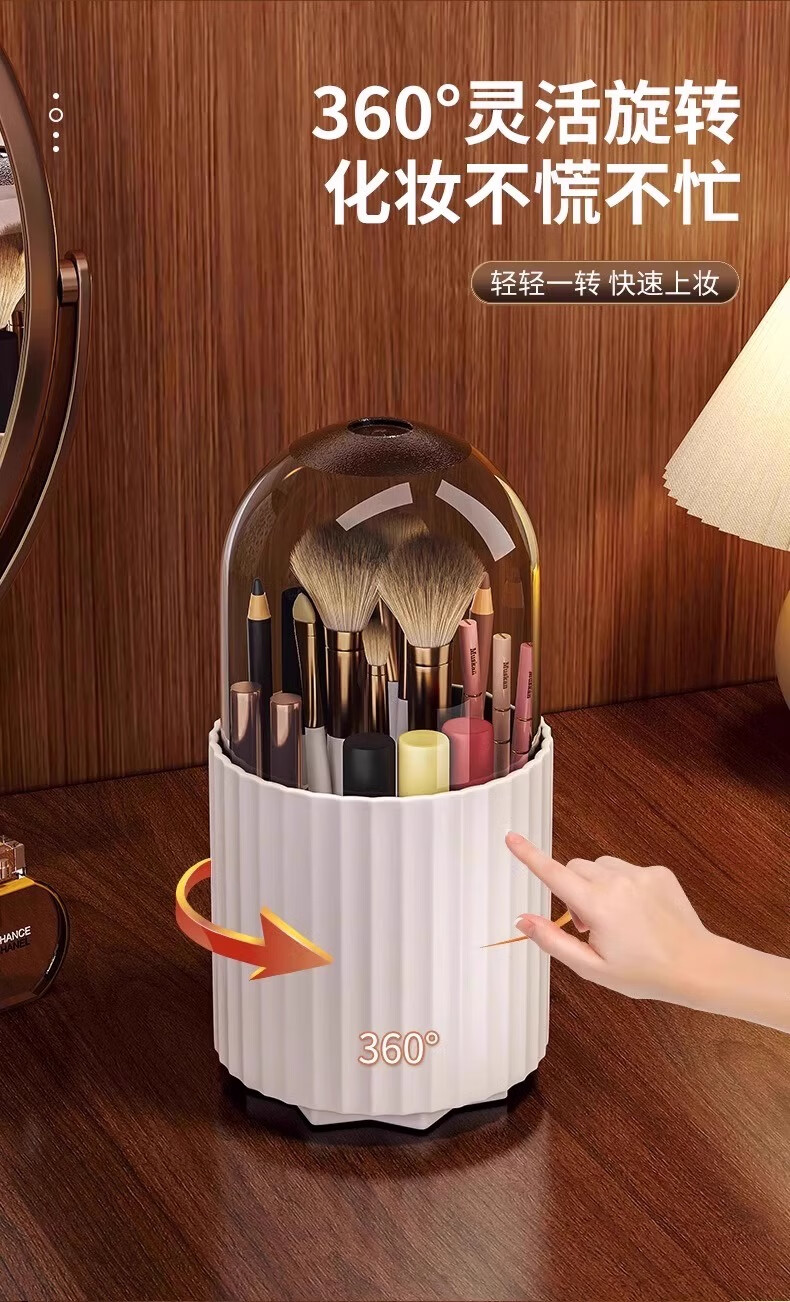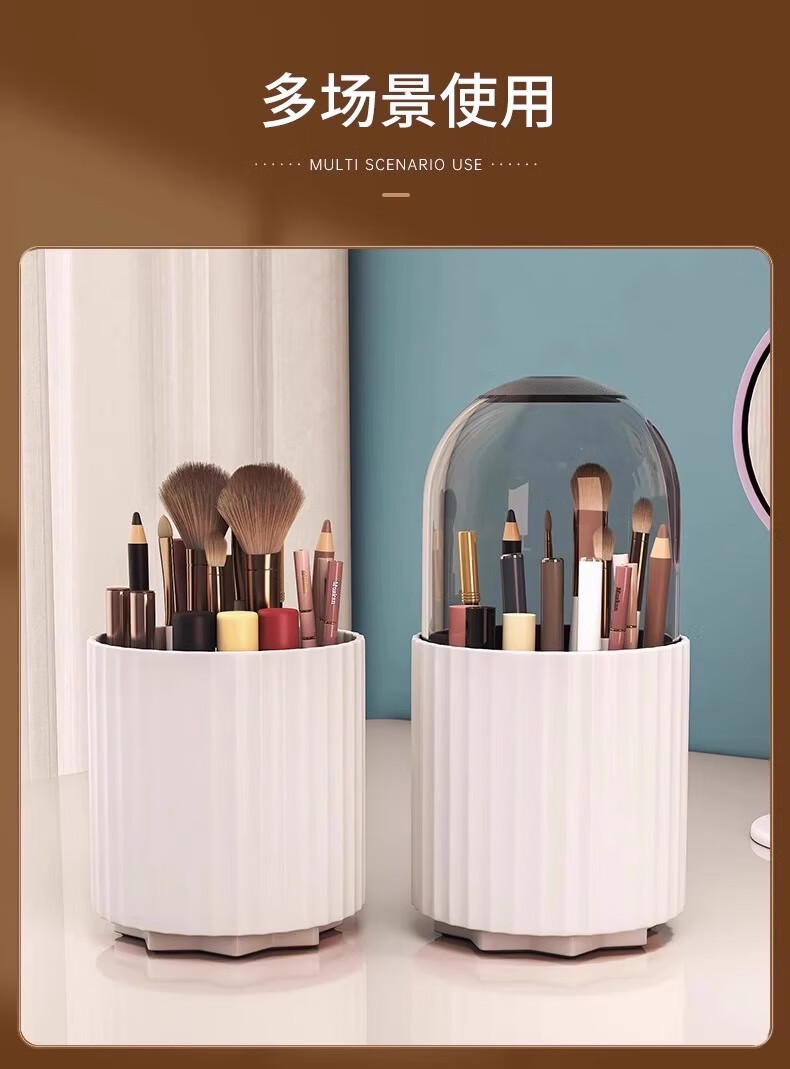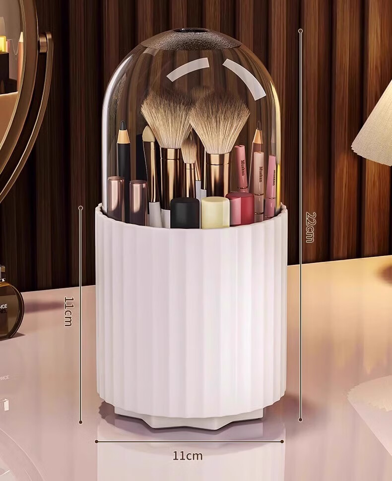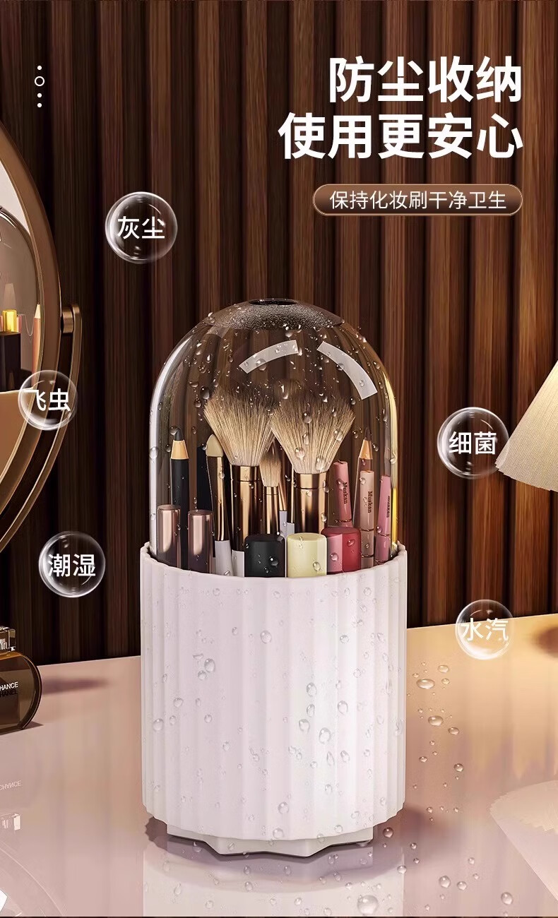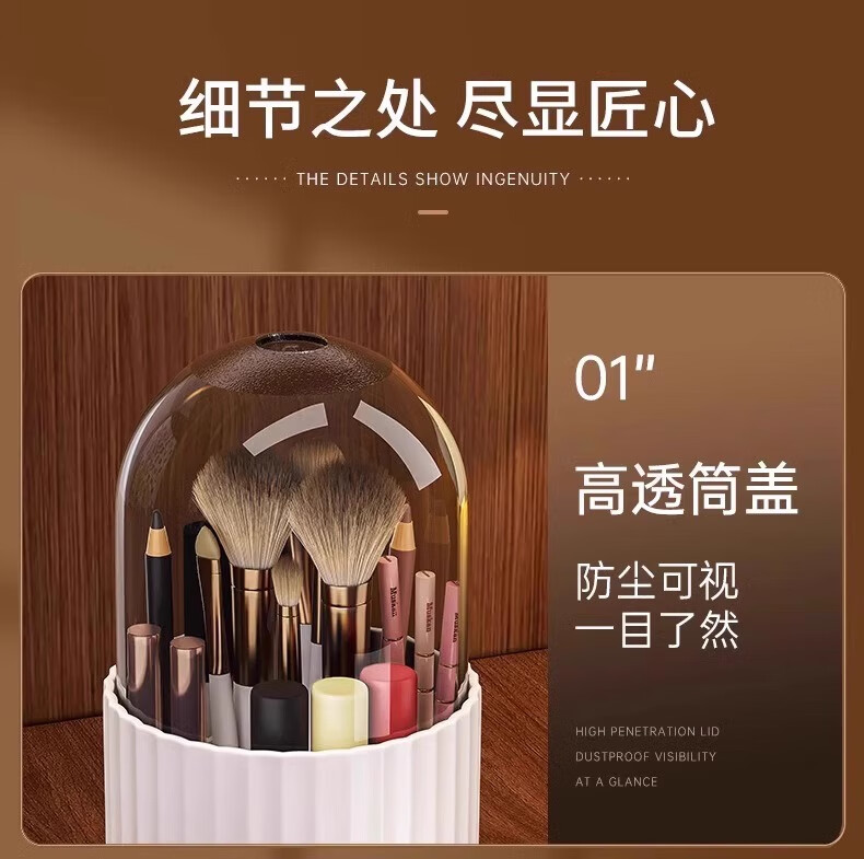 坤奉化妆品收纳盒防尘桌面化妆刷收纳筒口红粉扑刷子梳妆台无尘置物架 白色【11*22cm】带防尘盖