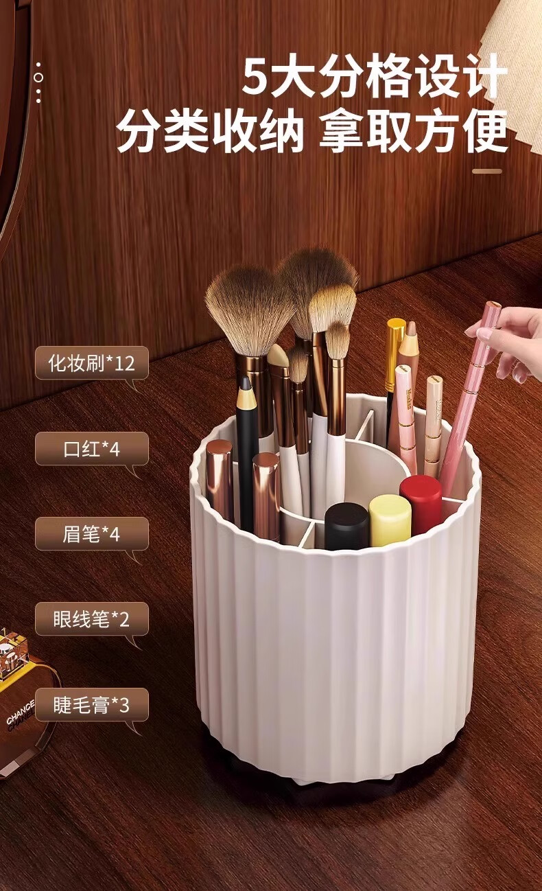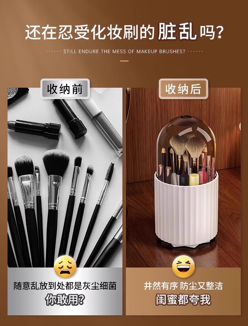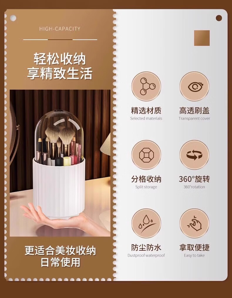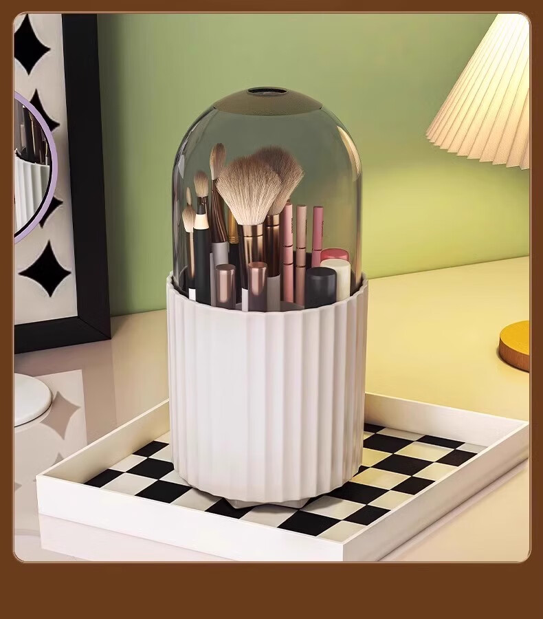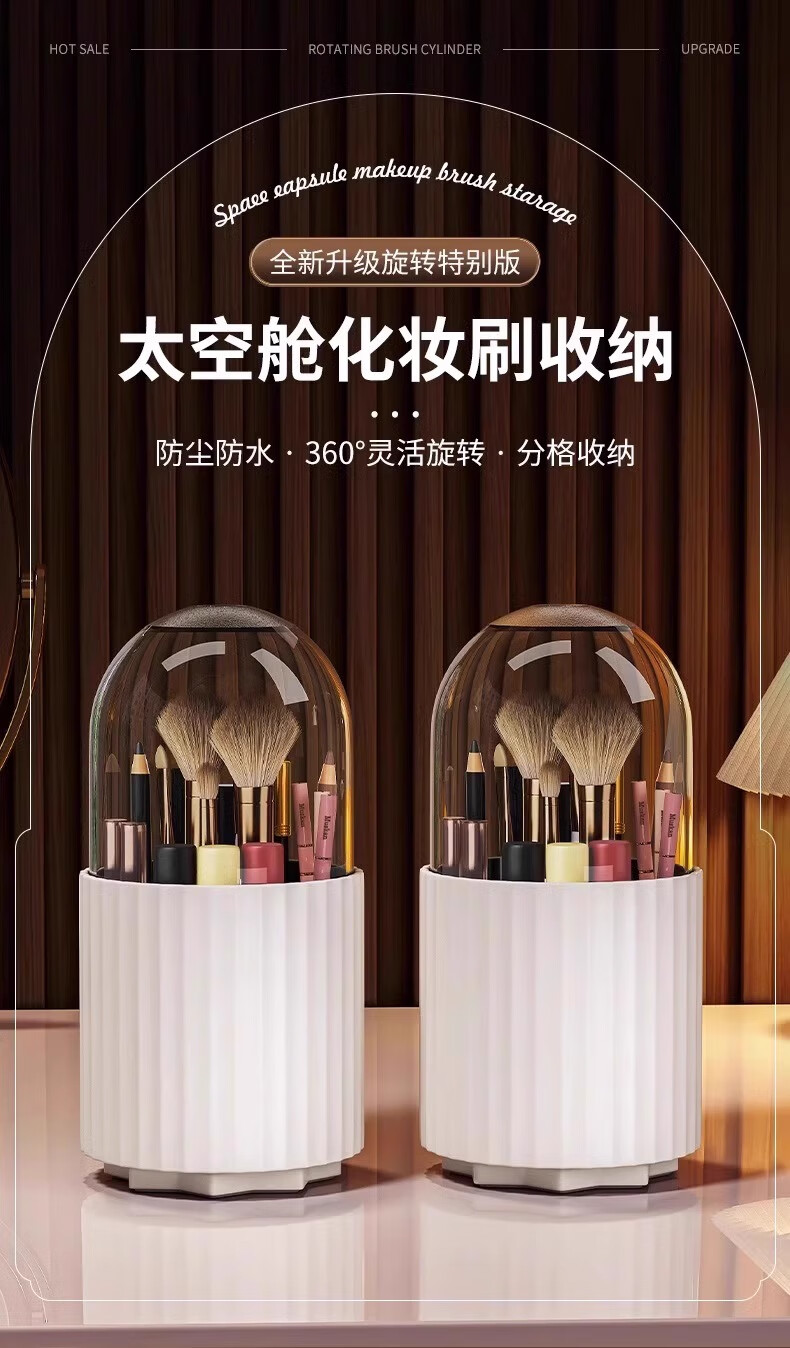 坤奉化妆品收纳盒防尘桌面化妆刷收纳筒口红粉扑刷子梳妆台无尘置物架 白色【11*22cm】带防尘盖