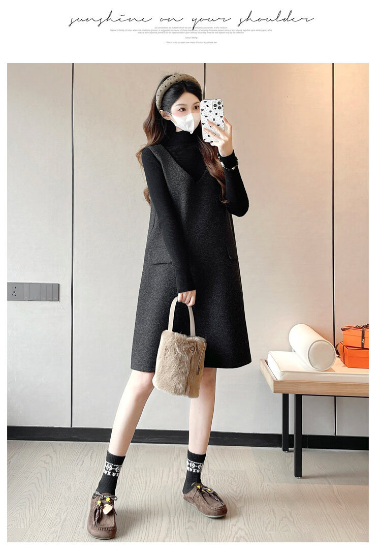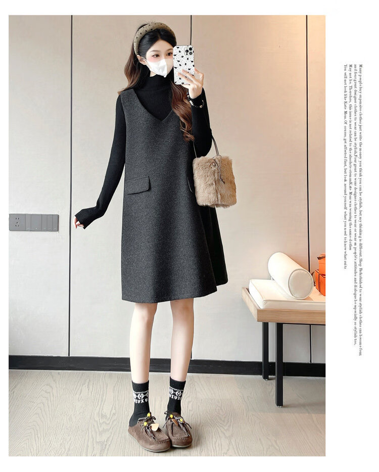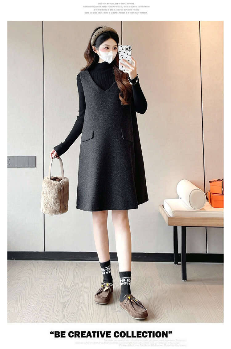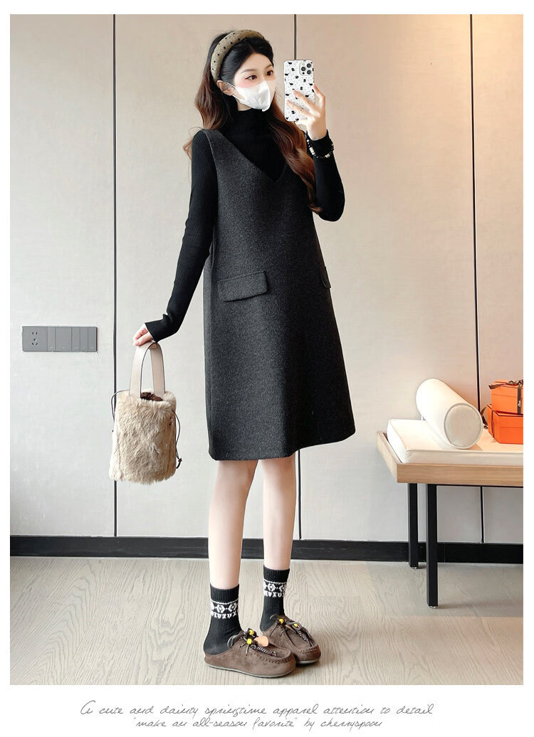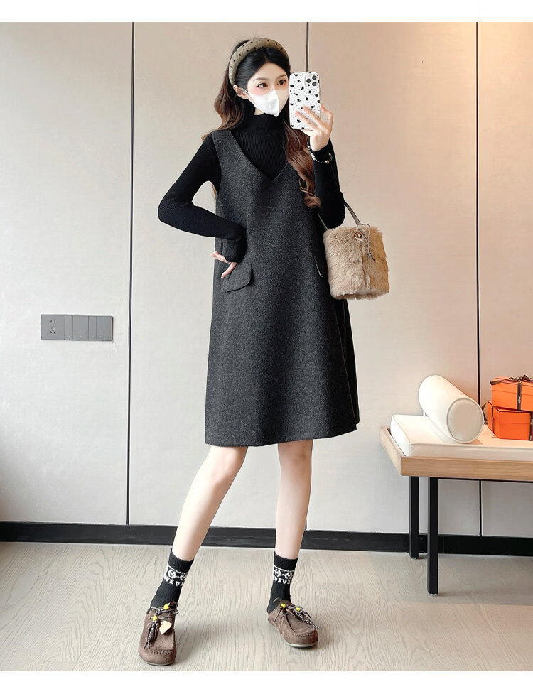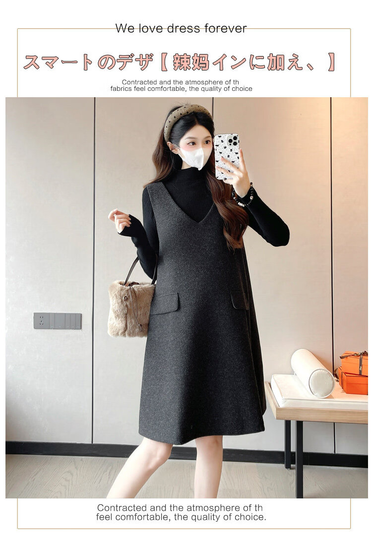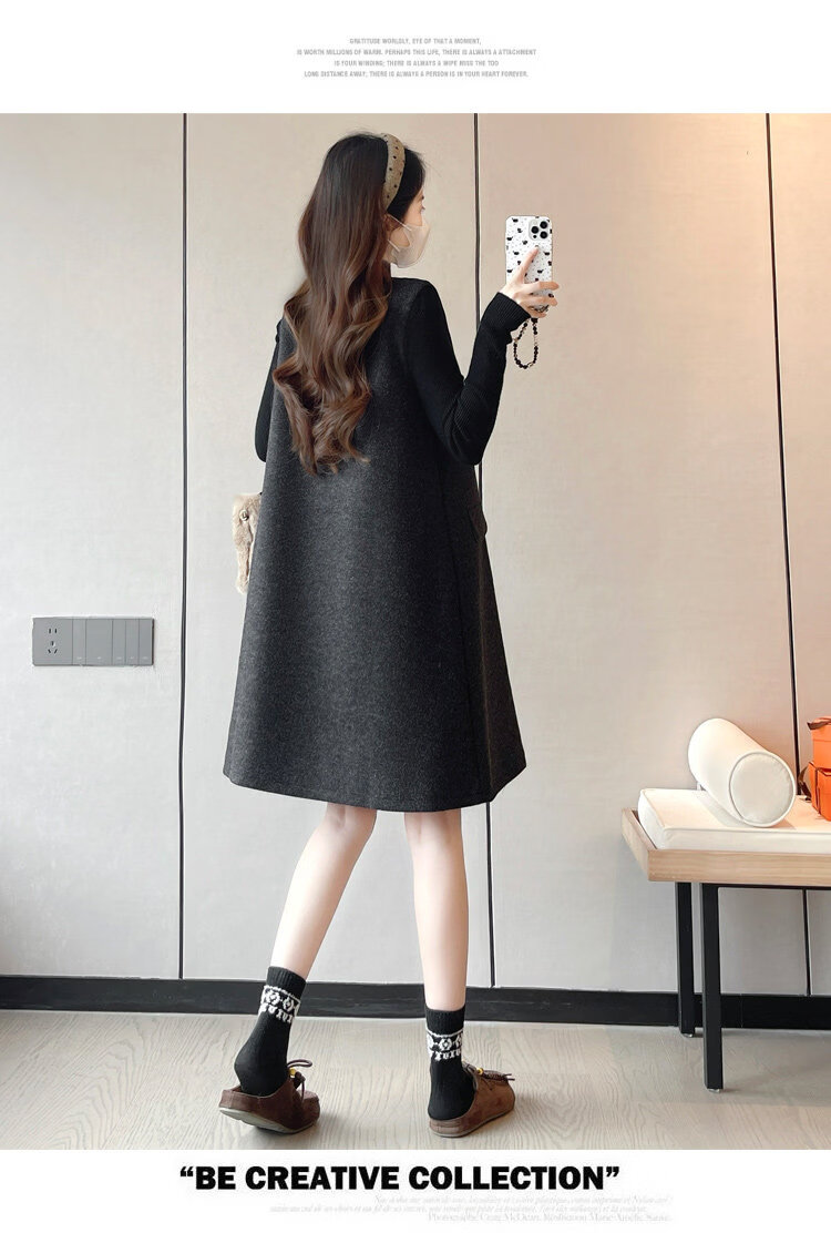 Fickan孕妇冬装套装连衣裙孕妈穿搭洋气宽松外出秋冬毛呢裙怀孕穿的 深灰色背心裙 M