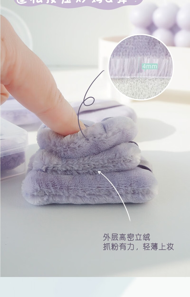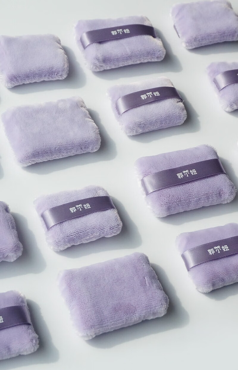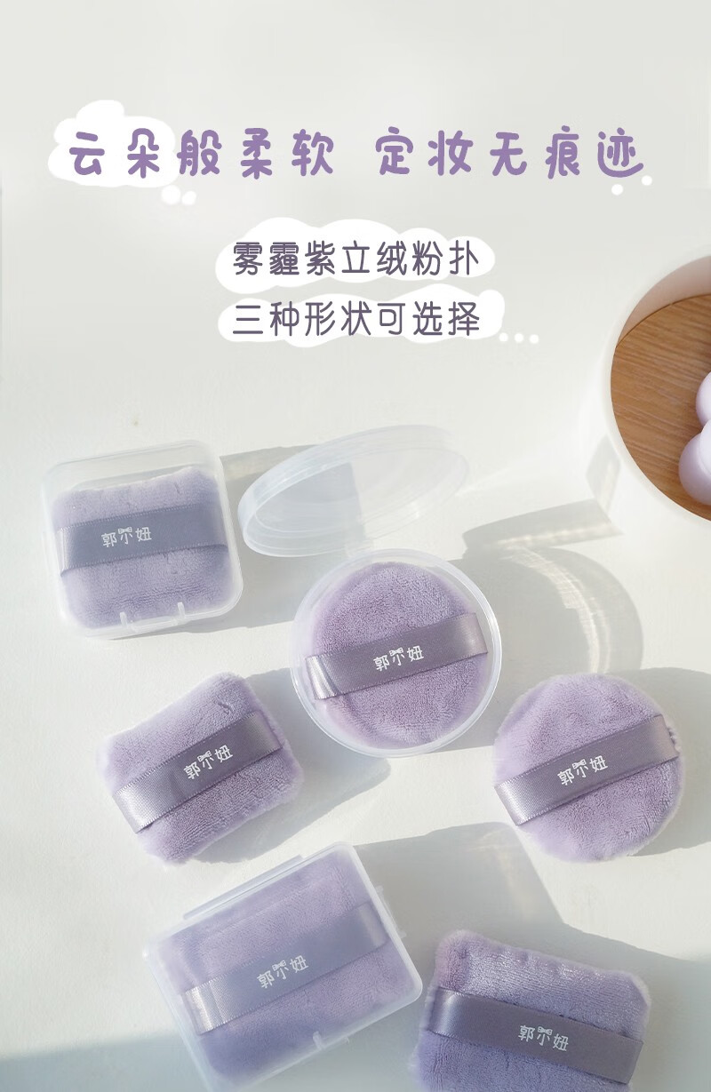 GUOXIAONIU郭小妞雾霾紫立绒散粉扑蜜粉粉扑定妆植绒柔软毛绒大绒面干粉饼 正方形立绒散粉扑 1枚 盒装