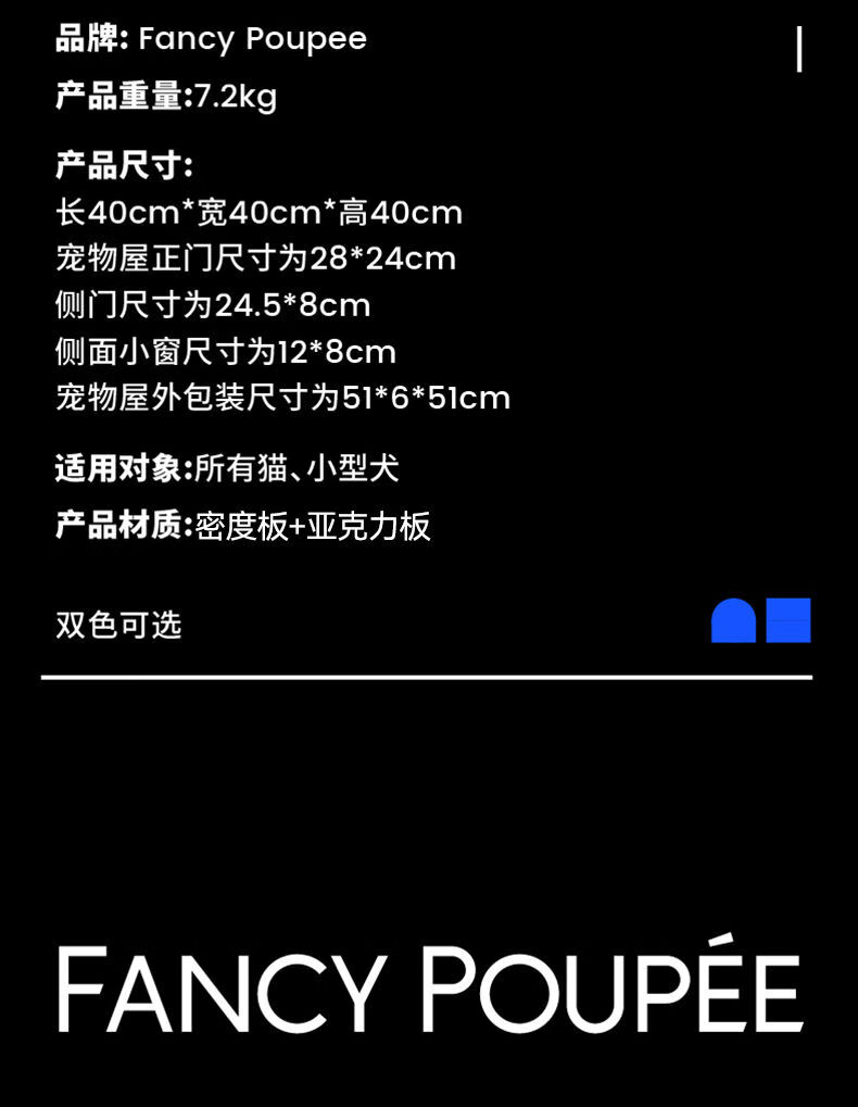 映棠猫窝封闭安全感冬季保暖猫屋流浪猫窝狗窝床头柜 加厚海绵垫克莱因蓝 404040款所有猫和小犬适用