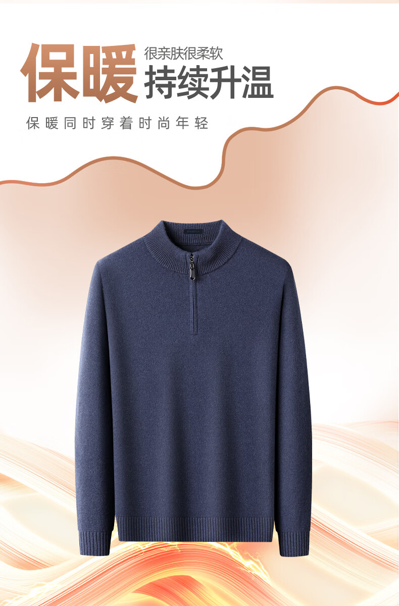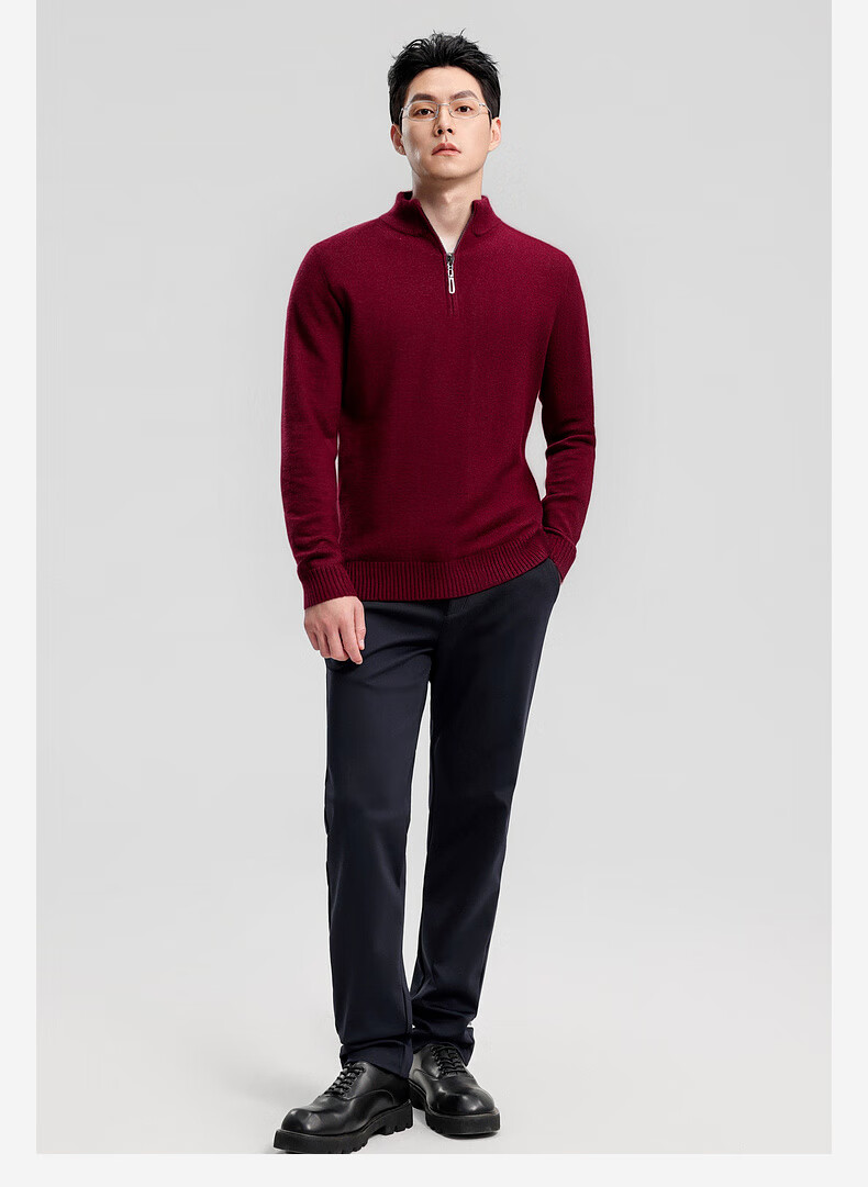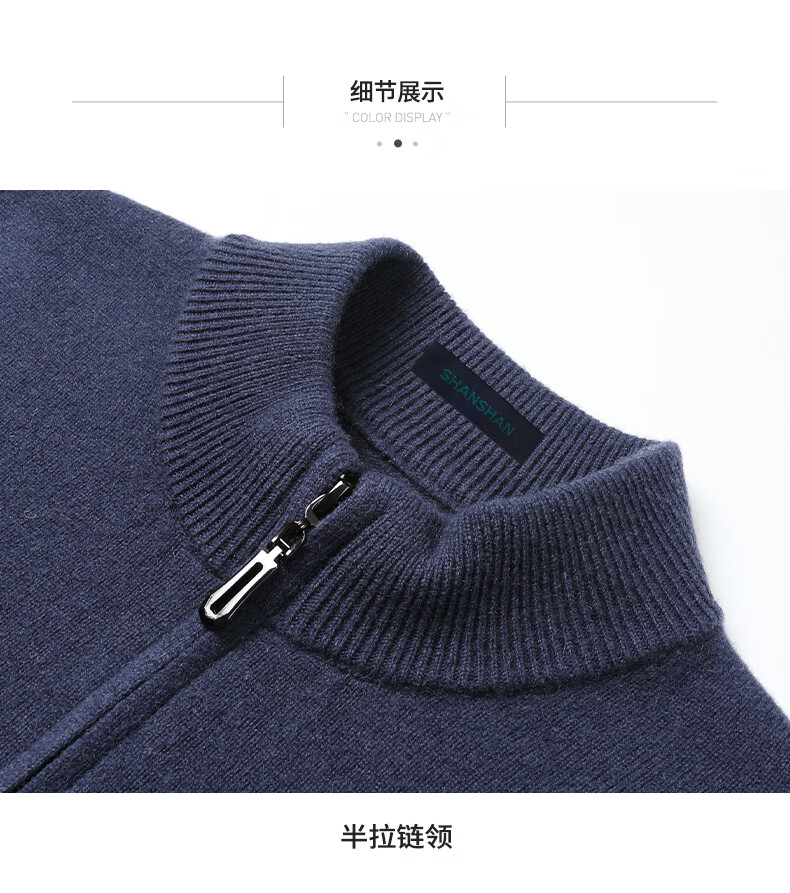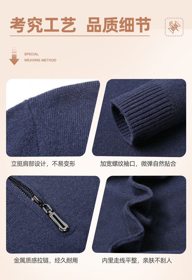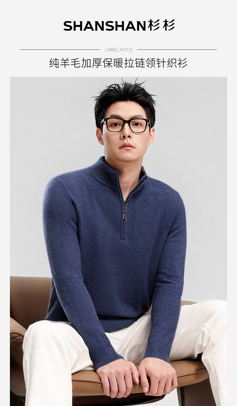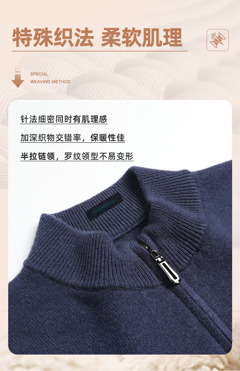 SHANSHAN杉杉纯羊毛衫男秋冬新款加厚保暖毛衣中青年打底红品针织衫拉链领 深灰色 XL /180