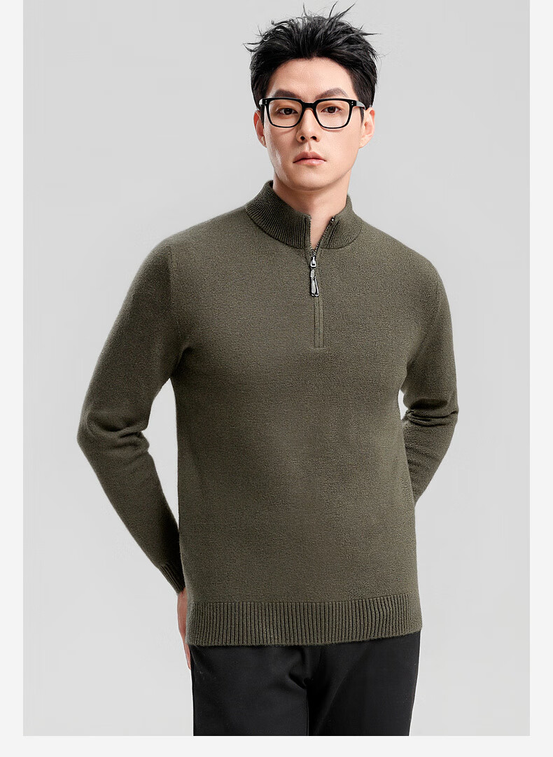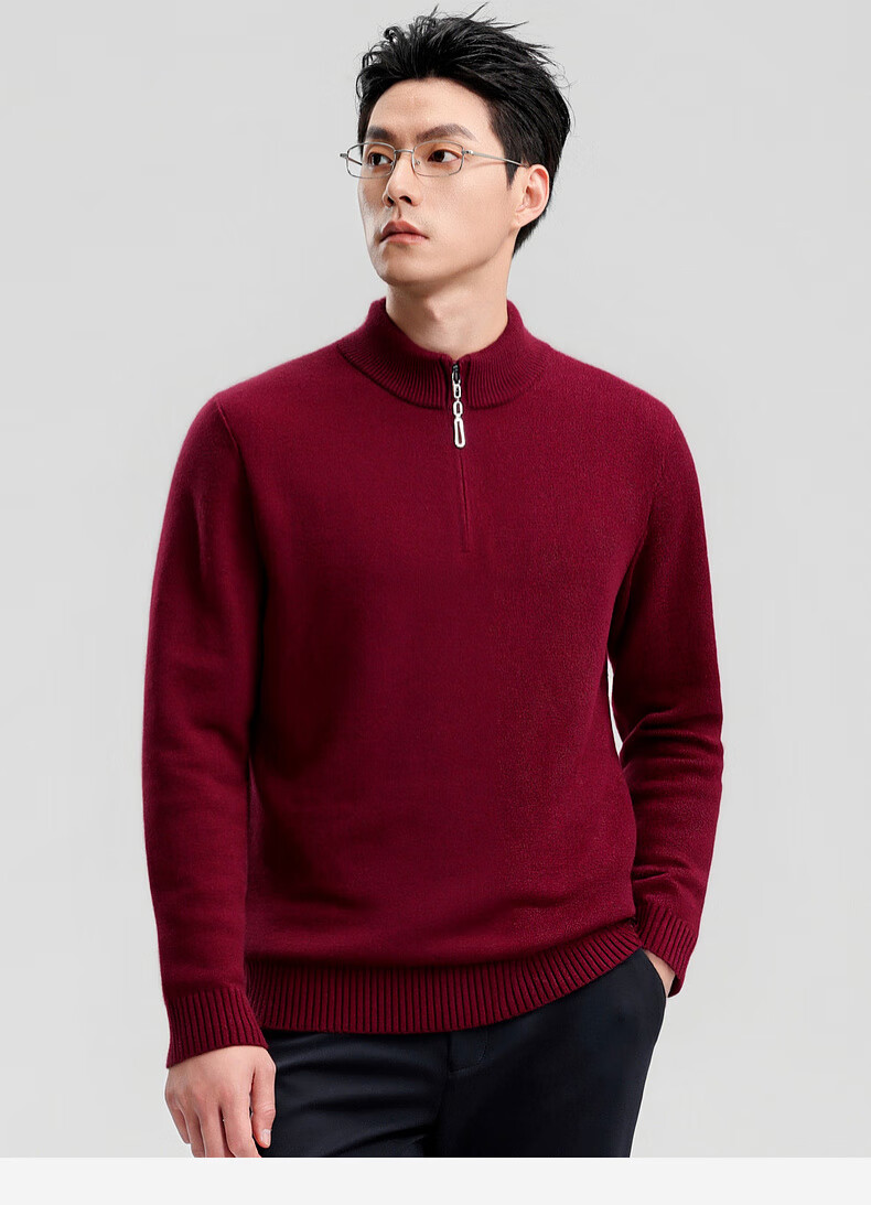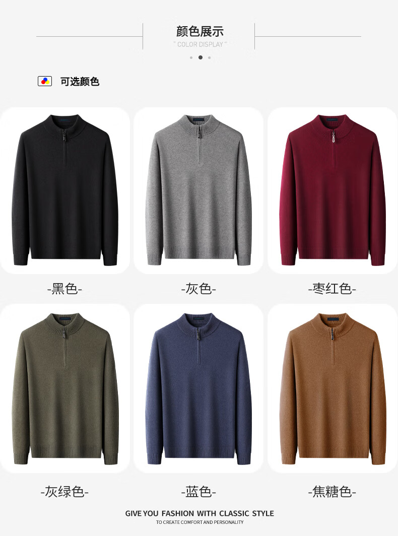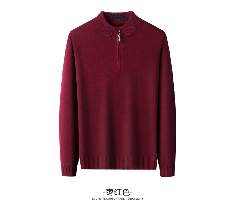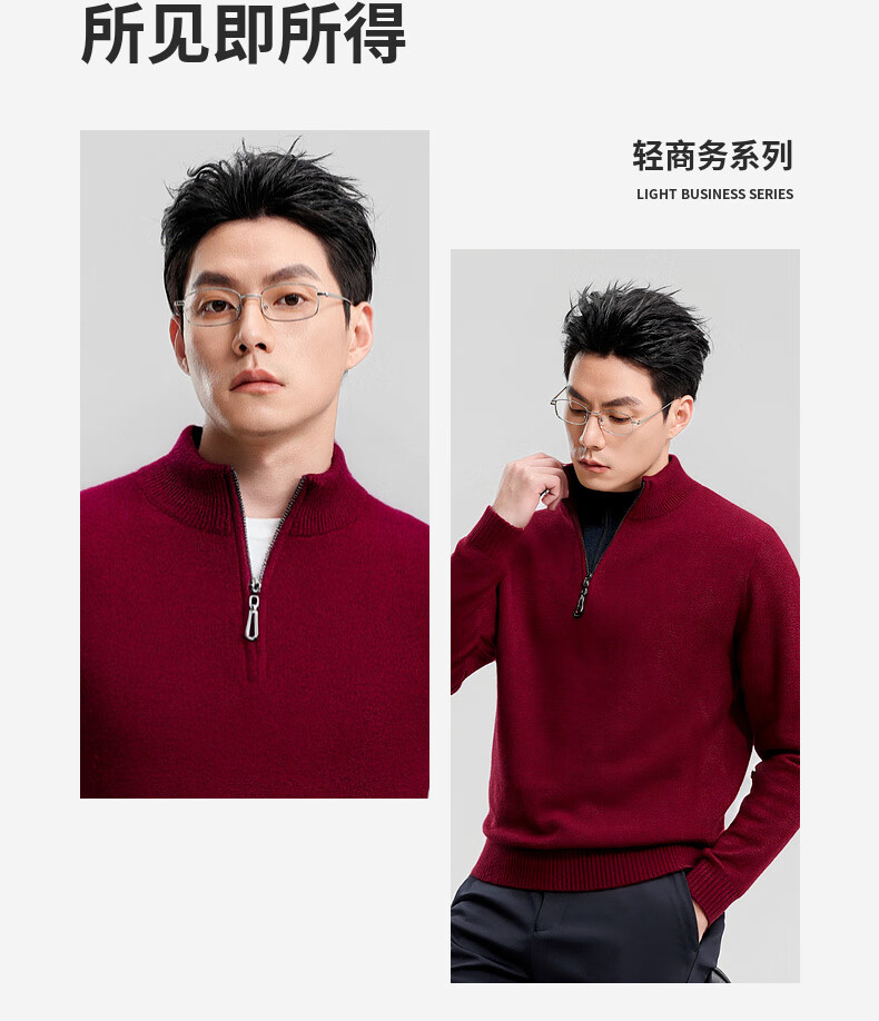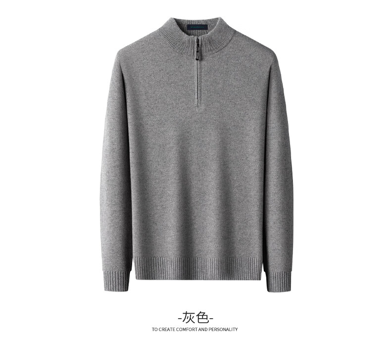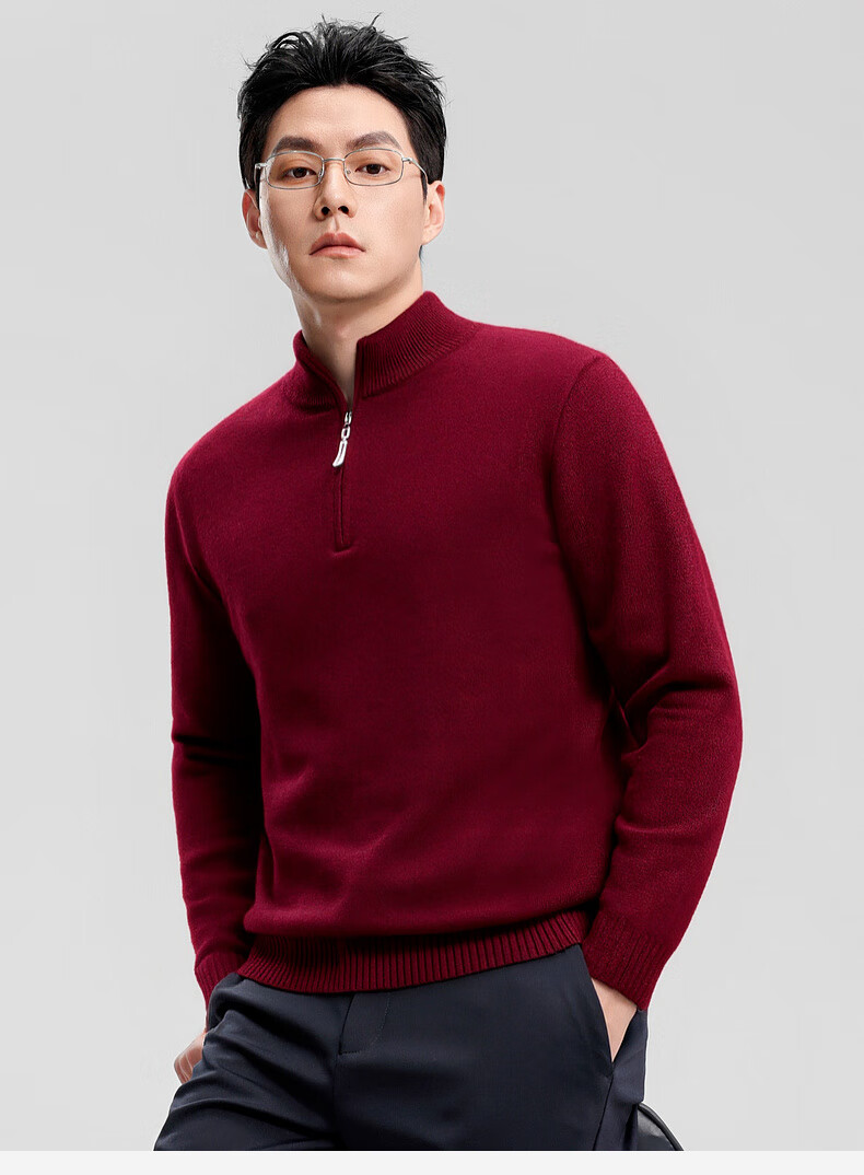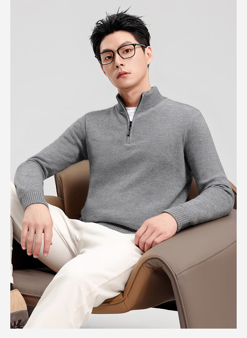SHANSHAN杉杉纯羊毛衫男秋冬新款加厚保暖毛衣中青年打底红品针织衫拉链领 深灰色 XL /180