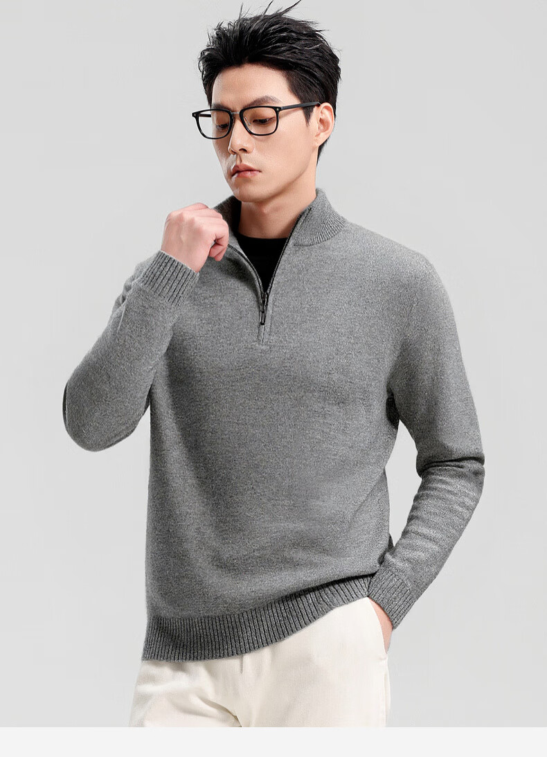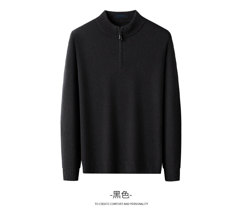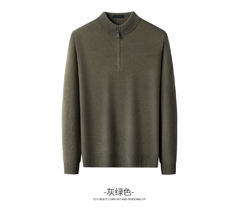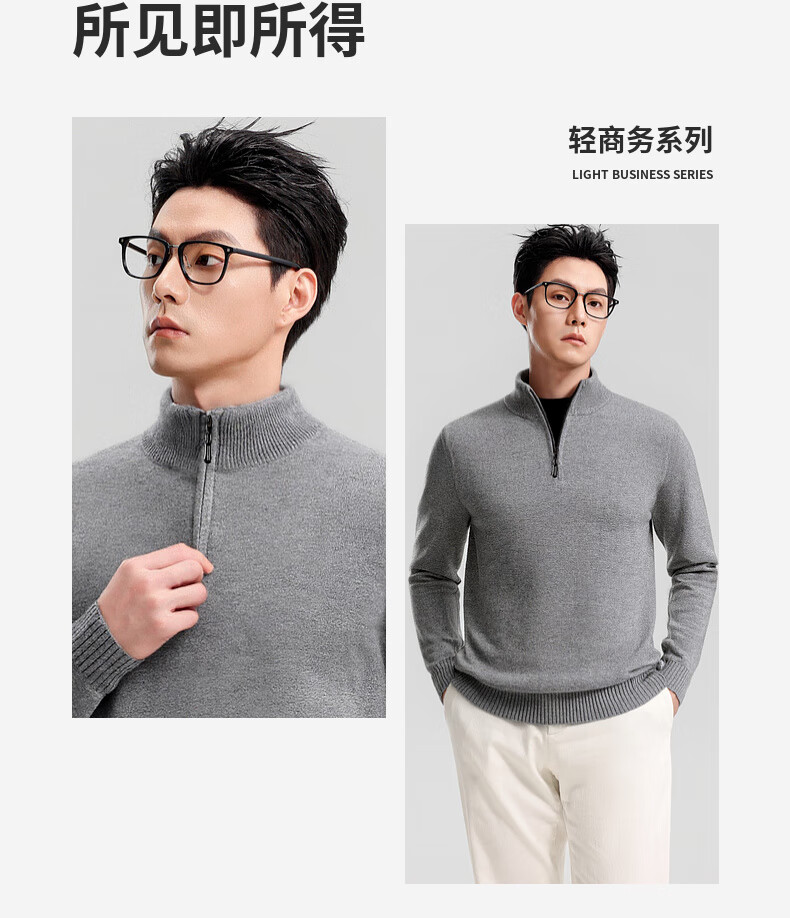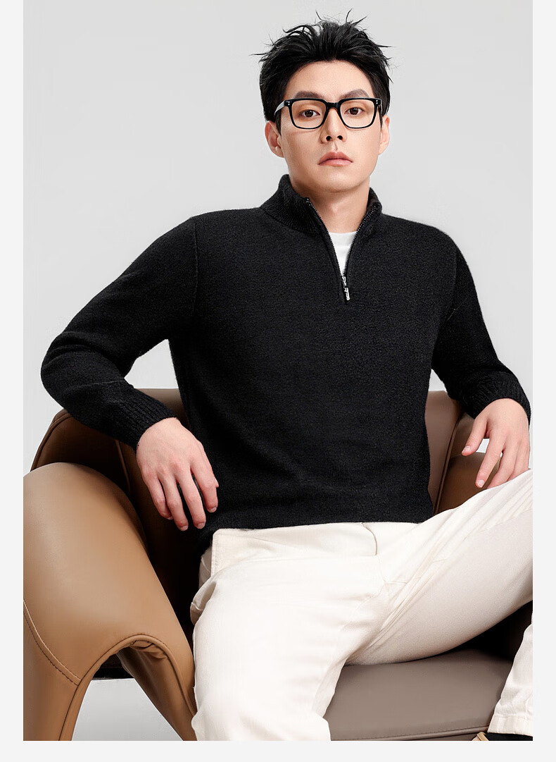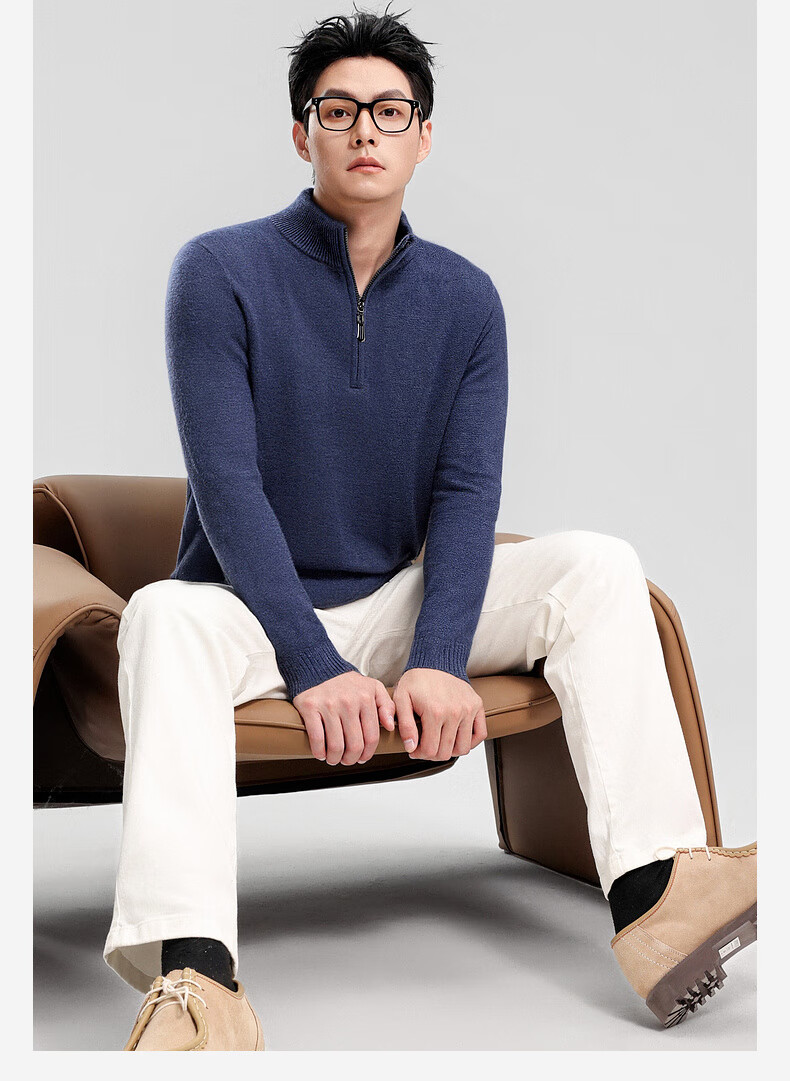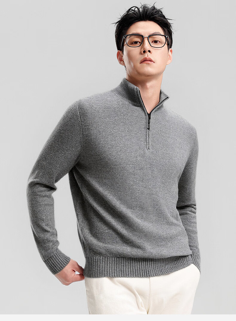 SHANSHAN杉杉纯羊毛衫男秋冬新款加厚保暖毛衣中青年打底红品针织衫拉链领 深灰色 XL /180