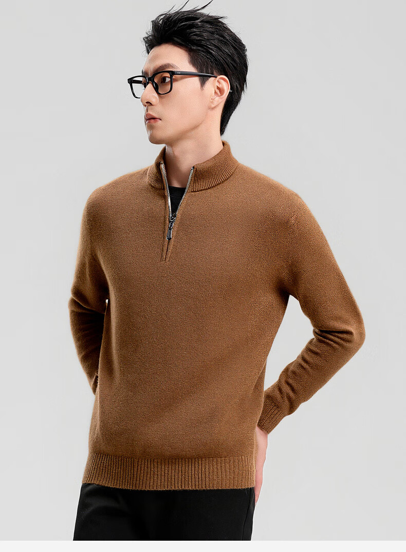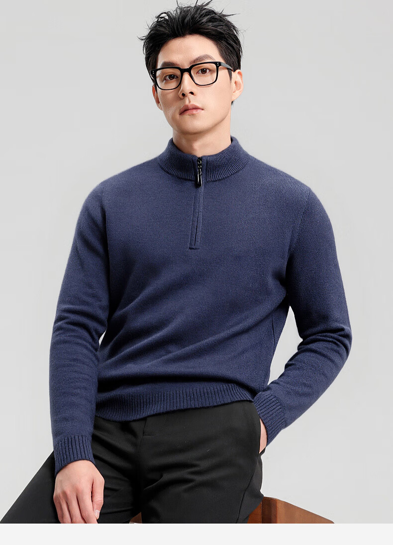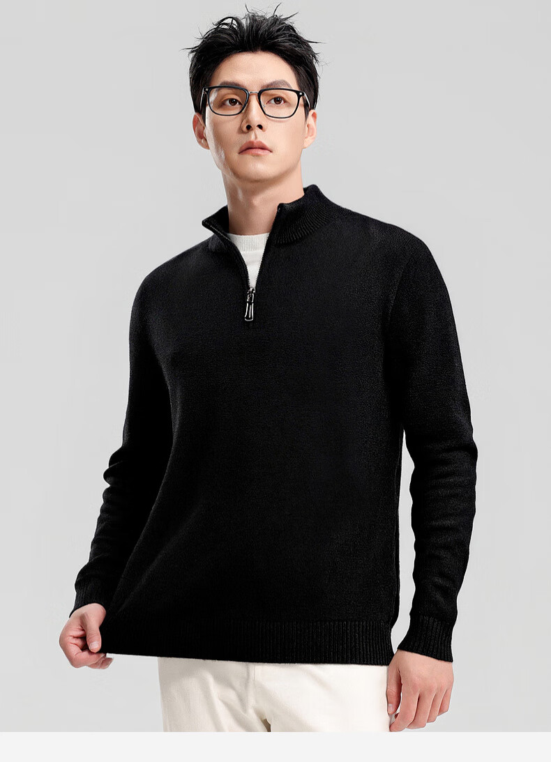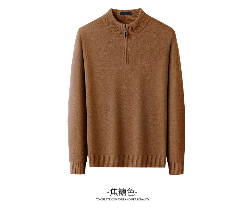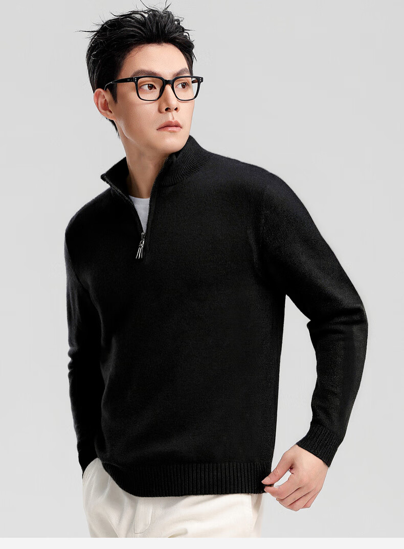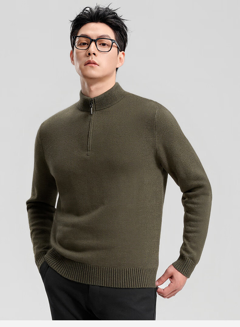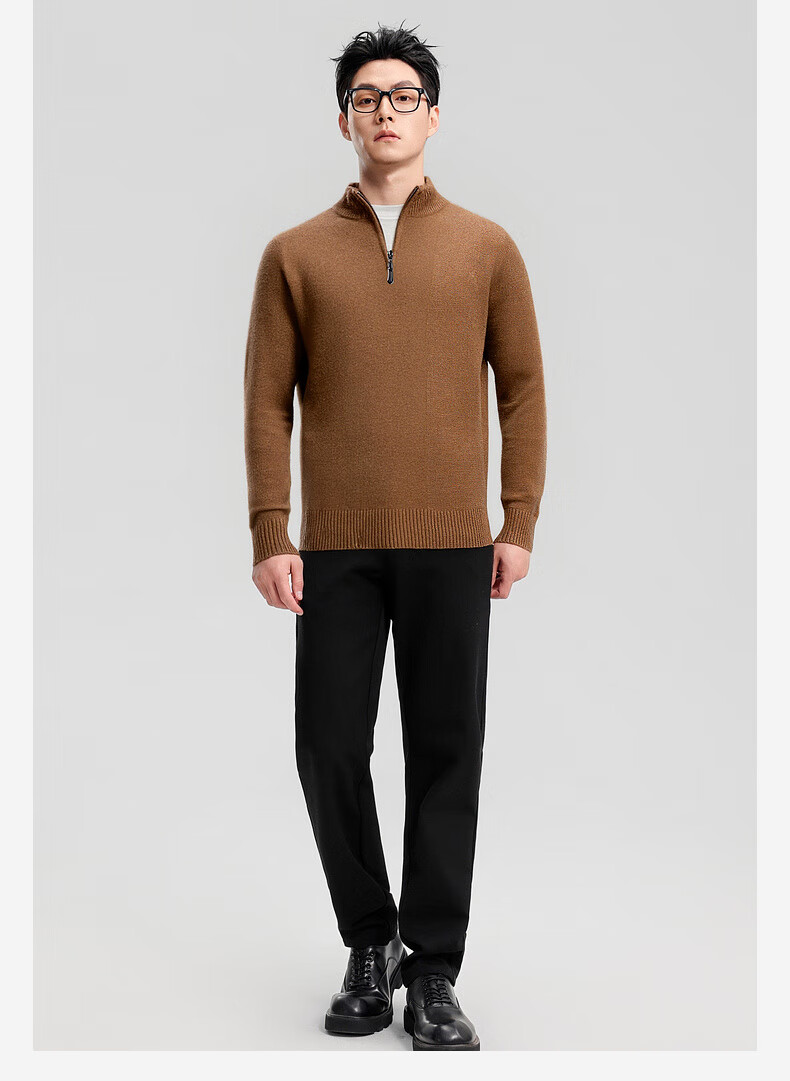 SHANSHAN杉杉纯羊毛衫男秋冬新款加厚保暖毛衣中青年打底红品针织衫拉链领 深灰色 XL /180