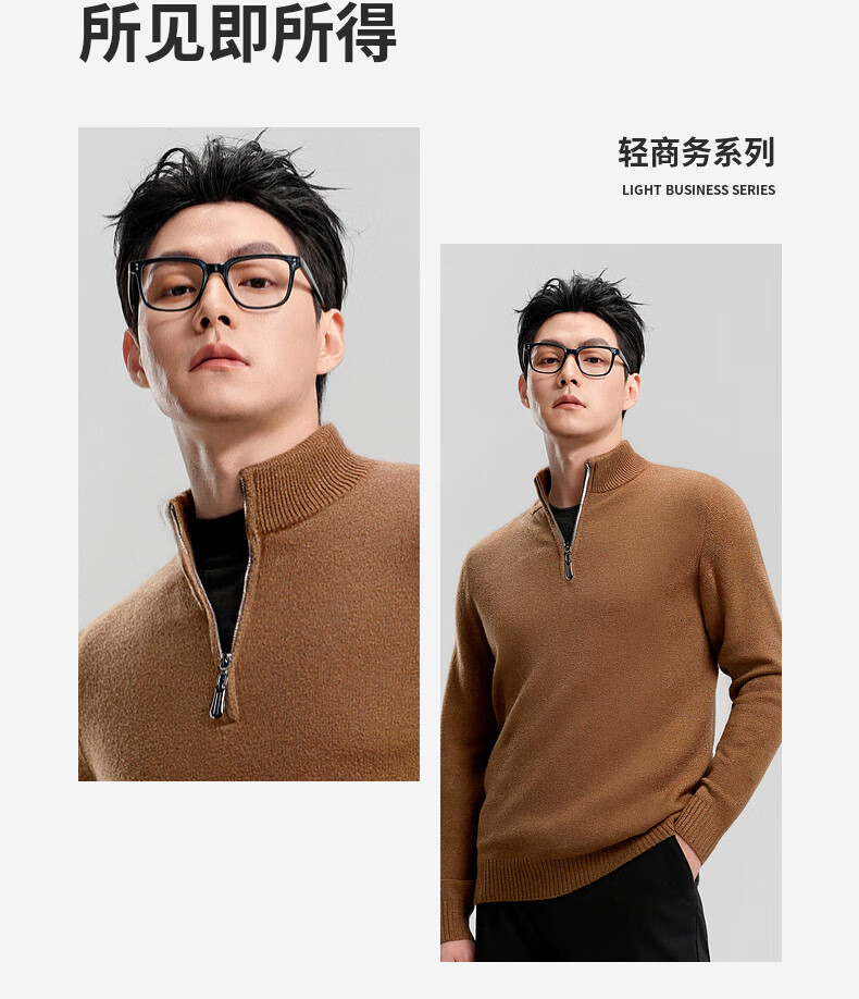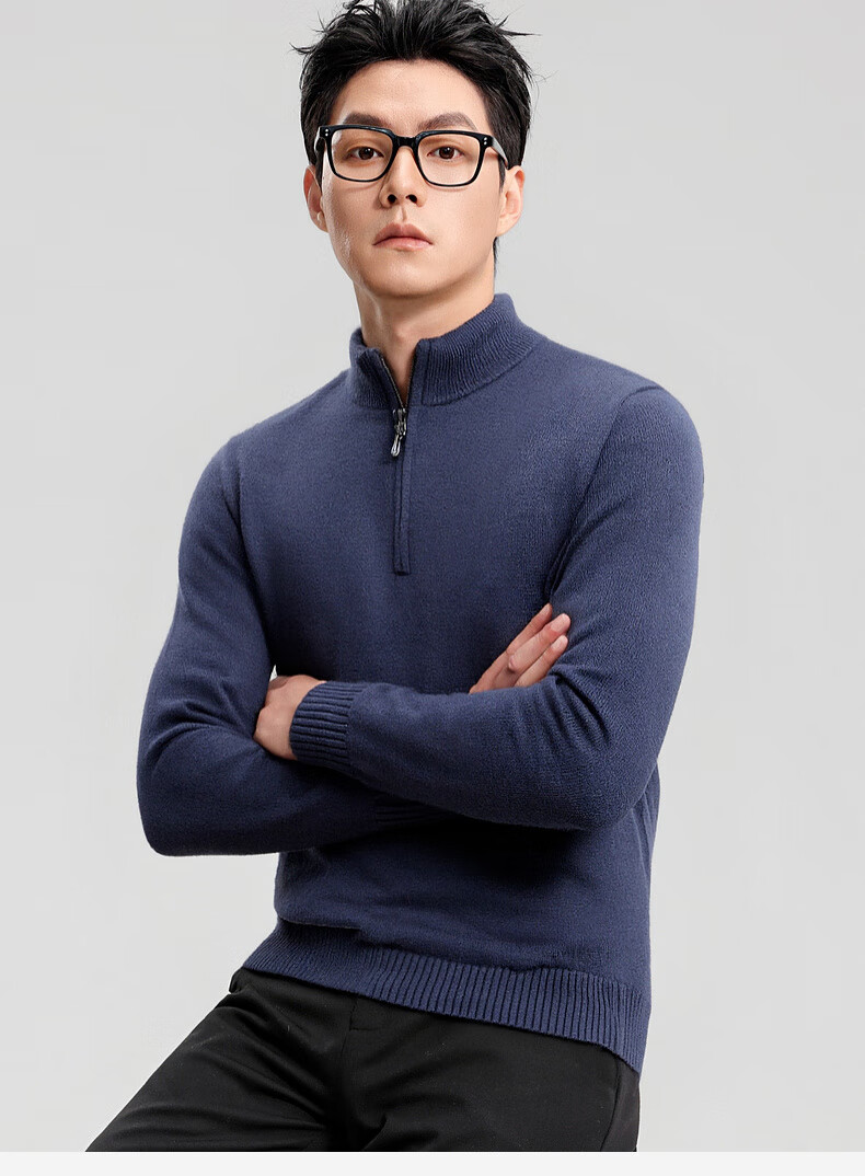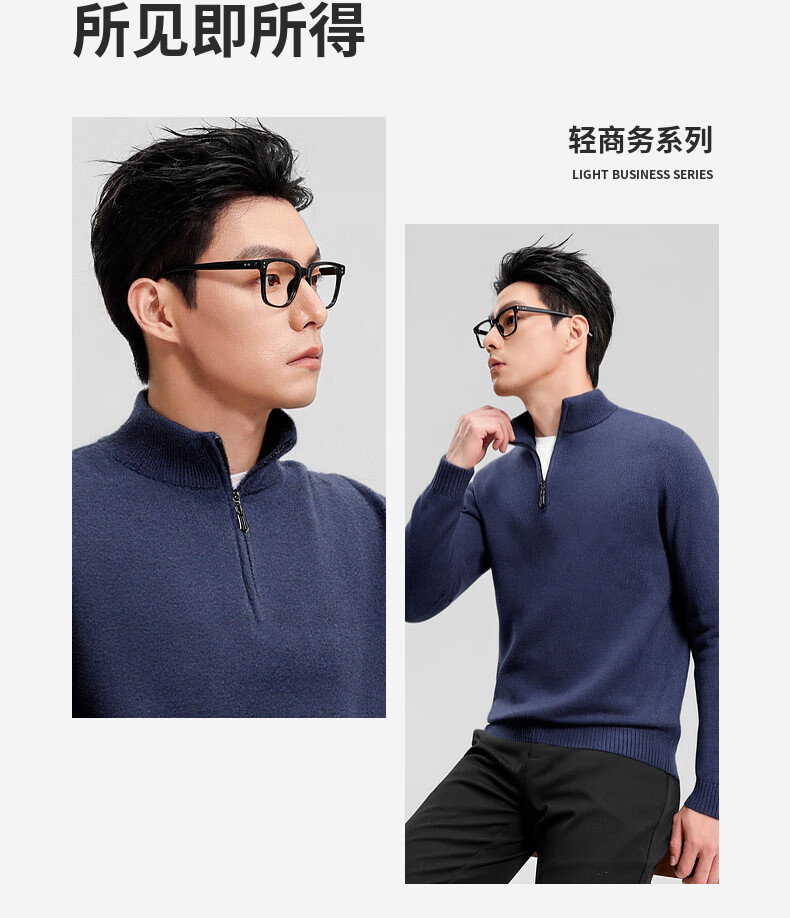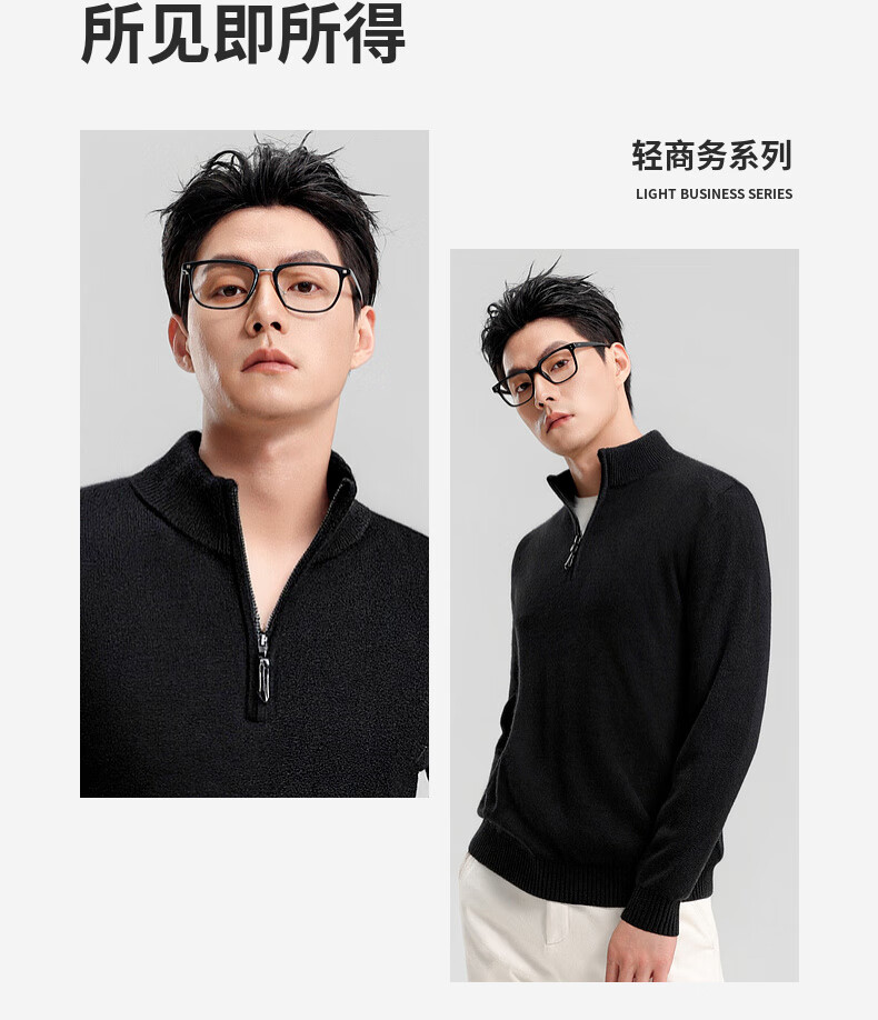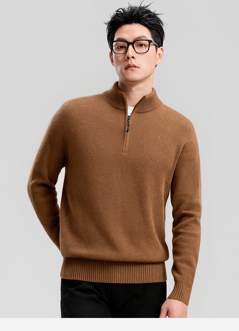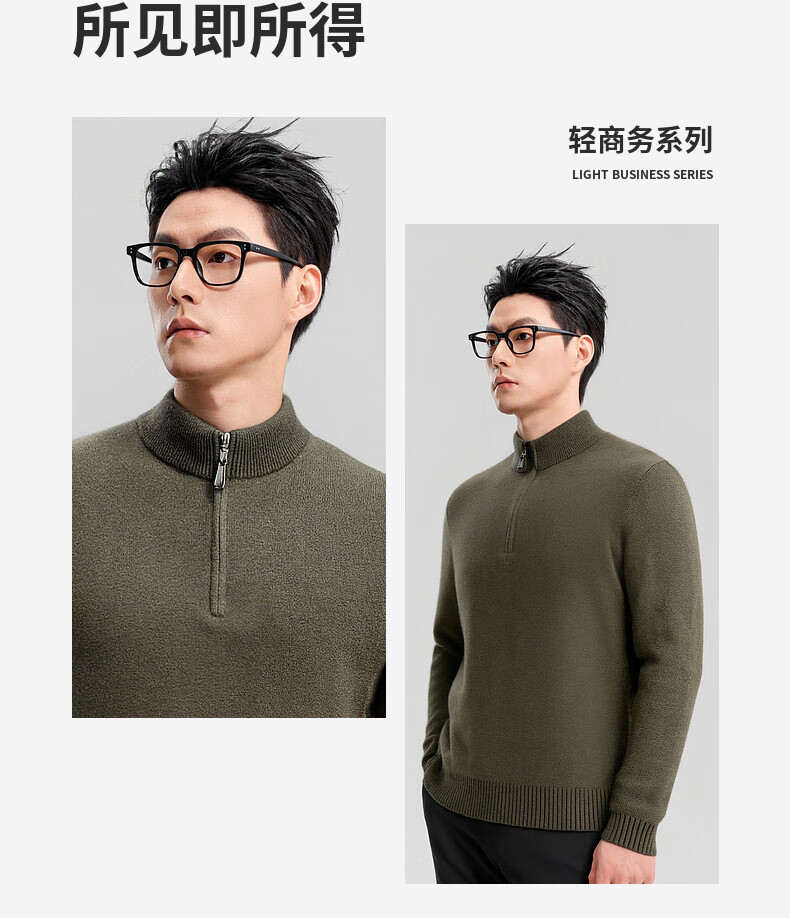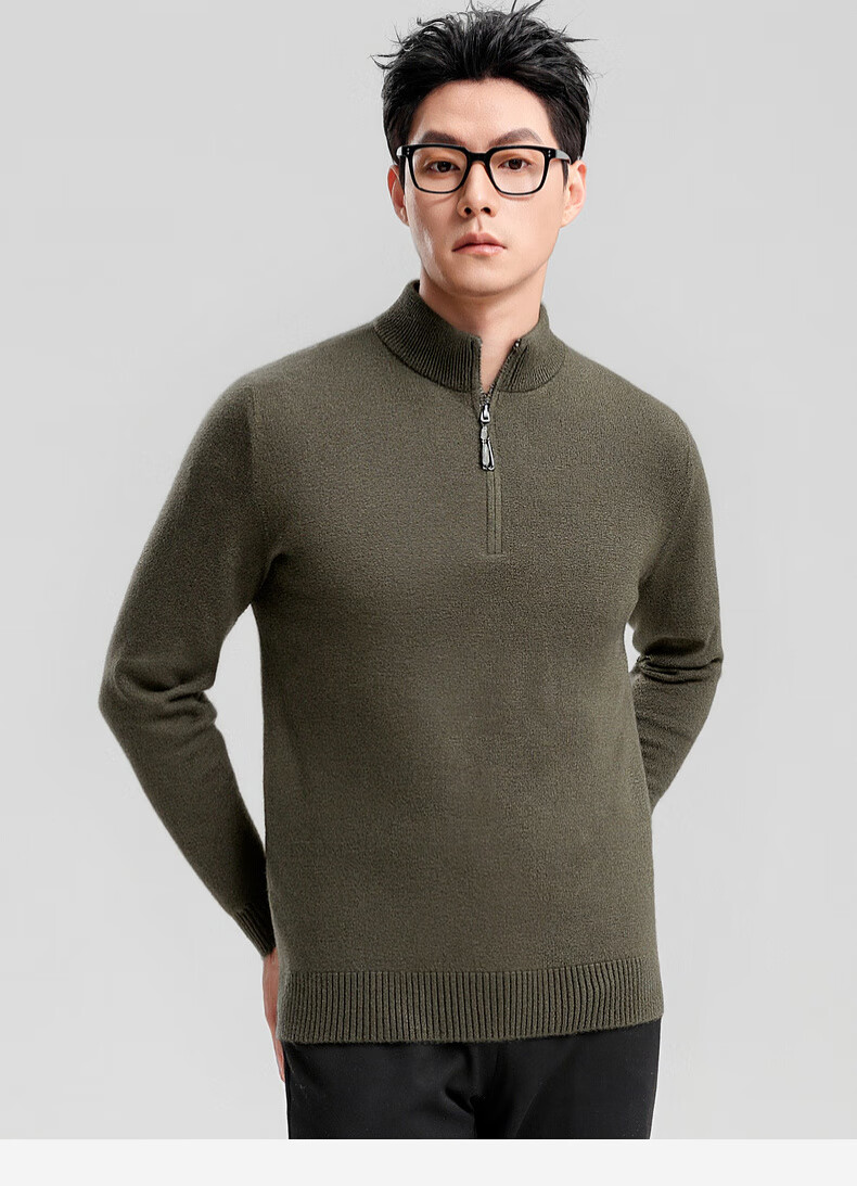 SHANSHAN杉杉纯羊毛衫男秋冬新款加厚保暖毛衣中青年打底红品针织衫拉链领 深灰色 XL /180