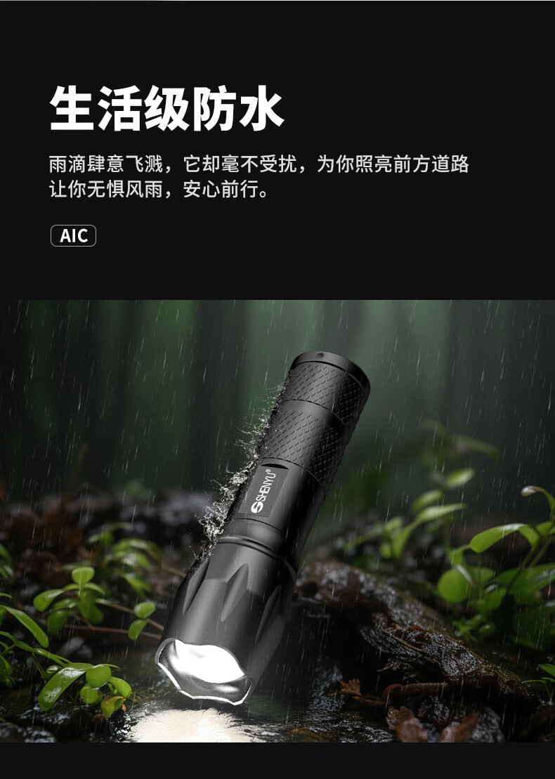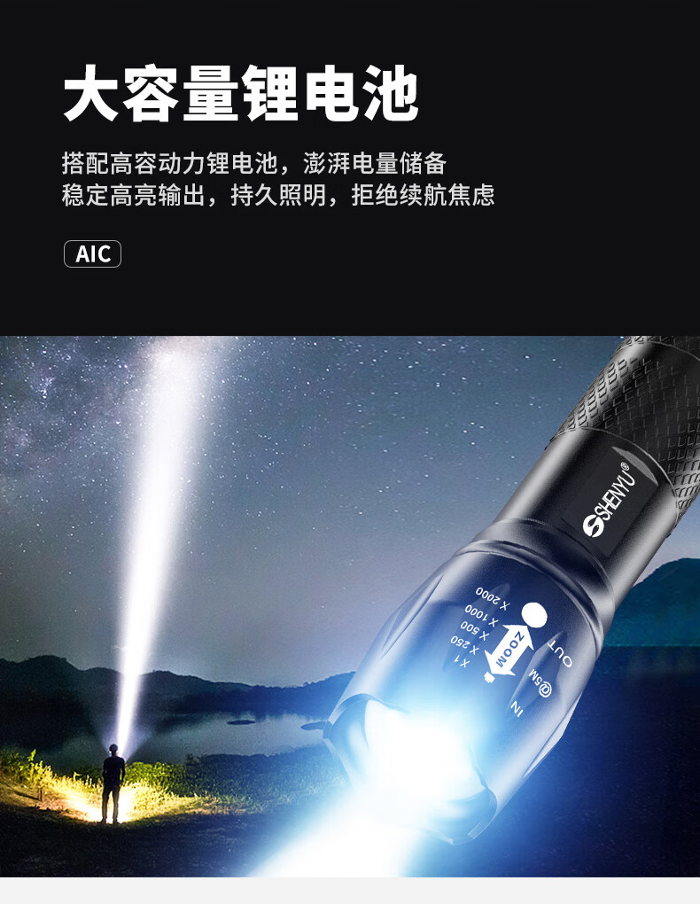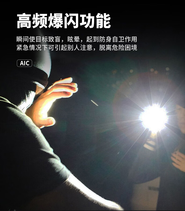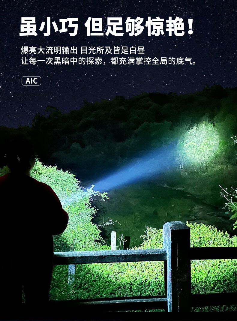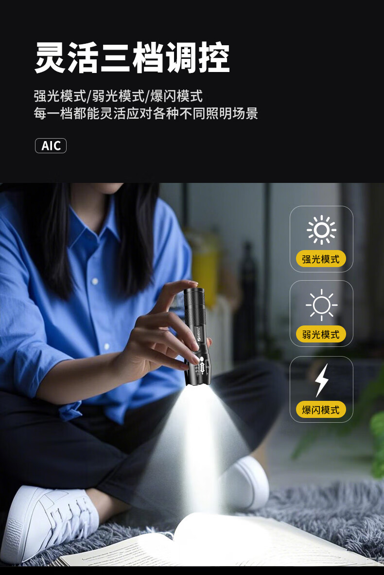 Aic手电筒强光LED充电远射超亮户外小型迷你便携工作灯家用长续航 高亮【多档变焦LED可充电】