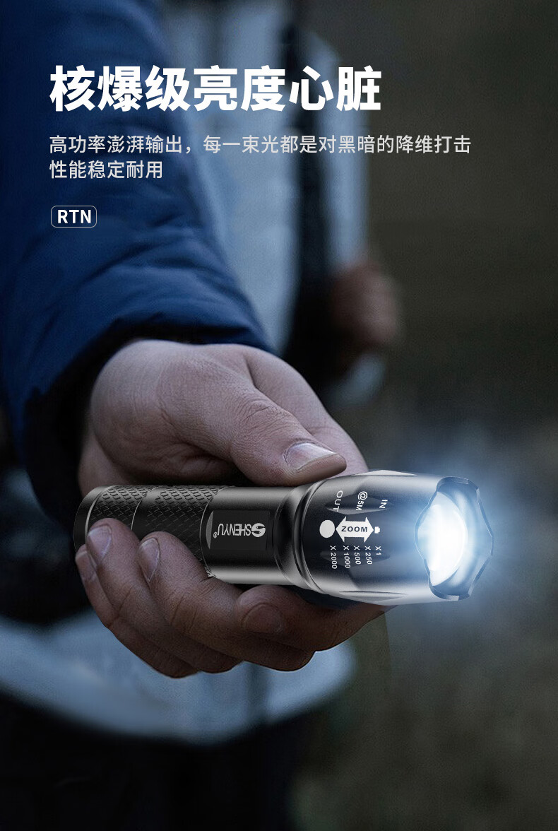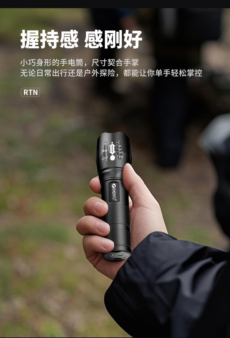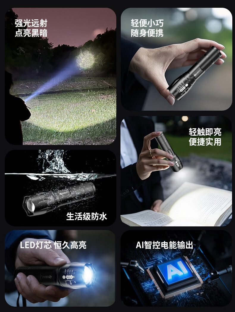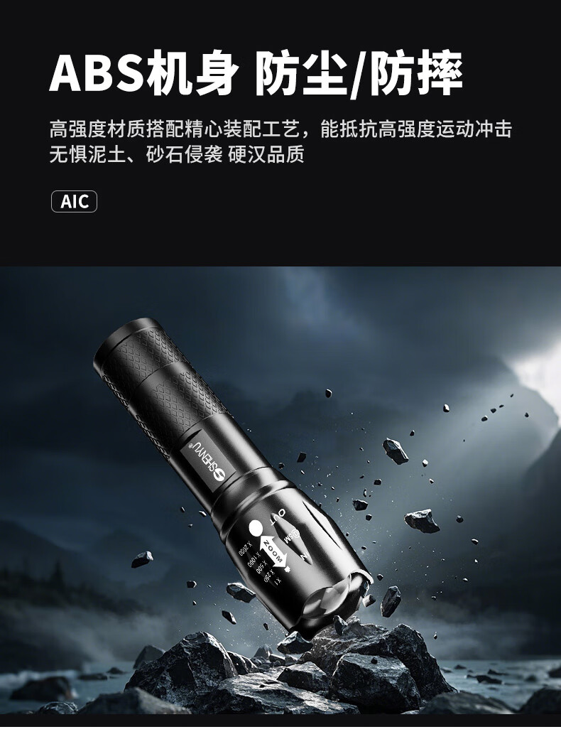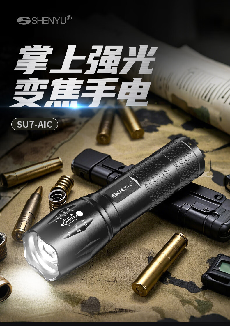 Aic手电筒强光LED充电远射超亮户外小型迷你便携工作灯家用长续航 高亮【多档变焦LED可充电】