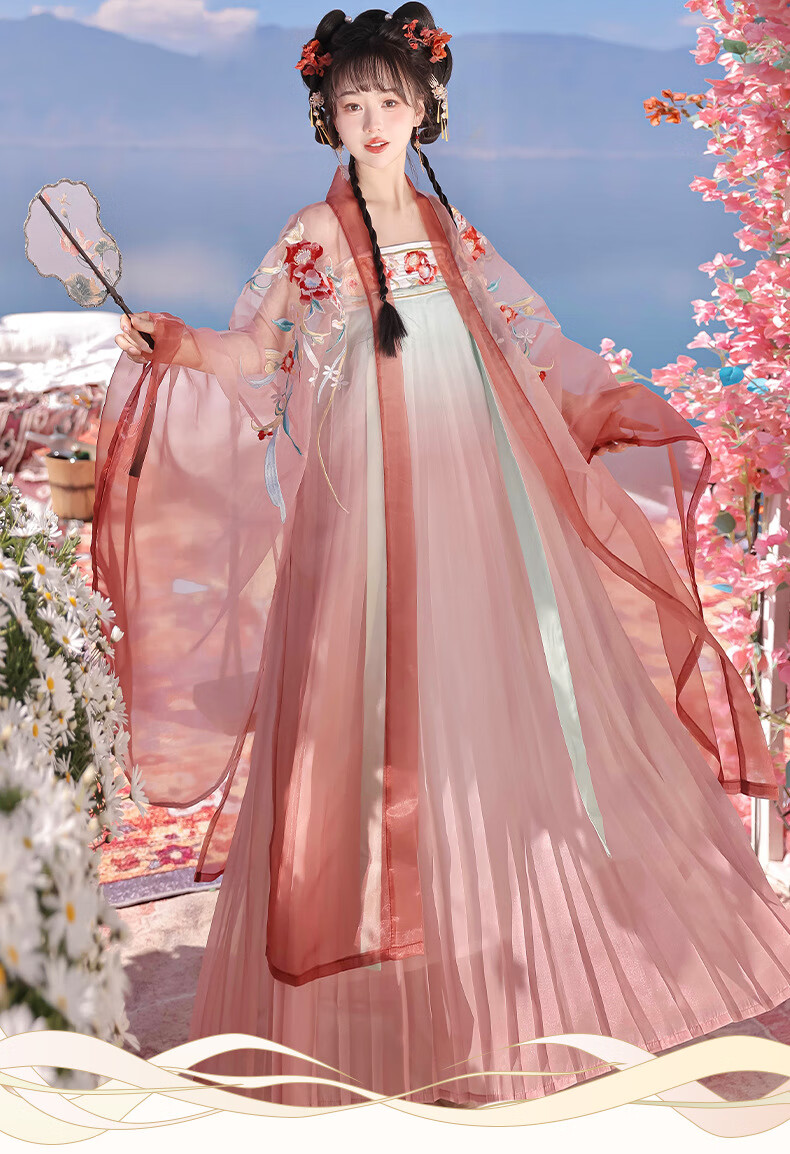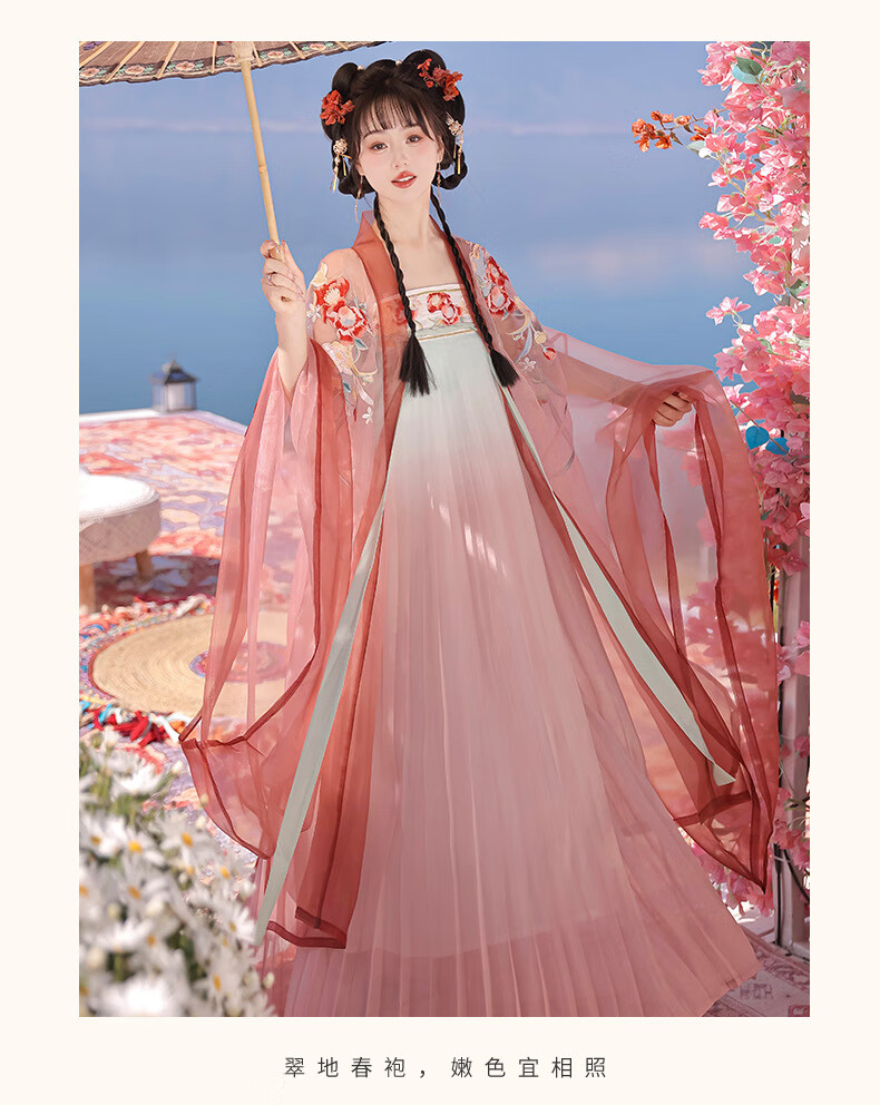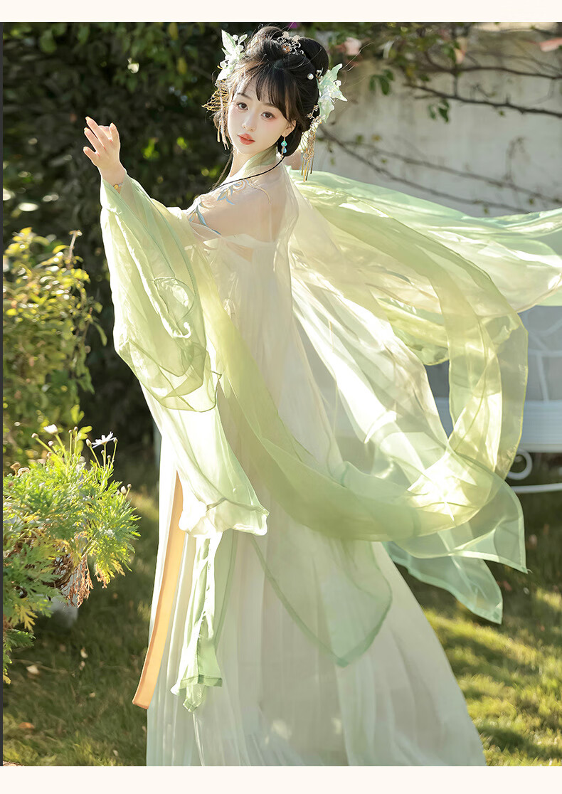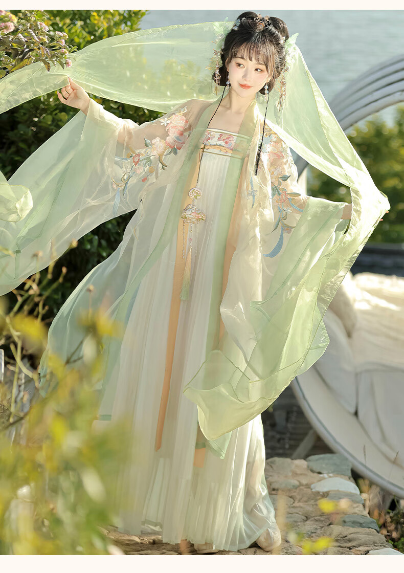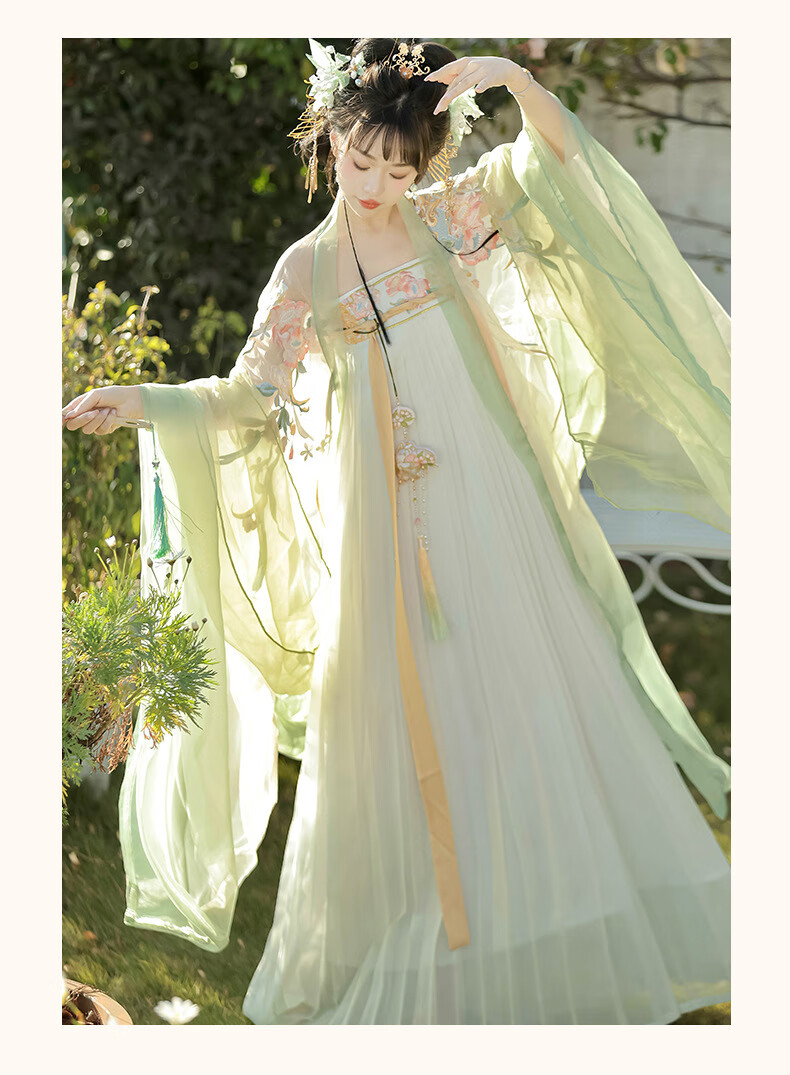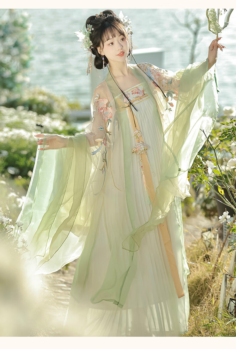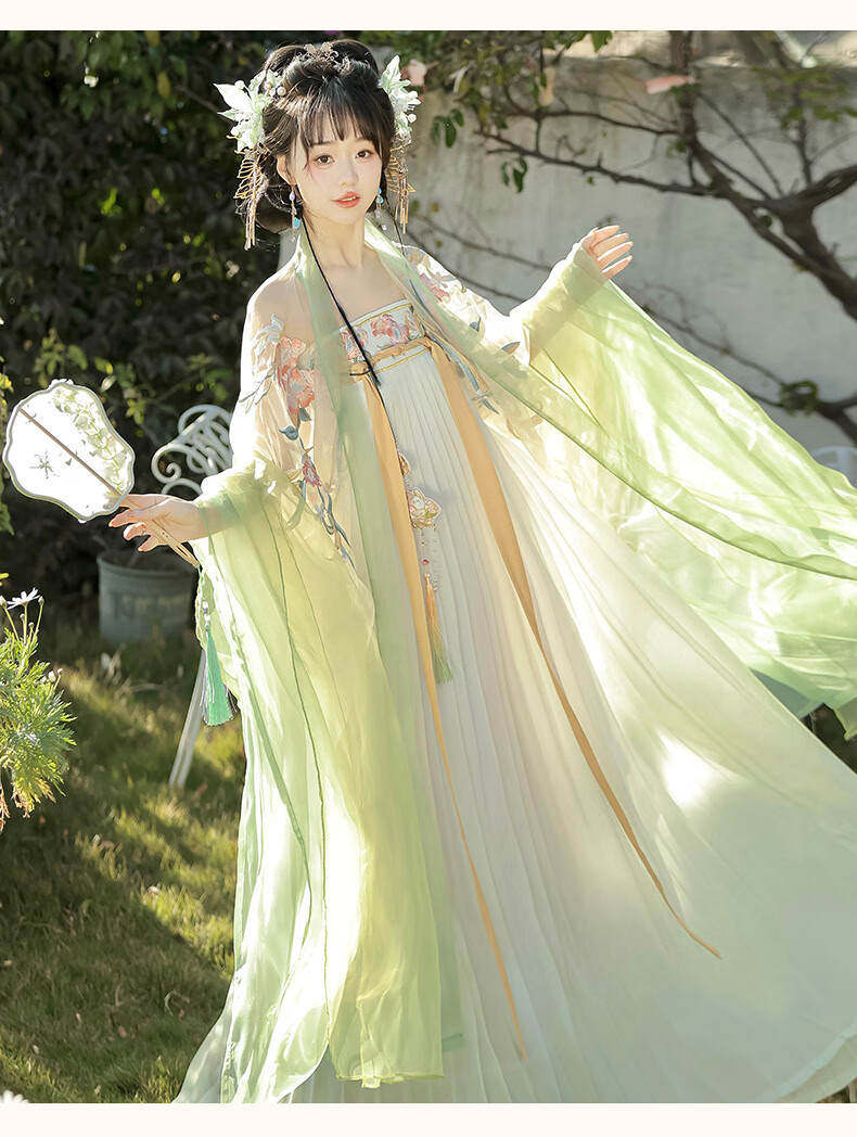 画枕眠【奉花行】唐制成人重工刺绣诃子裙齐胸汉服女改良仙气套装夏秋款 【奉花行】绿色全套 S