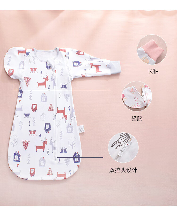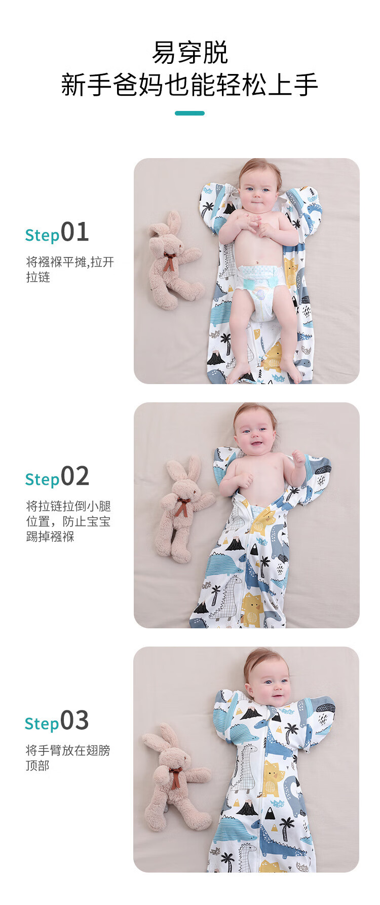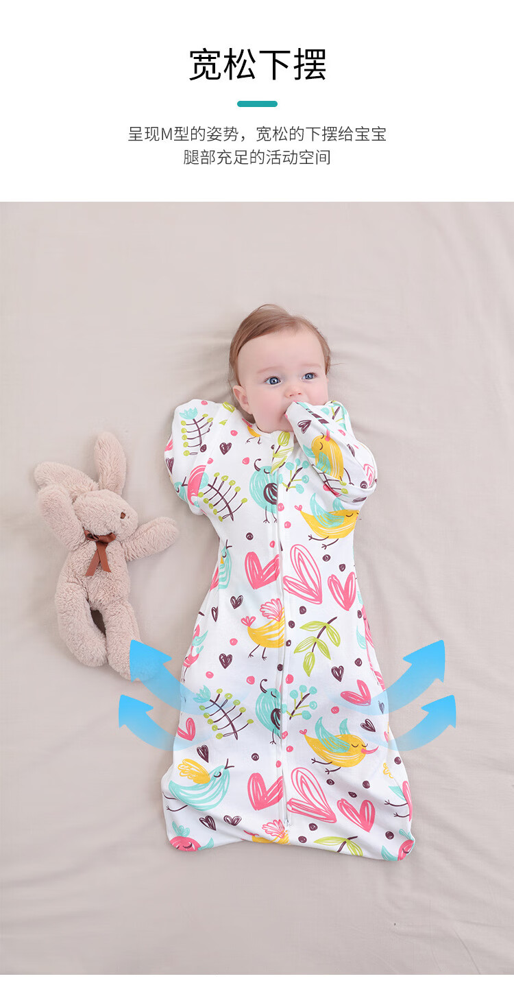 菲菈多婴儿睡袋襁褓投降式儿童睡袋宝宝防惊跳抱被包巾仿生两用婴儿用品 单层四季款-小芋兔 L码