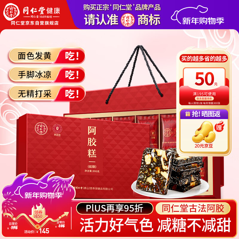同仁堂阿胶礼盒低糖阿胶糕300g营养滋补品气血女送长辈高端食品年货礼盒