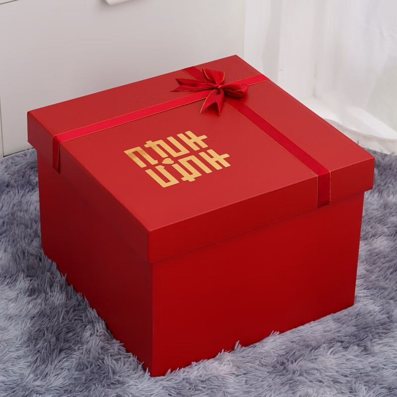 红色结婚礼物盒超大号礼品盒空盒新婚衣服鞋子包装盒订婚求婚礼盒 礼盒都送提绳 25*25*25喜字胶贴金色丝带