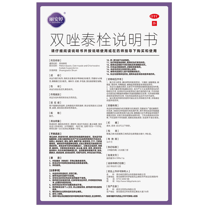 丽安婷 双唑泰栓片9粒含甲硝唑克霉唑栓霉菌性阴道炎外阴瘙痒私处止痒妇科炎症专用药细菌性阴道炎栓宫颈糜烂