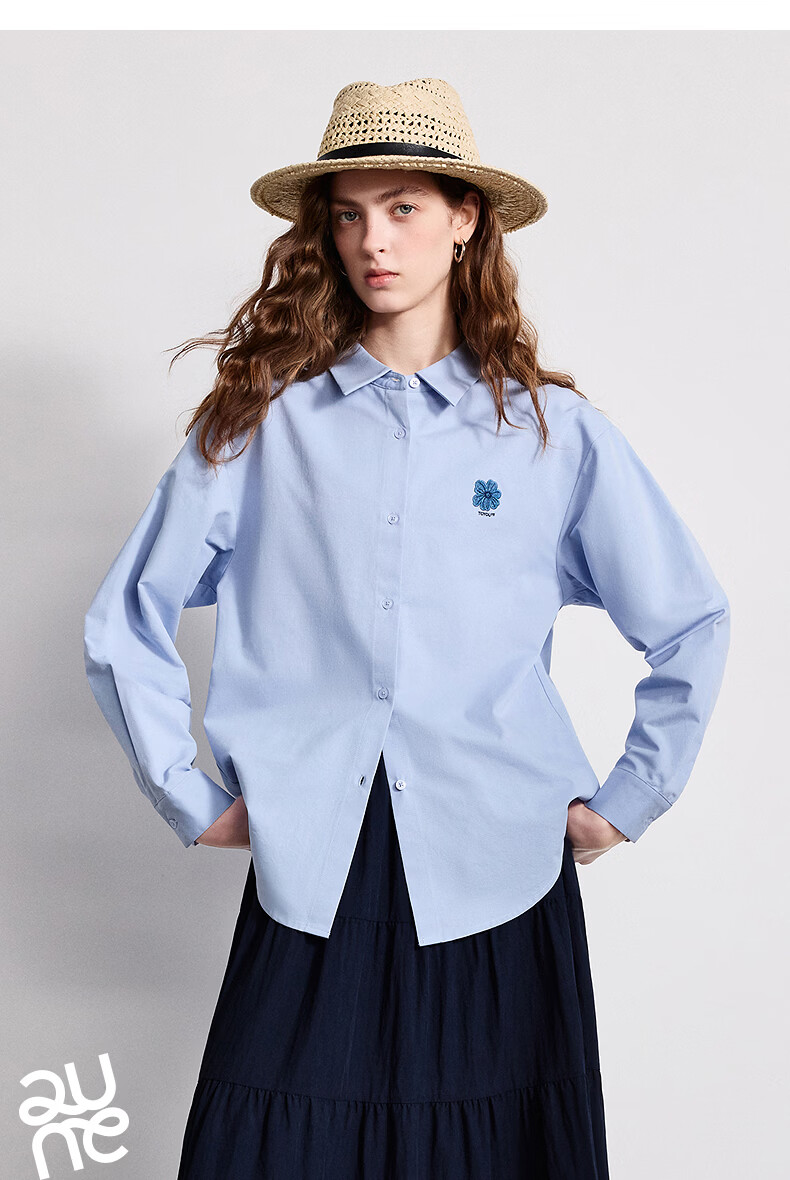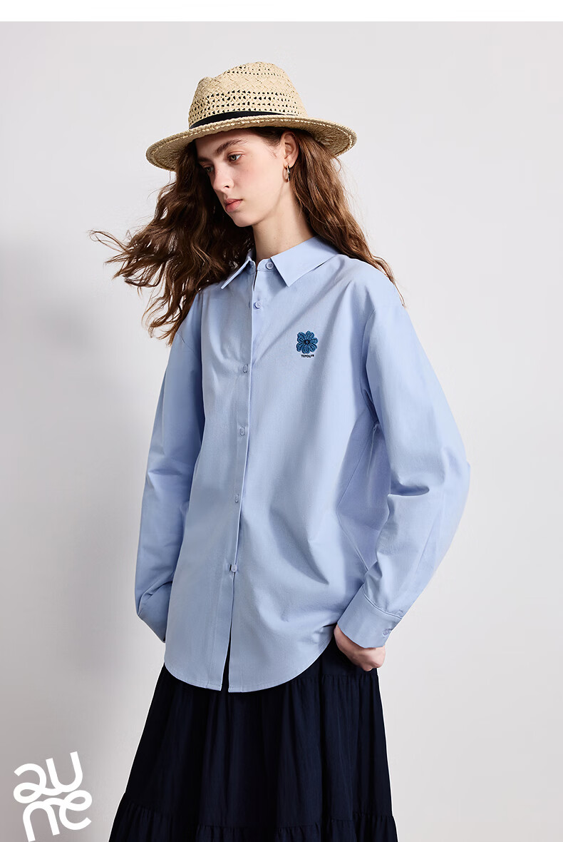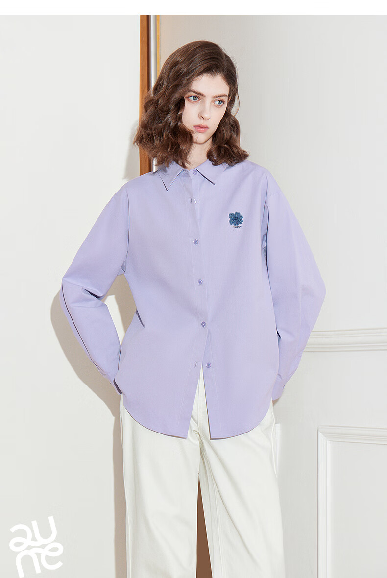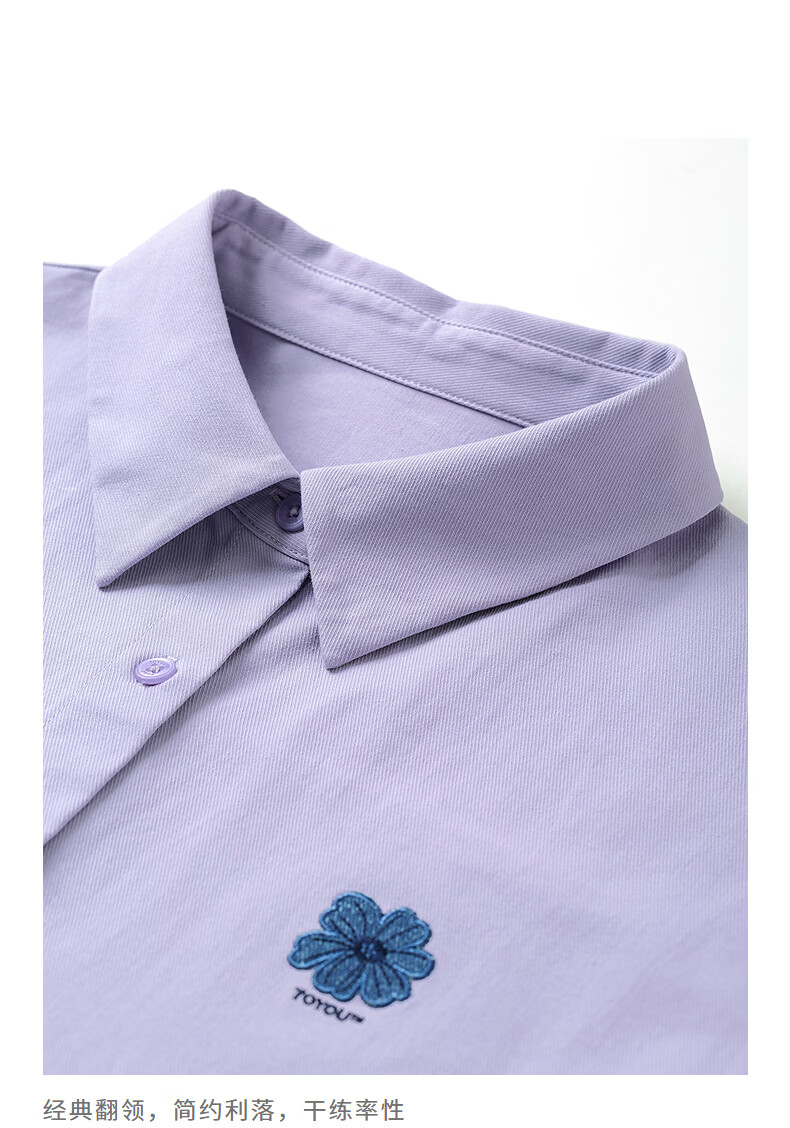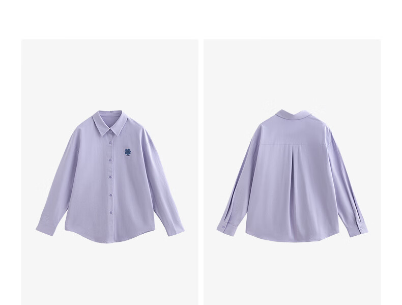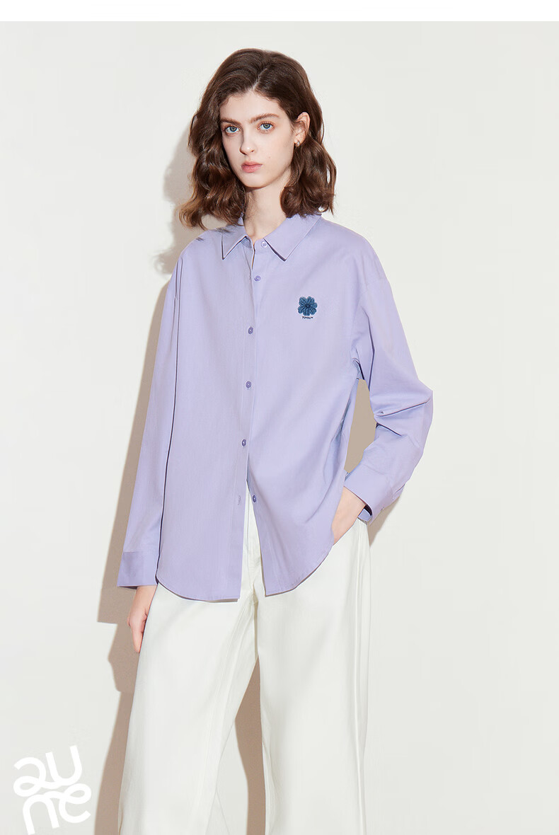 初语纯棉女士衬衫2025秋季新款绣花上衣休闲通勤百搭衬衣 浅紫色 XL