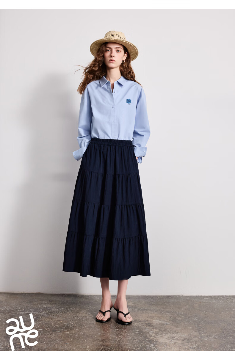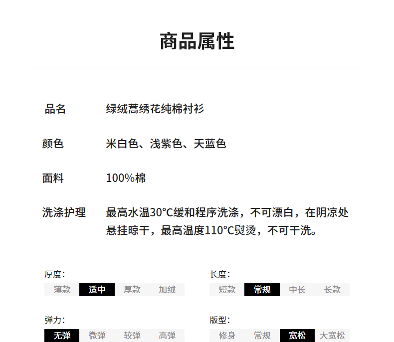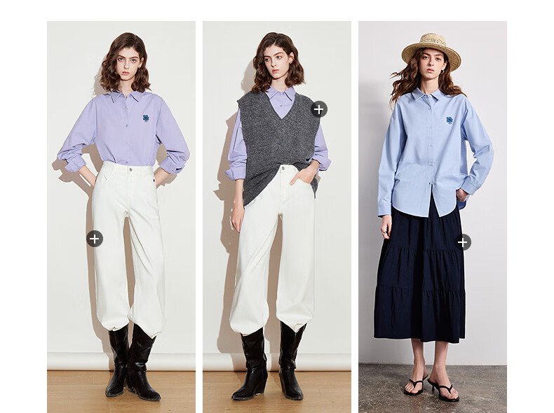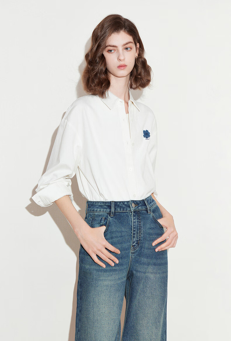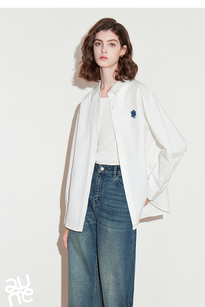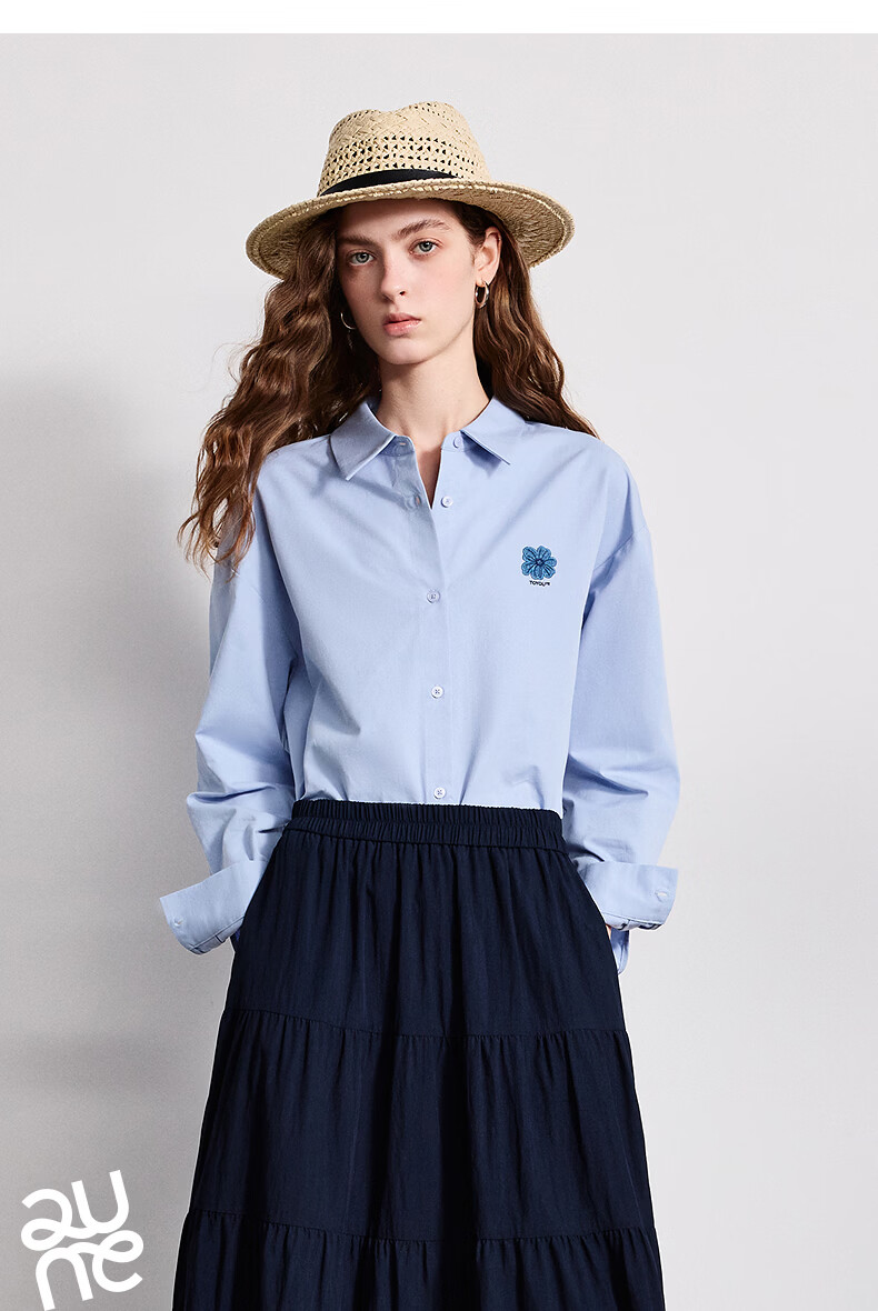 初语纯棉女士衬衫2025秋季新款绣花上衣休闲通勤百搭衬衣 浅紫色 XL