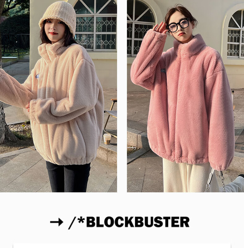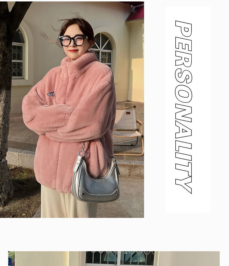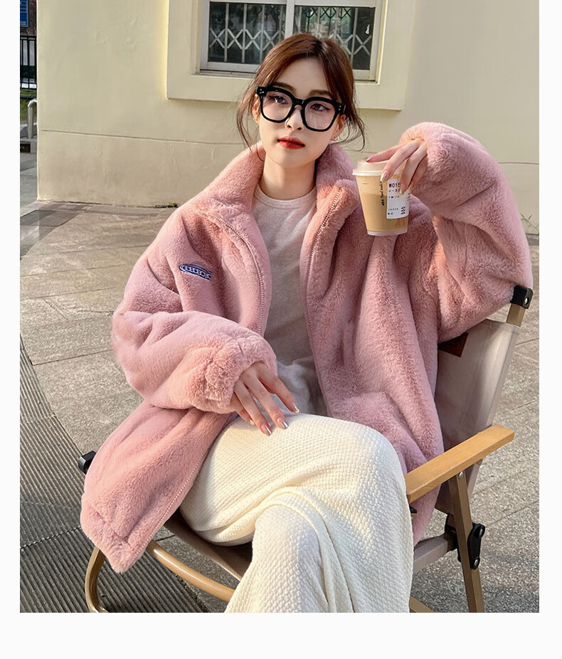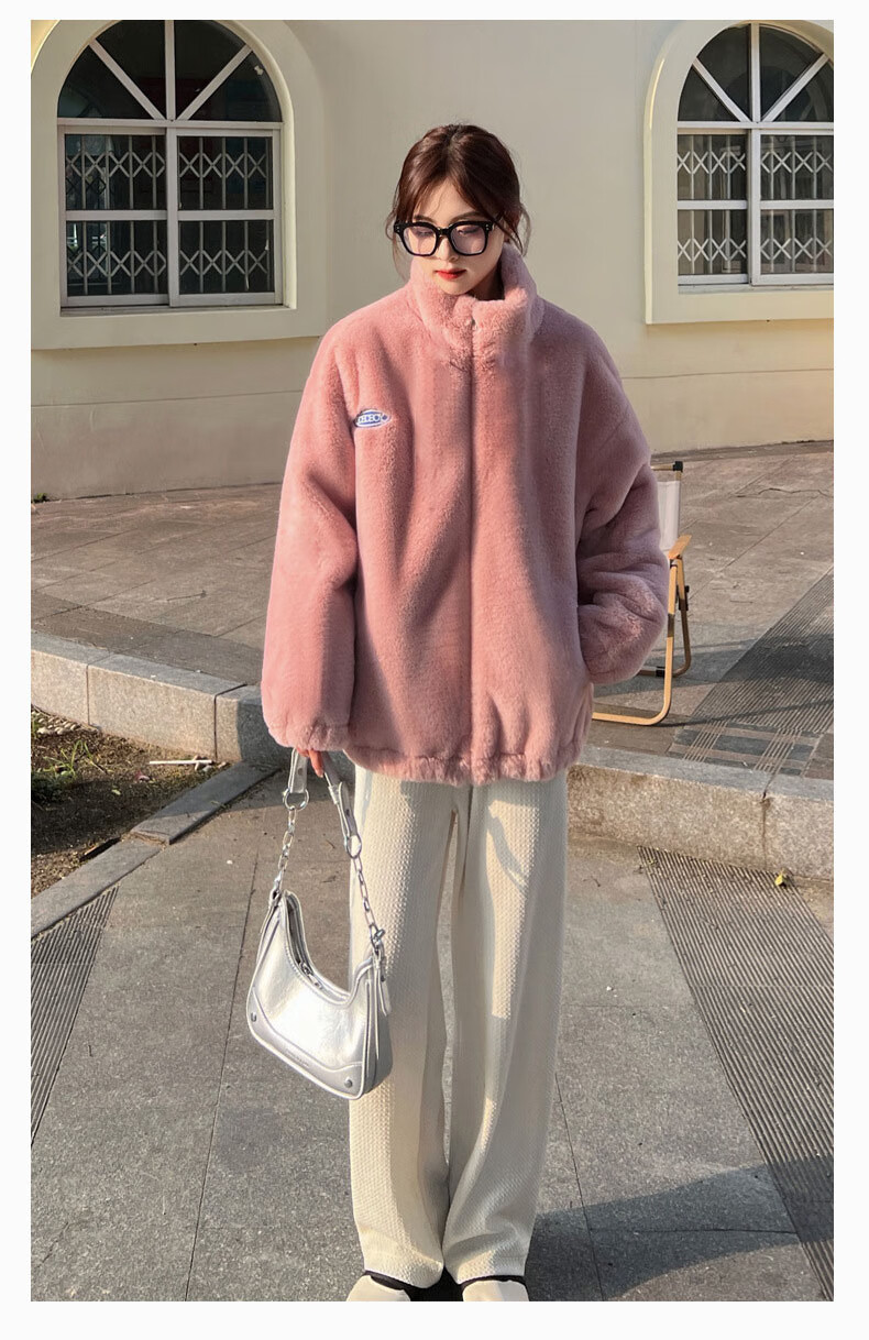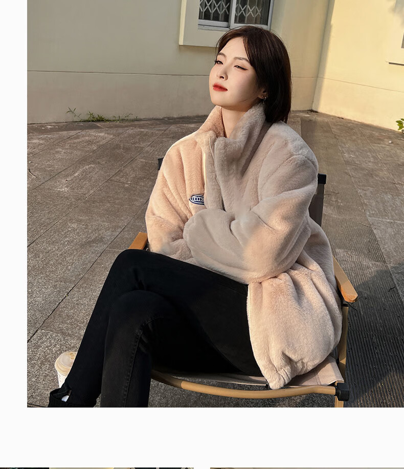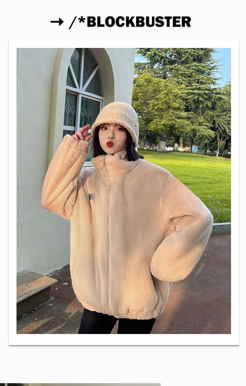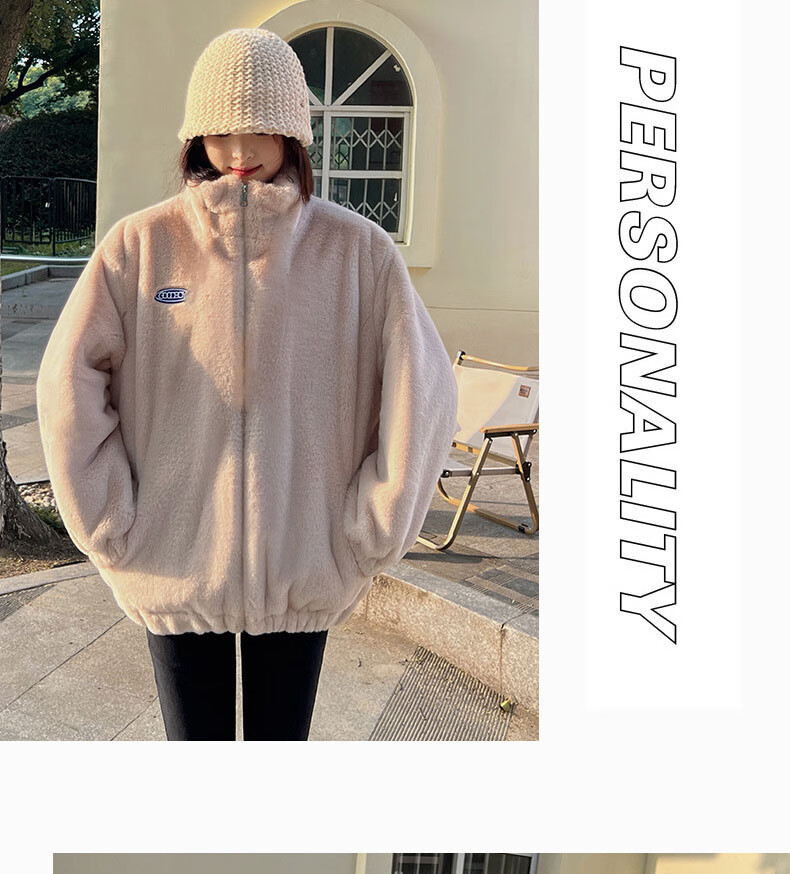 夹棉羊羔绒外套女秋冬宽松立领毛绒卫衣学生百搭加厚保暖上衣J068 杏色 S (90-110斤)