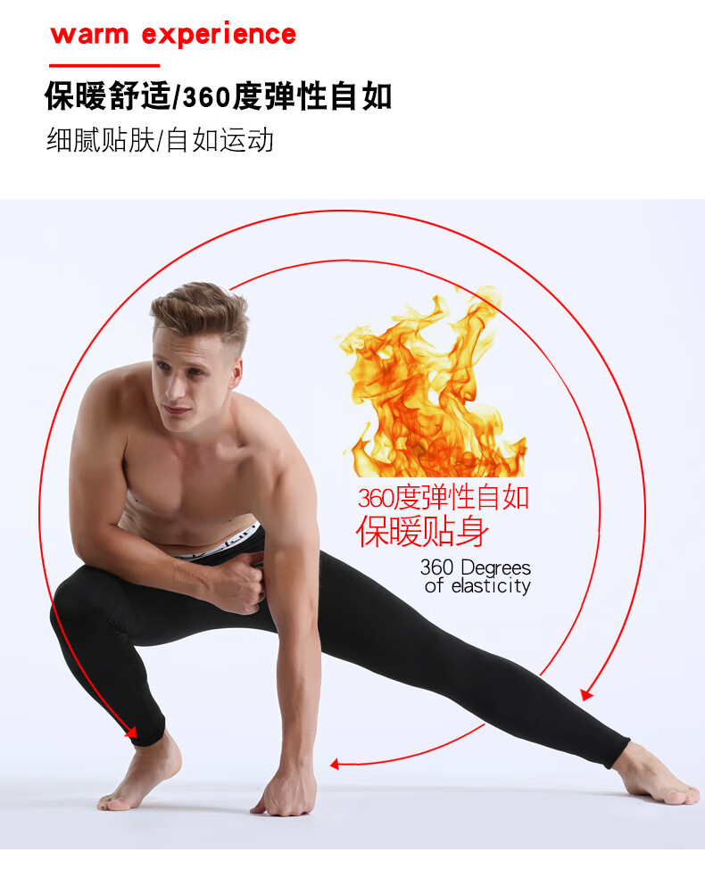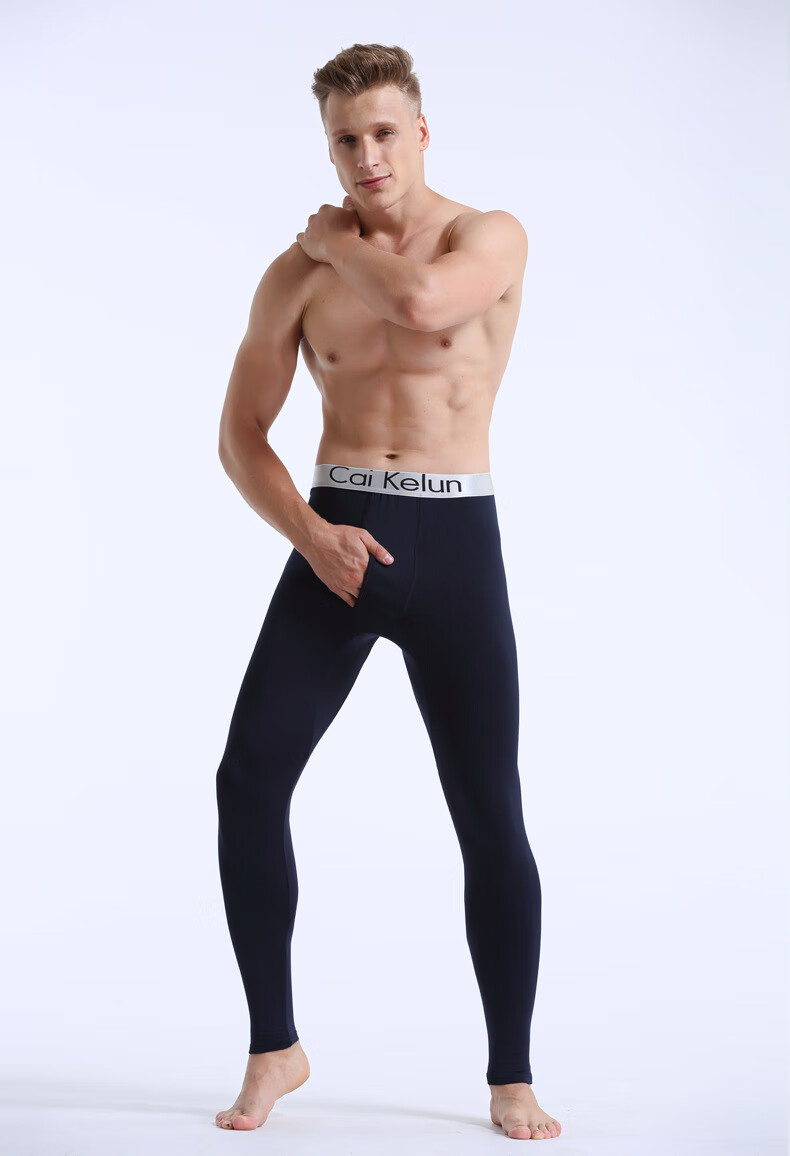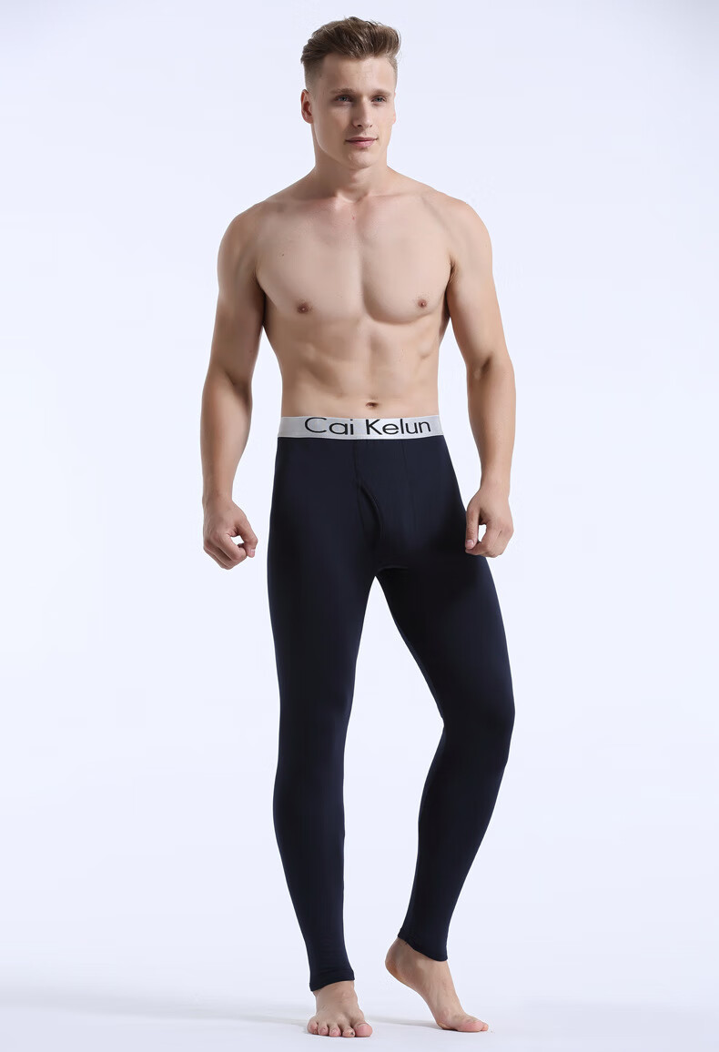利比吉男士保暖裤修身内穿秋裤舒适单裤男加绒潮流学生打底内裤加绒线裤 不加绒黑色 M80-100斤