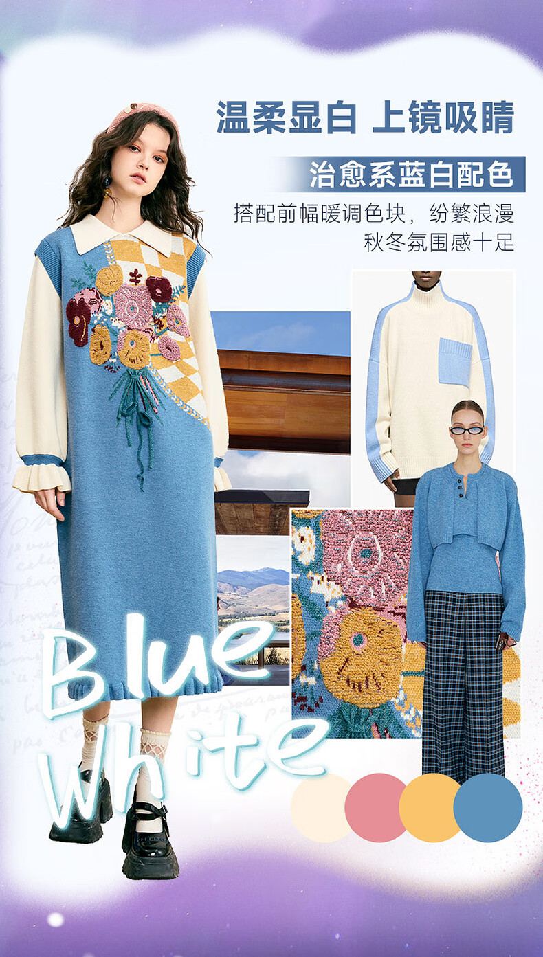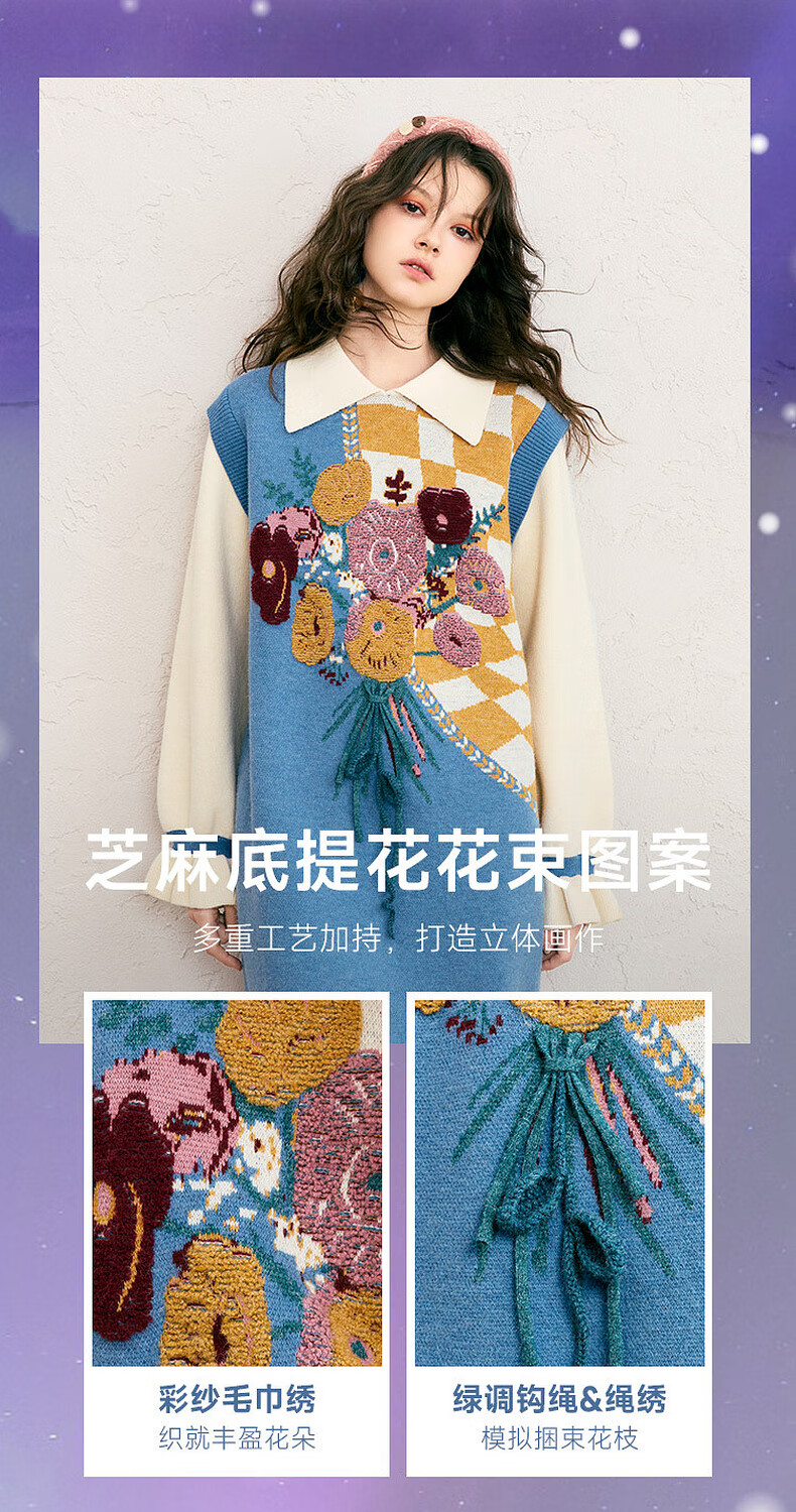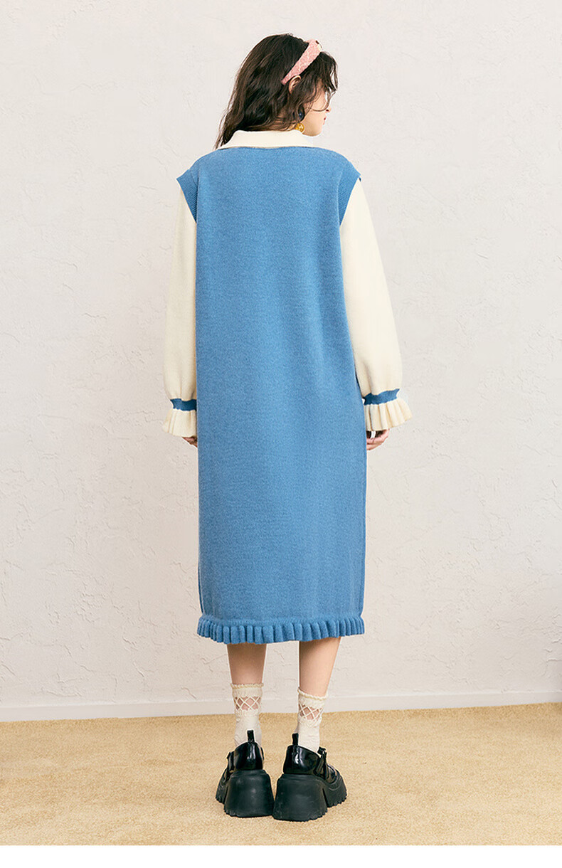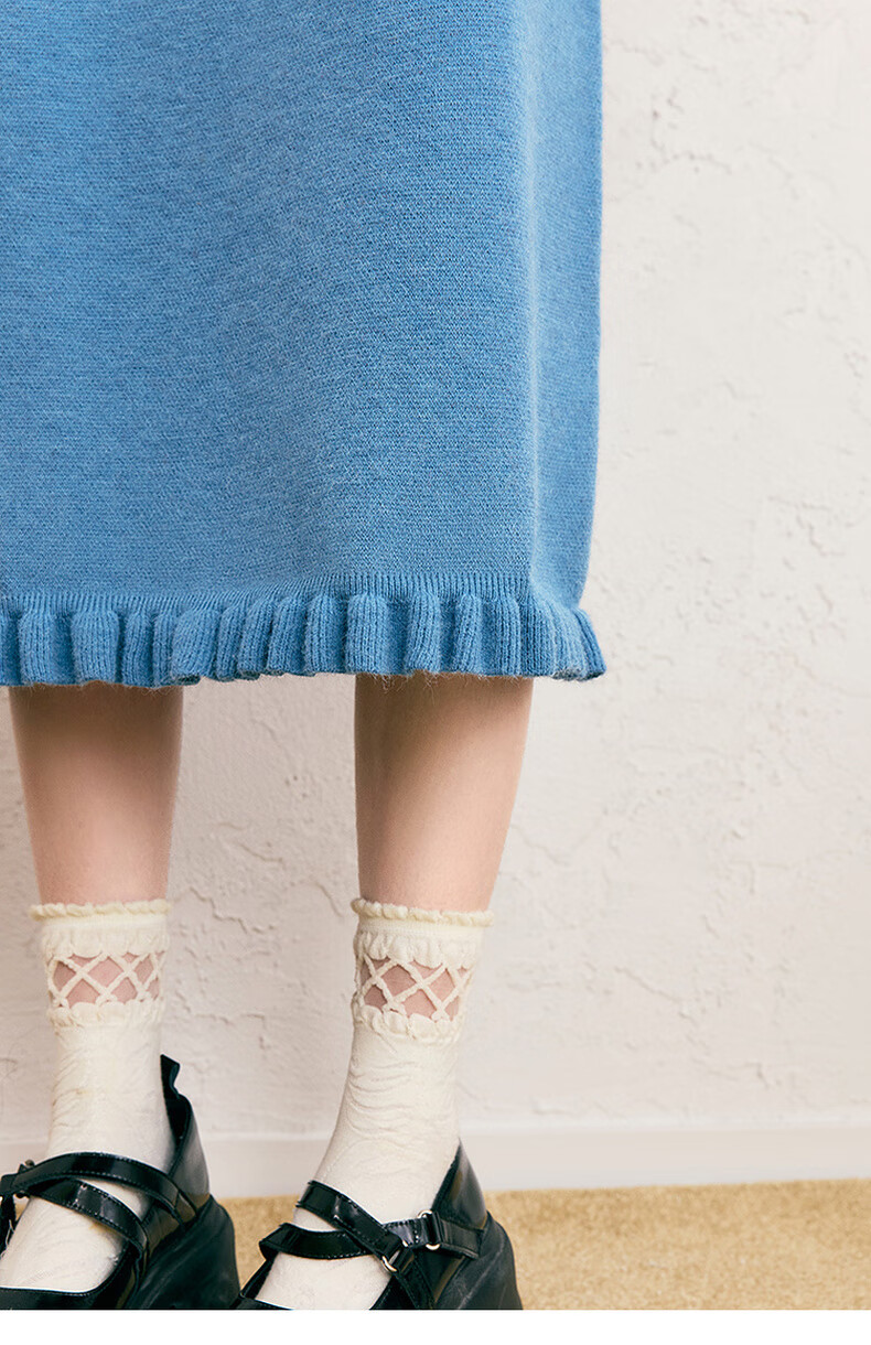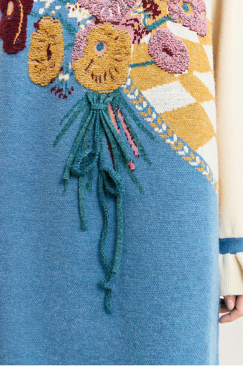 两三事冬季针织连衣裙女2025秋冬季新款毛衣裙长款毛衣裙子花神迷宫 蓝色 L