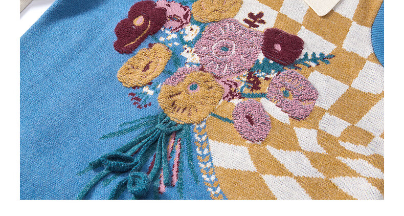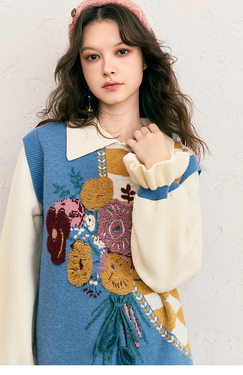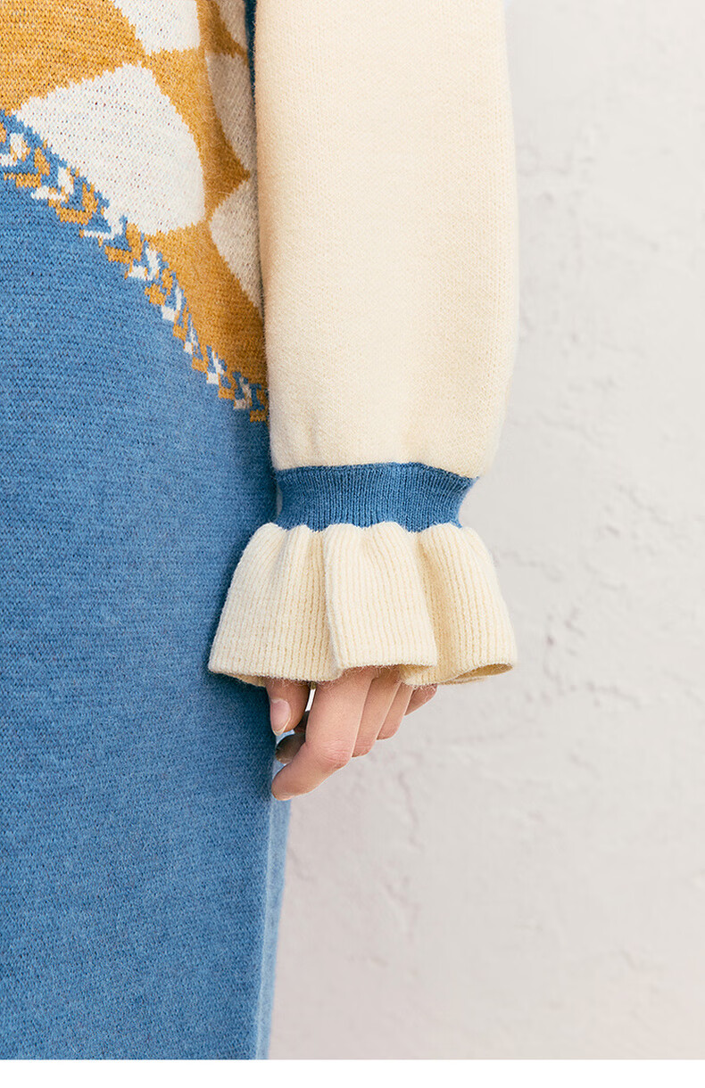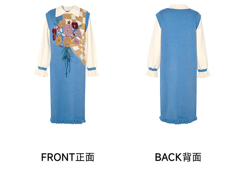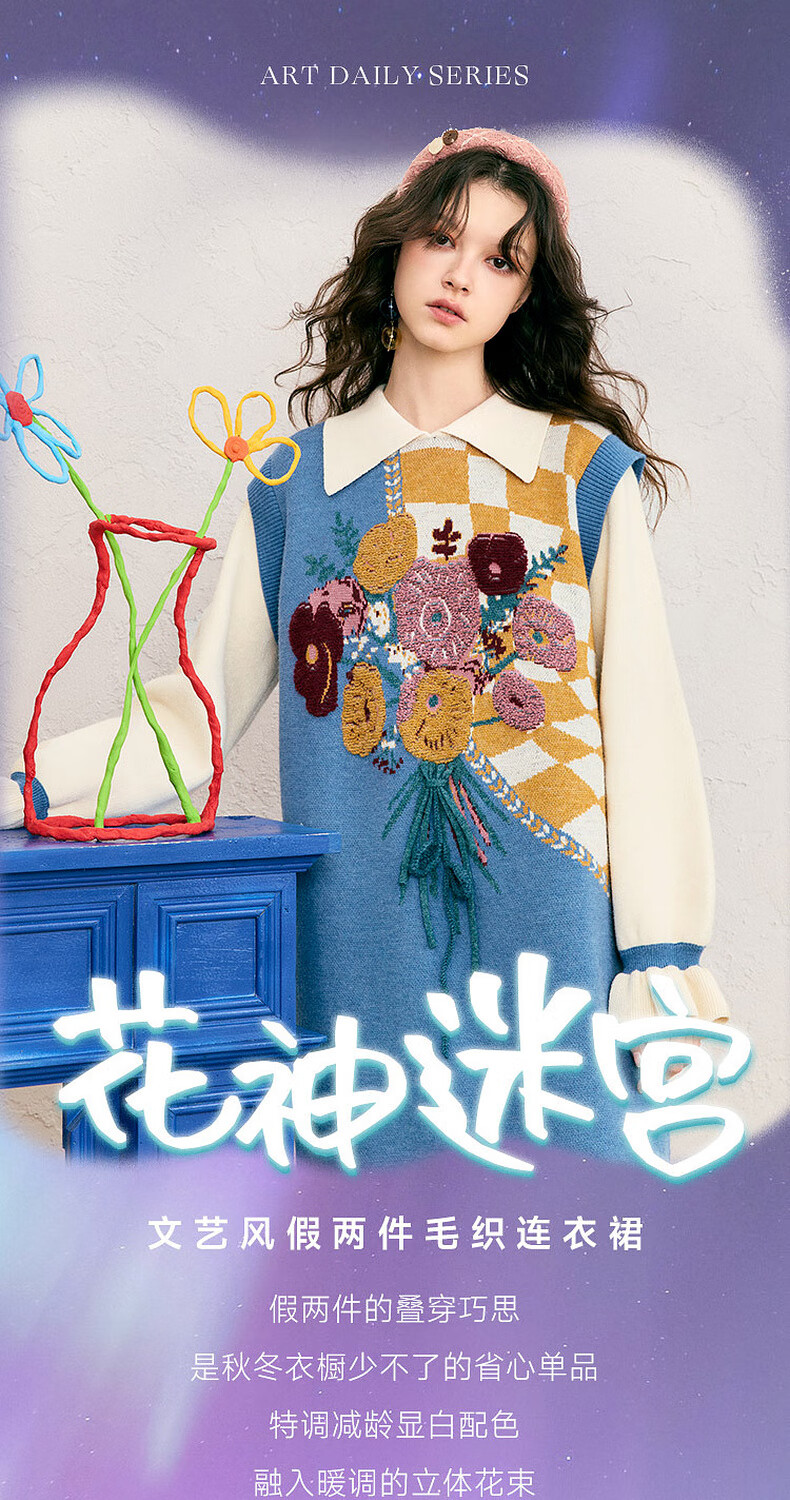 两三事冬季针织连衣裙女2025秋冬季新款毛衣裙长款毛衣裙子花神迷宫 蓝色 L