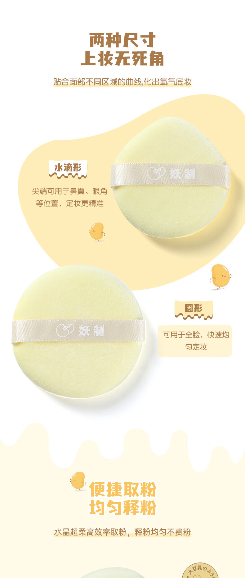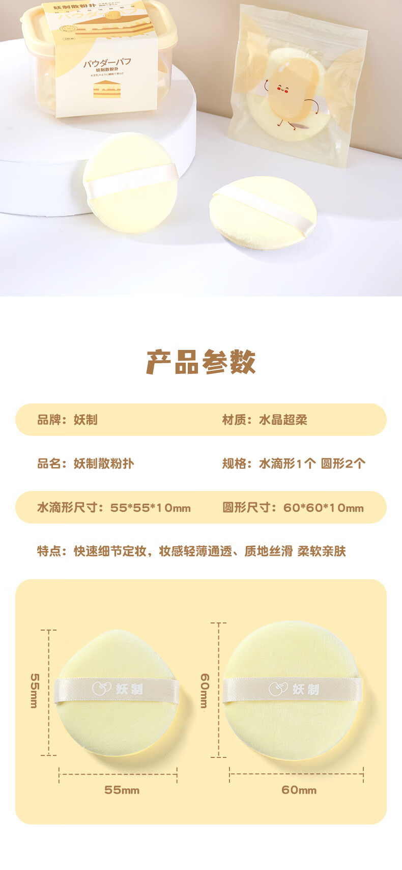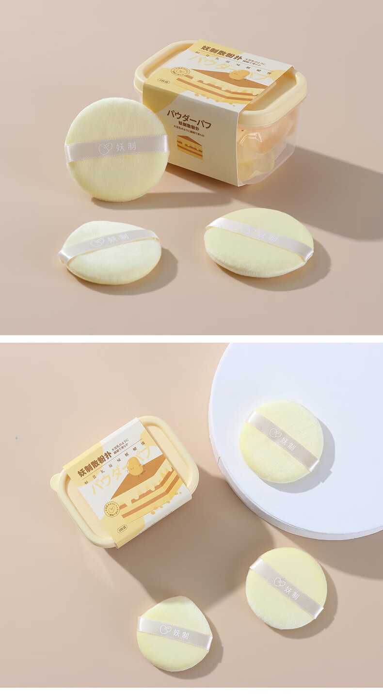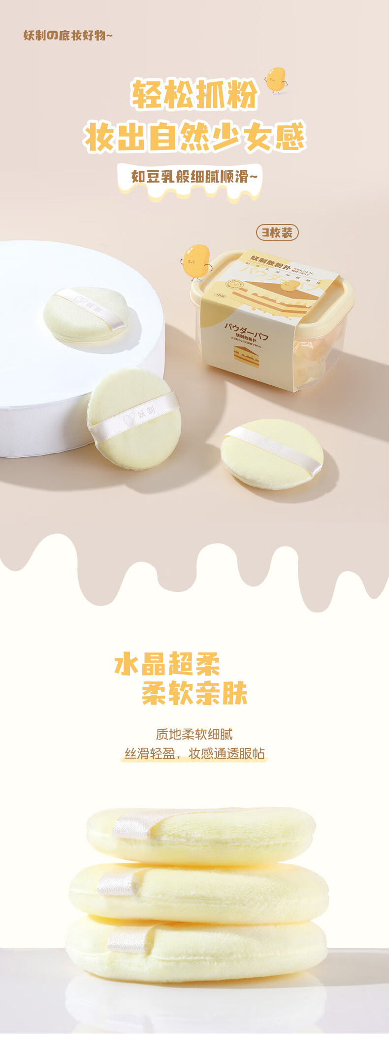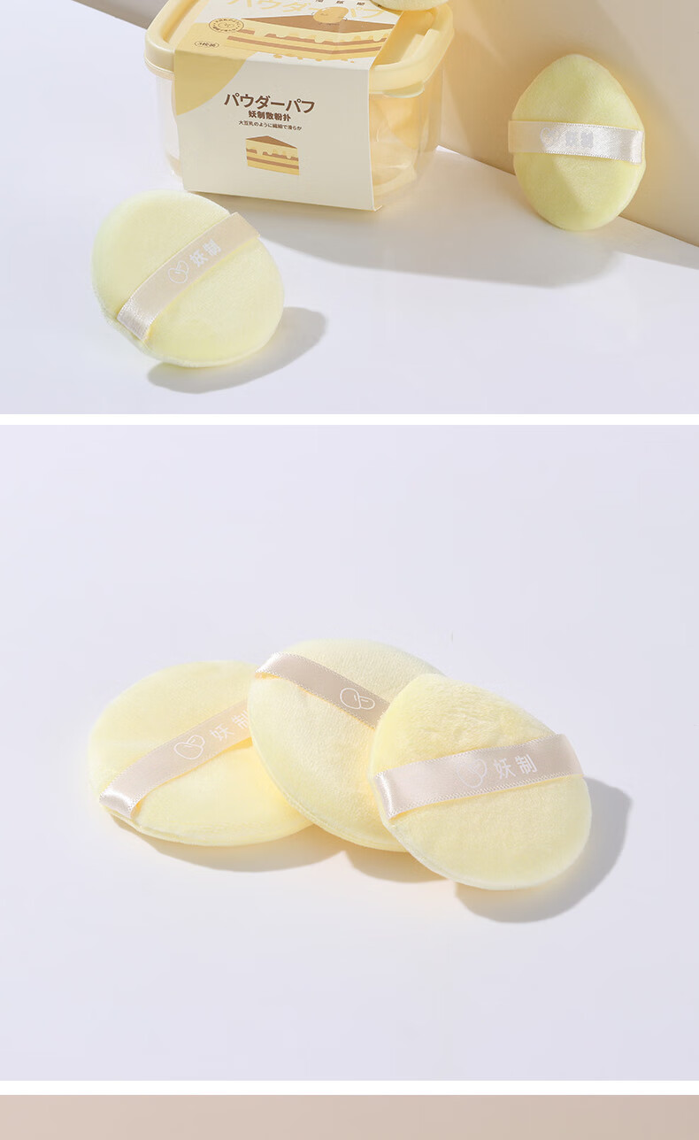 妖制散粉扑蜜粉定妆粉扑双面植绒干用化妆专用短绒超柔粉饼粉扑 装妖制散粉扑+奶黄色 3枚