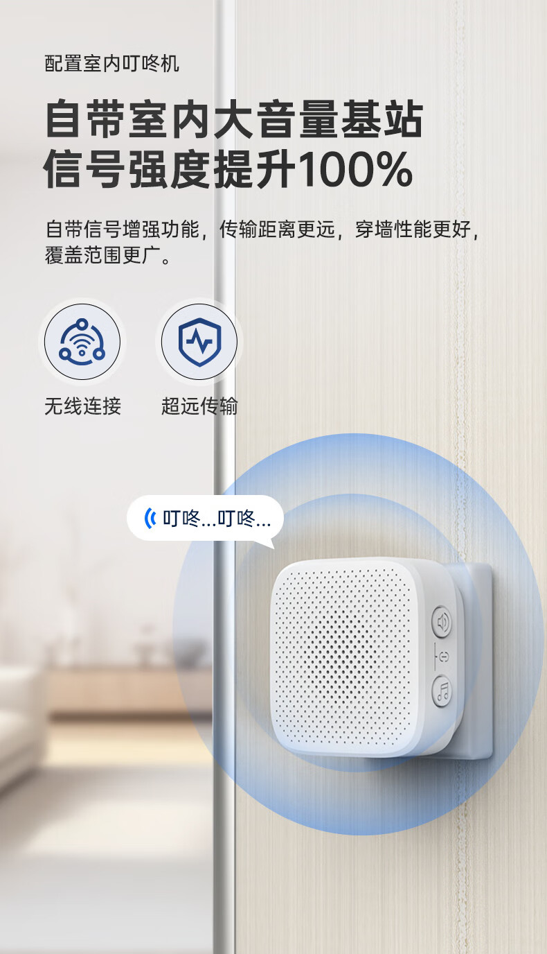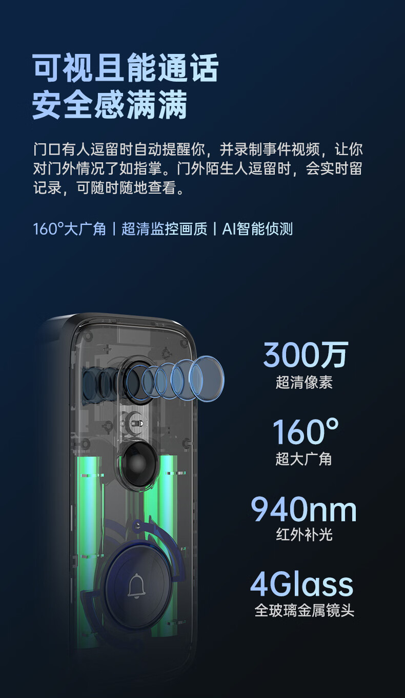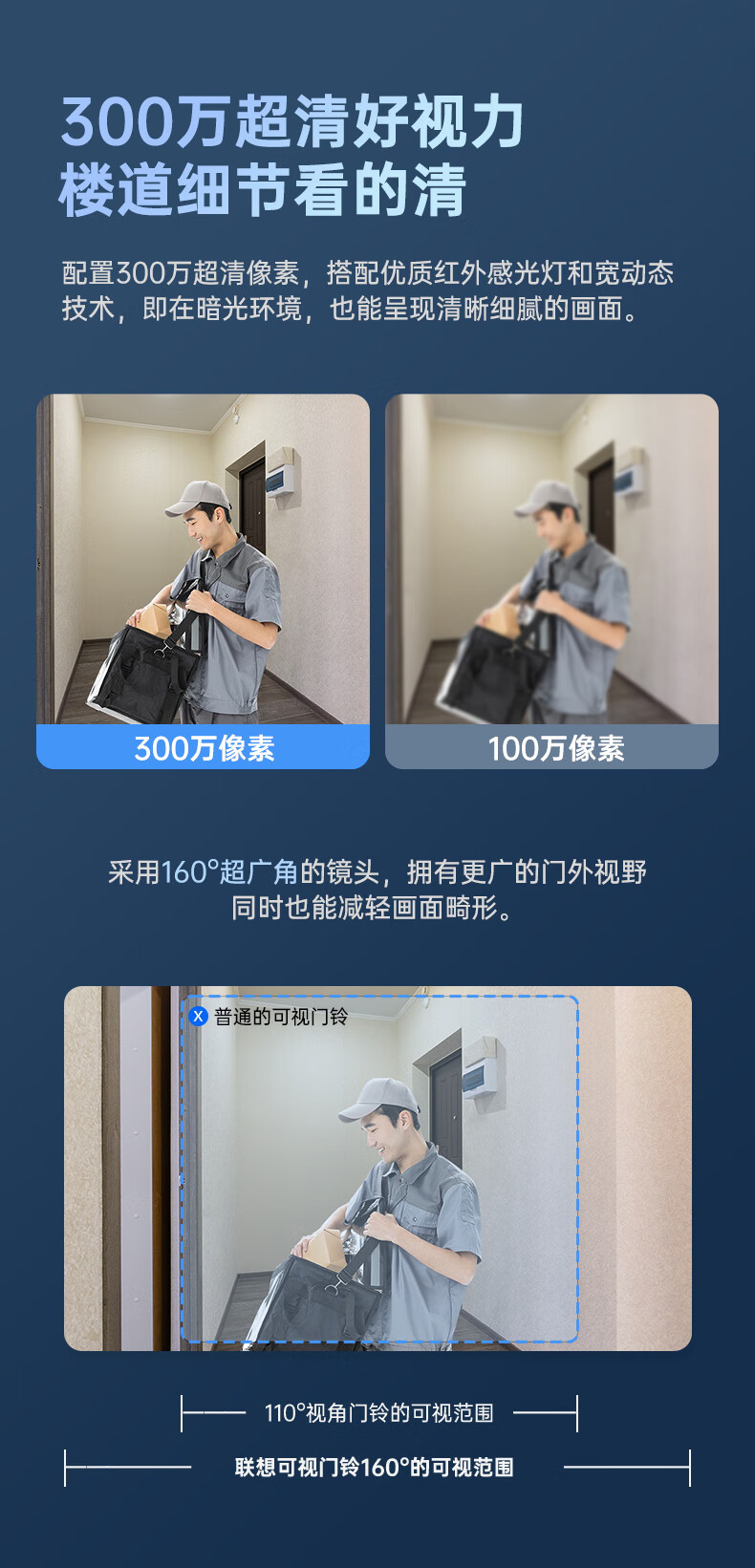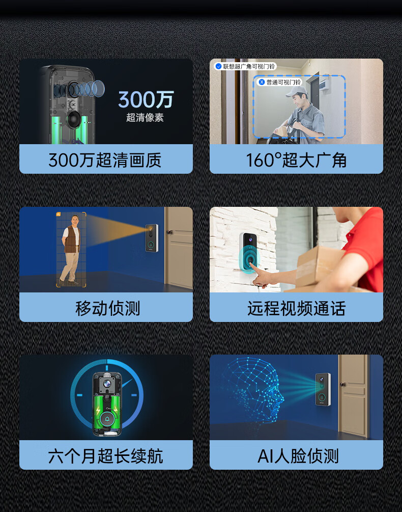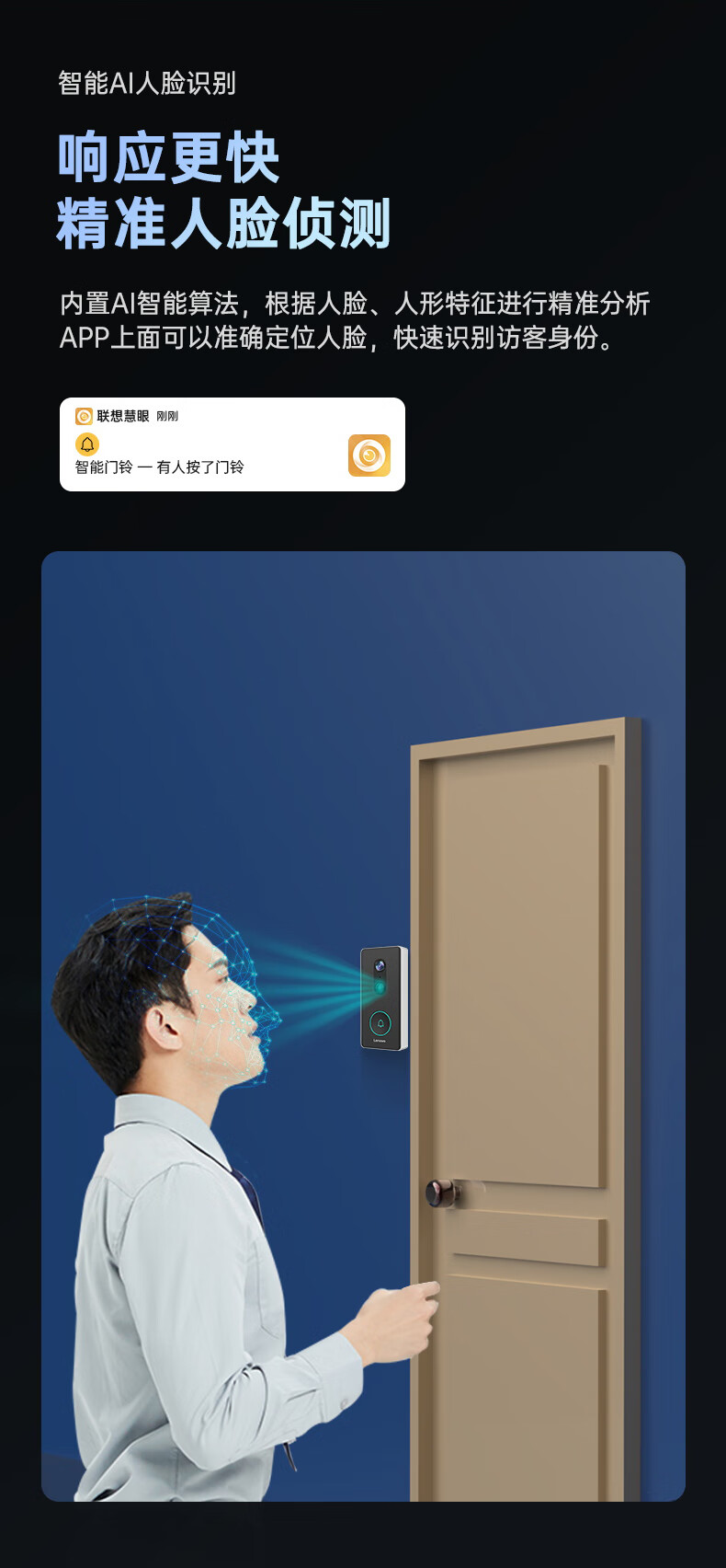 联想(Lenovo)300万可视门铃监控入户门口摄像头家用电子防盗智能猫眼手机无线远程可视通话超长续航
